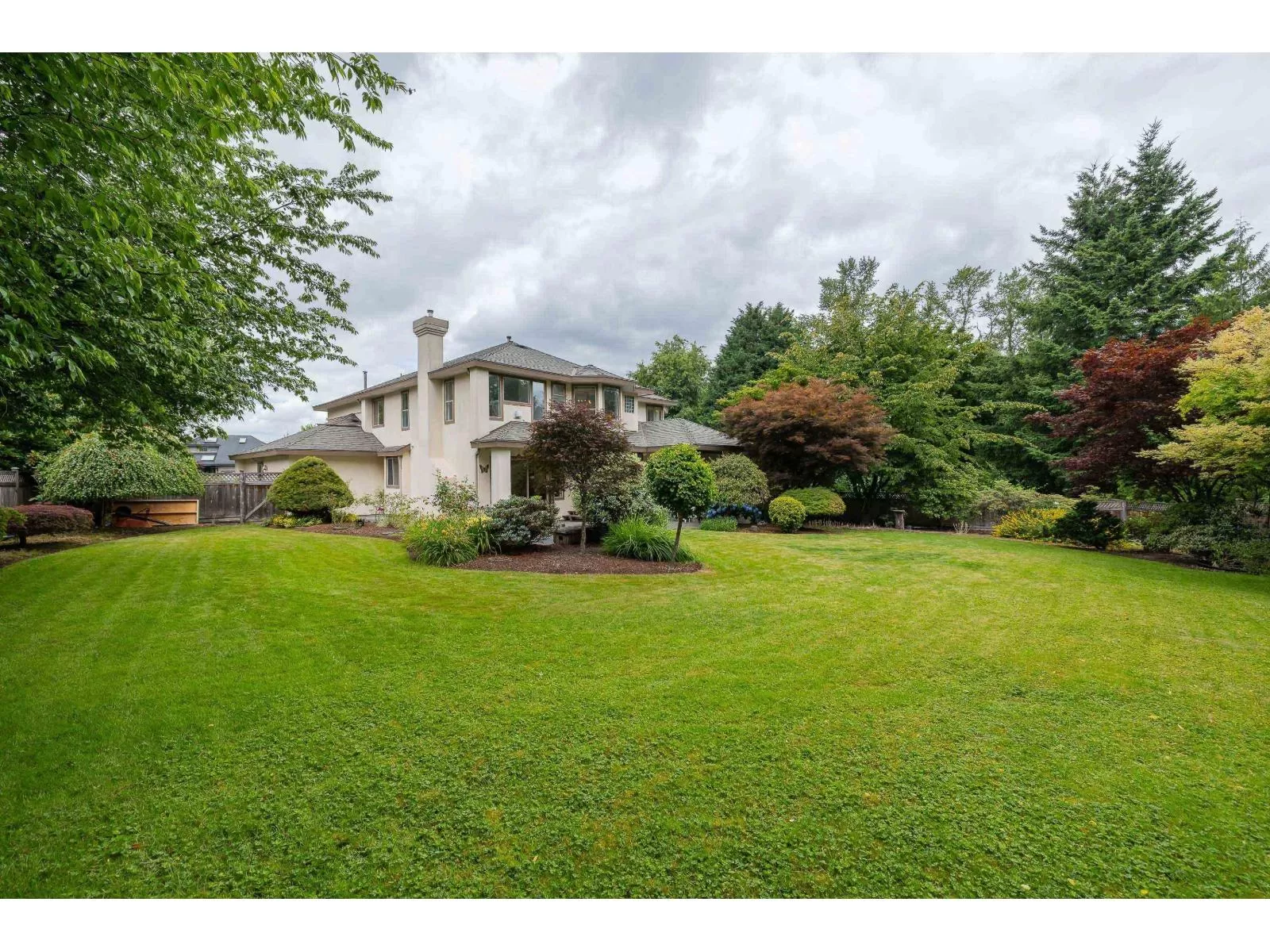 LOCATION! ONE OWNER HOME- TUCKED AWAY FROM STREET & BACKS ONTO PARK FOR SENSE OF EXTENDED PROPERTY, PEACE & PRIVACY IN NEIGHBORHOOD OF EXECUTIVE HOMES... 5 BED, 3 BATH HOME ON ALMOST 1/2 ACRE- Features inc. main floor Office/Bedrm & Huge Flex rm w/wetbar & patio acc. Flex Rm up w/BI cabinets (Bedroom, Gym, crafts room?), 2 skylights, 3 gas fireplaces, Spacious Foyer, winding staircase & Living Rm w/ 14' ceiling, Formal Dining Rm, Full size laundry w/sink. Primary bedroom up w/space for King bed, walk- in closet, fireplace & view over gardens & trees. Full ensuite w/sep. shower/soaker tub. Fully fenced backyard offers sweeping lawn & a variety of custom, mature plants & trees. TRIPLE GARAGE PLUS EXTRA SPACE IN DRIVEWAY FOR MULTIPLE CARS + street parking. Flexible move-in dates. (id:27476)