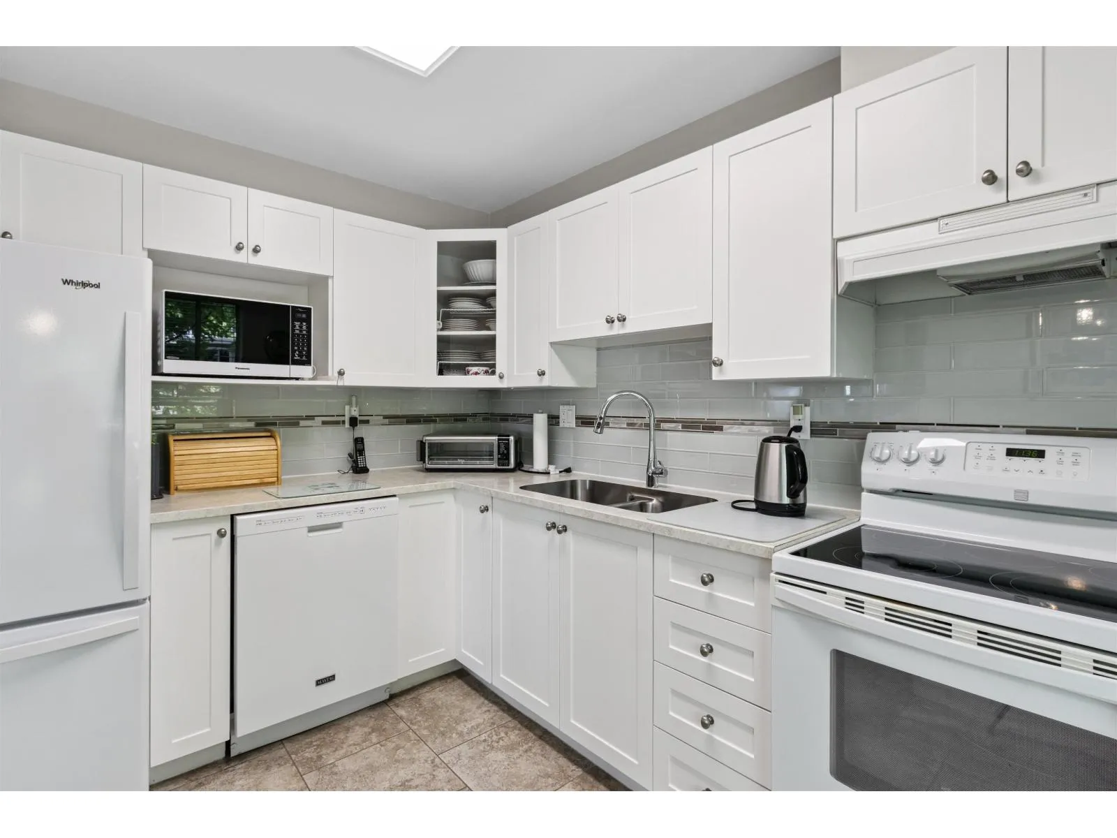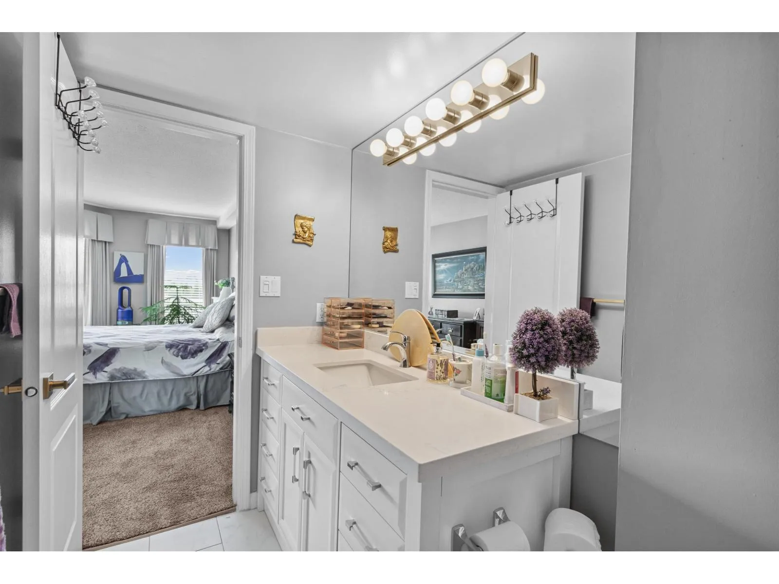 Original owner first time on market! This beautifully maintained and updated corner suite in desirable Riverpointe has been lovingly cared for by single occupant with no children or pets and it shows! Excellent layout with a formal entry and large laundry/utility room up front, opening to main living area w/ plenty of windows and sunrise views off East facing balcony. Very nicely updated kitchen and bathrooms, plus newer flooring, fixtures, fireplace surround & more. Generous primary bedroom suite and there is a Murphy bed in 2nd bedroom, adding great versatility there. Excellent building with roof, balconies & window replacement within approx last 15 years, & recent elevator upgrade. Large storage locker nearby on same floor. Ultra convenient location near transit & transportation routes. (id:27476)