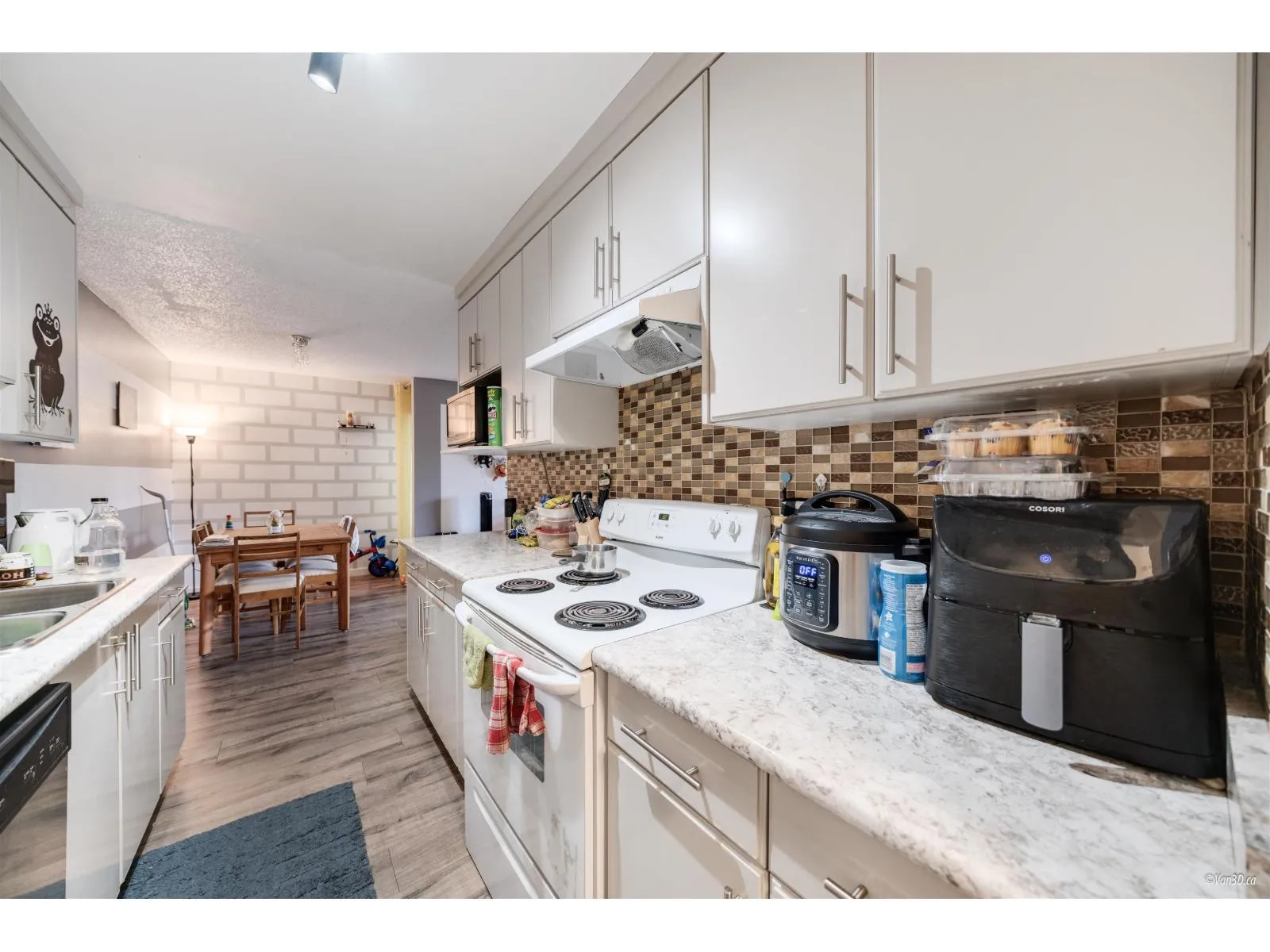 Welcome to Forest Manor. 2 Bed,1Bath,927sq.ft living area CONER and End UNIT. 2021 renovated beautiful home. Spacious living room offers a lot of natural light that streams inside through the generously sized glass door. Large covered 121 sqft balcony facing the greenspace Secure underground parking plus plenty of visitor parking. Hot water and heating included in strata fee .Close to schools and walking distance to Guilford Mall, T&T, Walmart, Landmark Cinemas, Green Timber Park, Restaurant and much more! (id:27476)