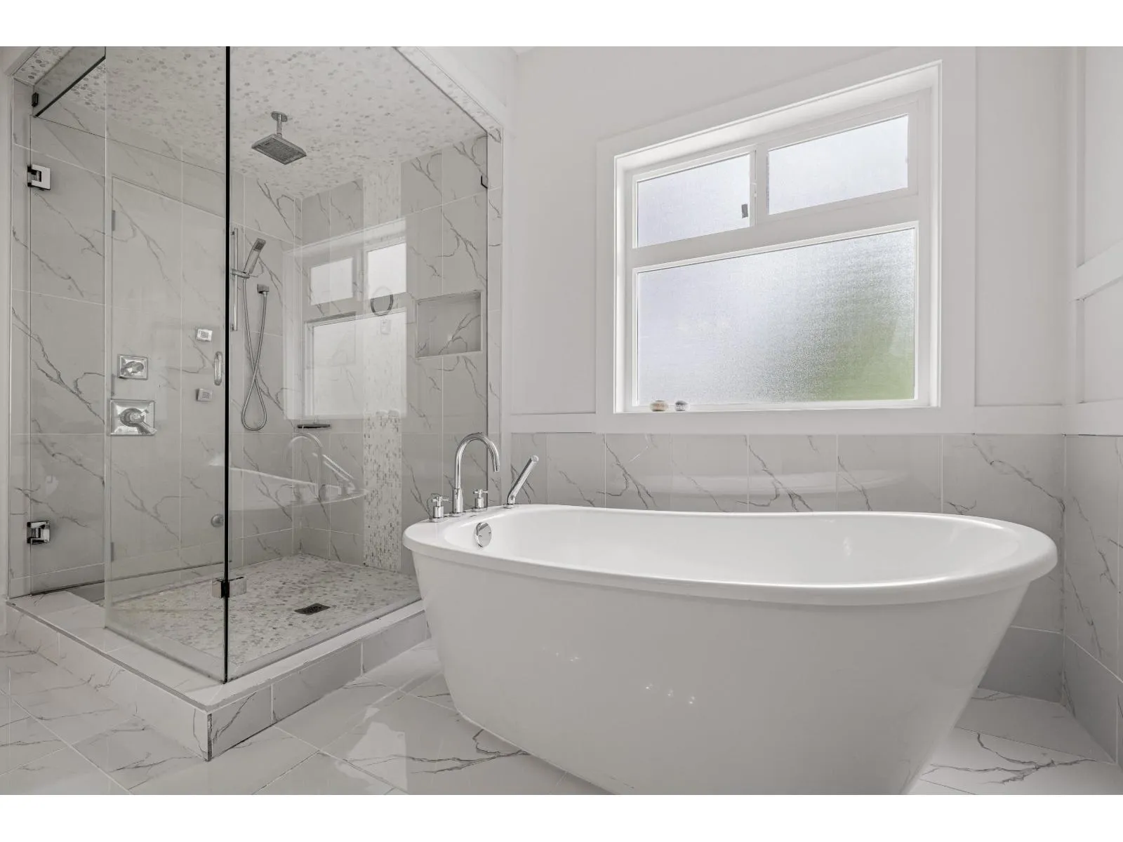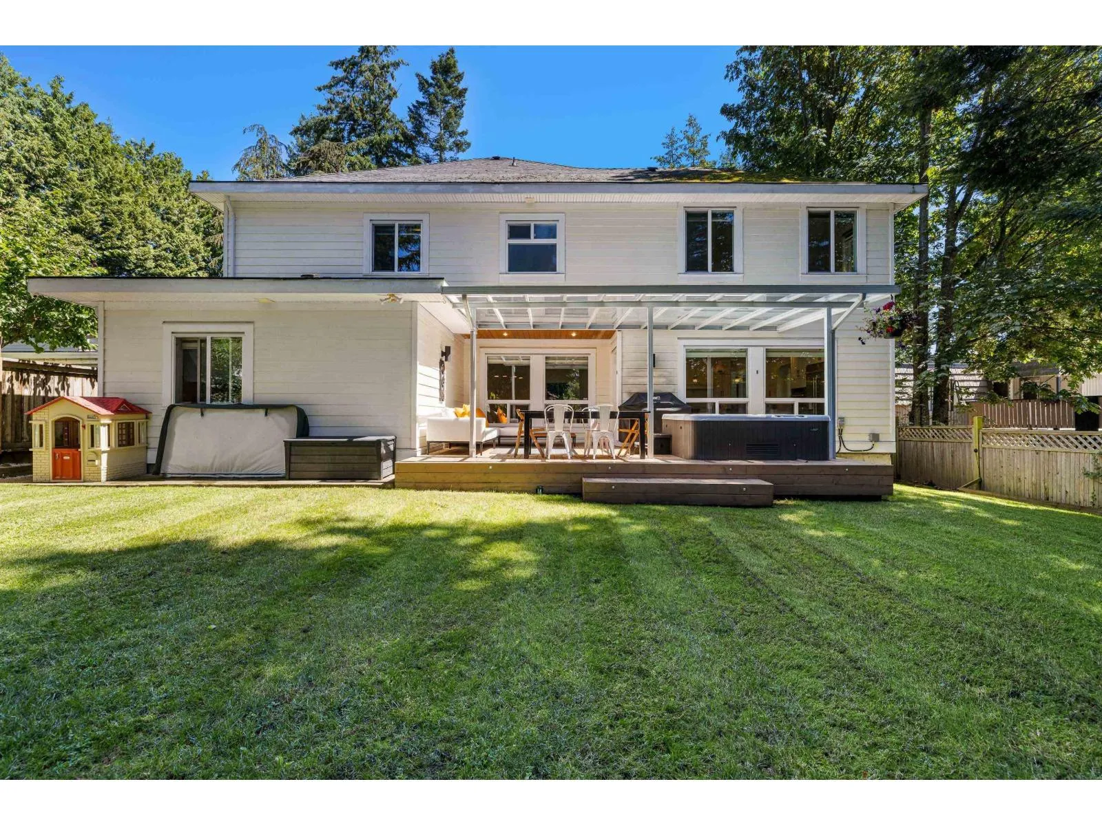 Welcome to your dream home in Ocean Park! This custom-built residence blends timeless elegance with exceptional craftsmanship on a generous 8,907 sq.ft. lot. Thoughtfully designed with an open-concept layout and flooded with natural light, this 5-bedroom + den, 6-bathroom home offers comfort, style, and space for the whole family. Stay cool with AC, entertain in the stunning chef's kitchen featuring an oversized island, premium JennAir appliances, and a secondary wok kitchen. The family room seamlessly flows to a fully fenced, west-facing backyard, complete with a covered patio and built-in hot tub for year-round enjoyment. Upstairs, each of the four spacious bedrooms has its own ensuite, including a luxurious primary suite with peekaboo ocean view. Downstairs, unwind in the media room with a full wet bar. 1-bedroom suite with separate entry. Located just steps to Ray Shepherd Elementary and a short walk to the beach, this is the lifestyle your family has been waiting for. (id:27476)