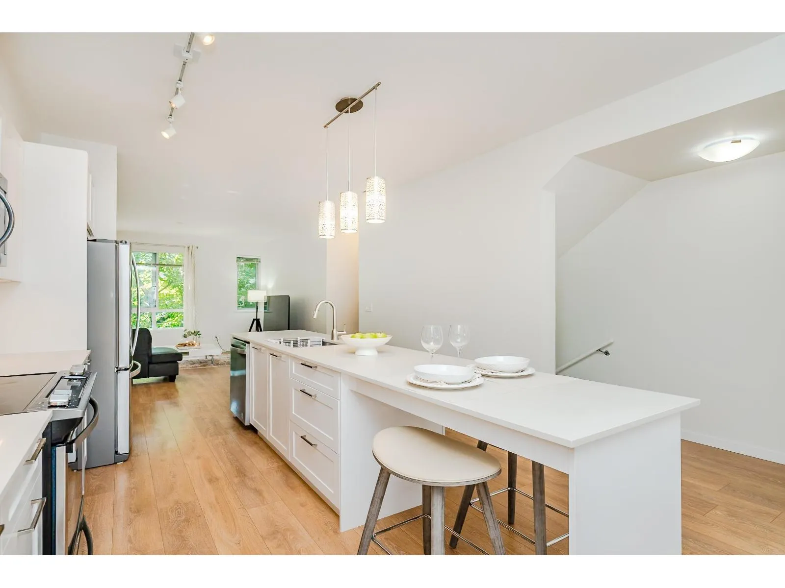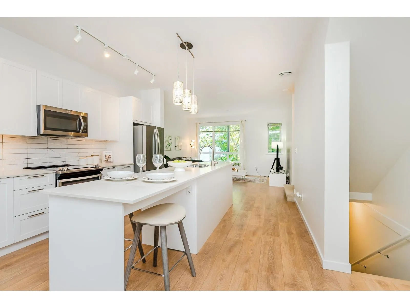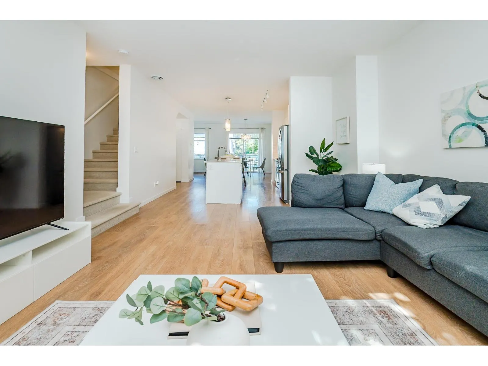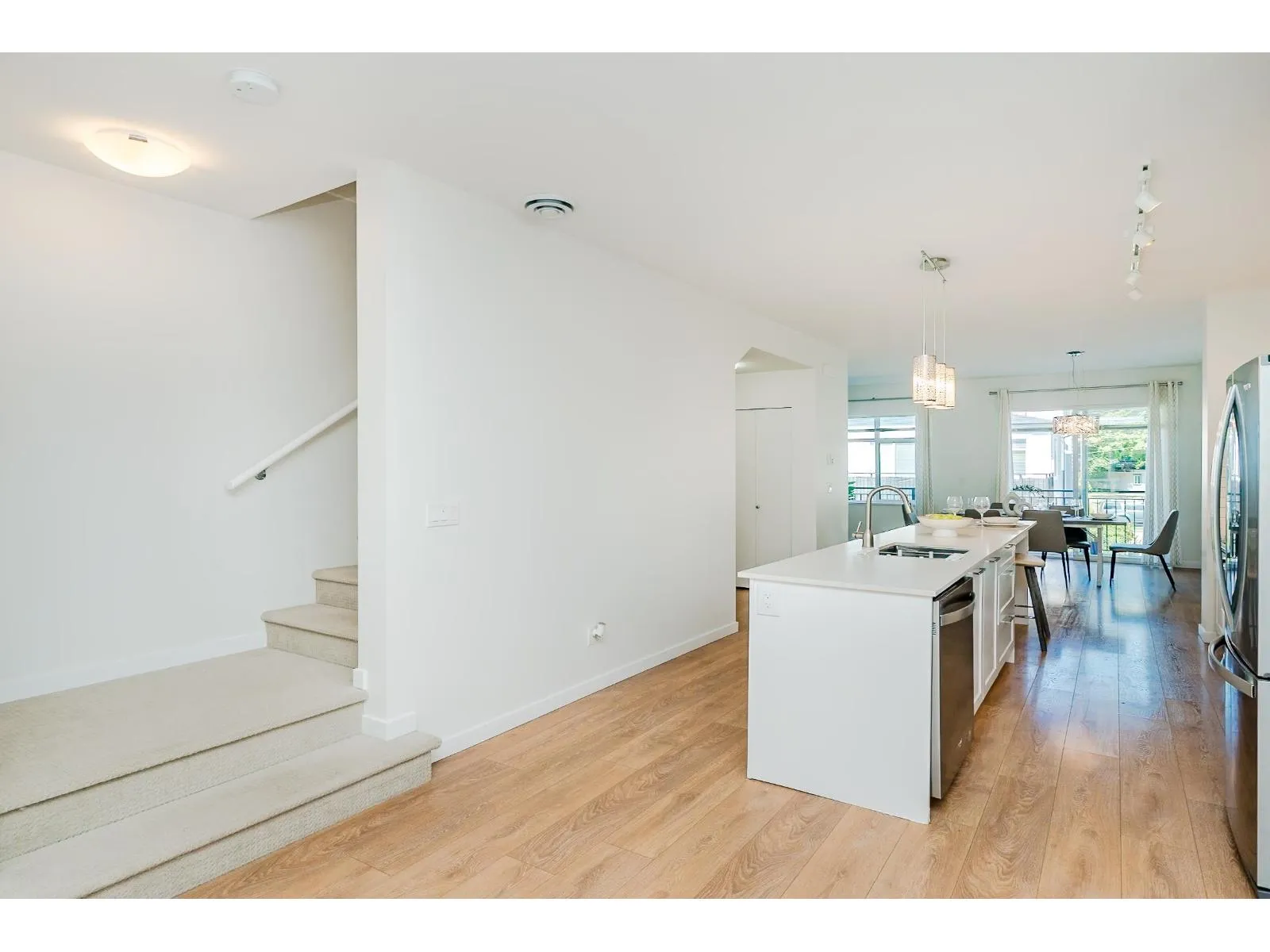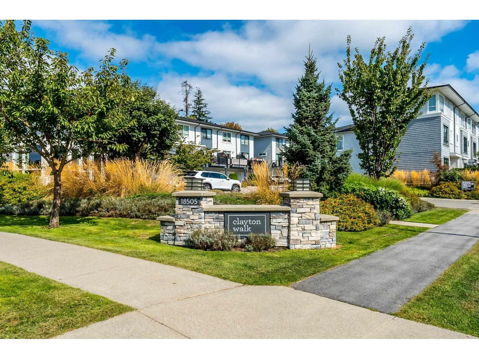 "CLAYTON WALK" by "ANTHEM" Prime location in Cloverdale, steps from shopping center, schools, recreation, services, easy access to Fraser Hwy and Hwy 15 & future SKYTRAIN station. This END/CORNER unit has EVERYTHING you are looking for: Functional layout, specious floor plan w/ NO waste of space; ground level bdrm w/ full bath best served as guest room or office; main living area incl: great-room design, high-ceiling, huge windows, gourmet kitchen connects living room, open den & dining room w/ access to huge balcony, best for family gathering + summer BBQ; Primary bdrm w/ huge walk-in closet + 2 bdrms upstairs w/ easy access to laundry. Freshly paint through out; double garage; best for small/growing families. Don't miss your next dream home! Open House: Sunday (10/05) 2-4pm (id:27476)
