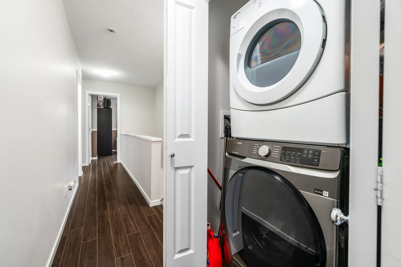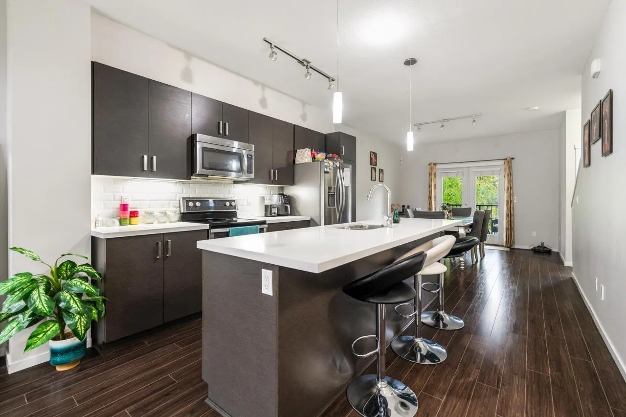 Welcome to Fusion by Lakewood - offering bright, open-concept living with a thoughtfully designed floor plan. This 3 bedroom, 3 bath + Den at bottom level as built by original builder, home features a gourmet kitchen with quartz countertops and upgraded stainless steel appliances. Enjoy a free-standing fireplace for flexible furniture placement, in-suite washer & dryer, 2" blinds, 9' ceilings, and a fenced yard. The north-facing unit boasts street frontage on 62 Avenue with convenient rear parking access and street parking, including covered parking plus a carport for two vehicles. Close to all amenities, schools, parks and shopping. The 2-storey amenity building with an outdoor patio provides the perfect space for entertaining. Open house Oct 11 & 12 2-4pm. (id:27476)