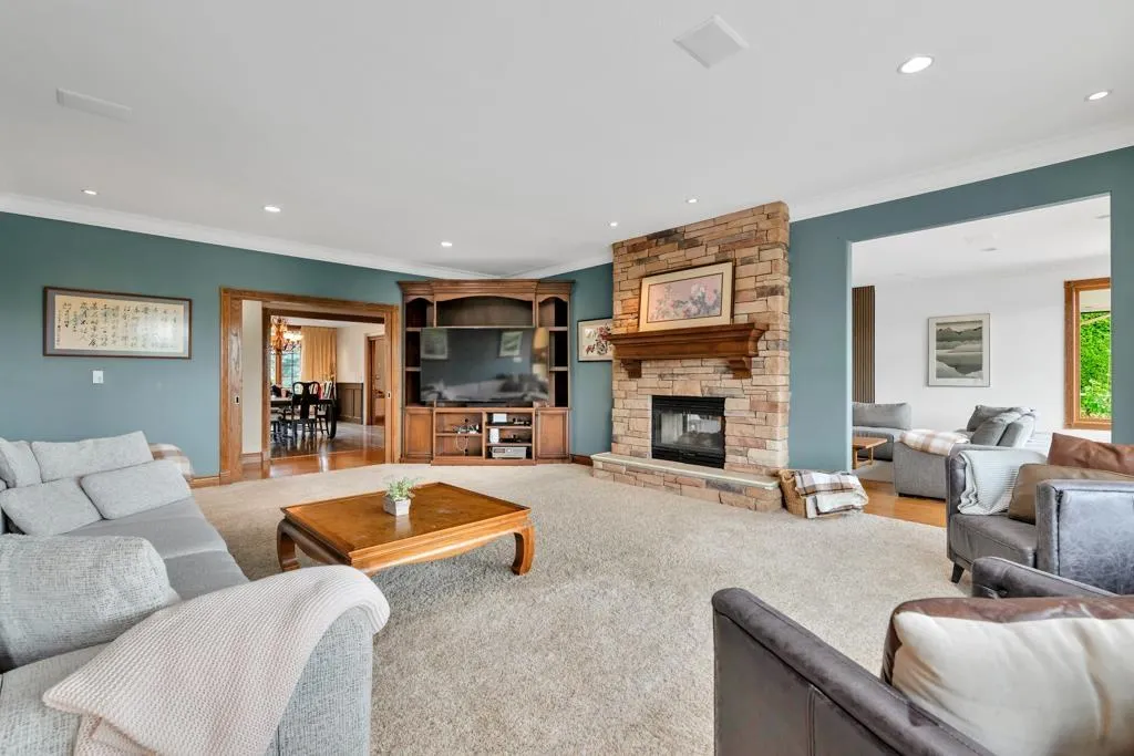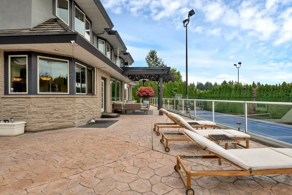 RESORT STYLE living in Panorama Ridge! This stunning estate boasts 8,000+ sq ft on a half-acre lot, perfect for entertaining or keeping the kids busy. Dramatic entry with soaring ceilings, formal dining, massive living & family rooms divided by a 2-way fireplace. Dream kitchen with large island, high-end appliances & 2 Sub-Zero fridges. Bonus main-floor bedroom w/ ensuite + hidden private office. Upstairs: 4 oversized bedrooms incl. a retreat-like primary with spa inspired ensuite clad in Calcutta gold marble tile. Basement has 1-bed legal suite, gym, luxe theatre with 133" screen & gold accents, extra bedroom & steam shower. Outside: 20x40 pool, regulation size tennis court, sauna, hot tub & outdoor kitchen/bar. Triple car garage for all your toys. Live the resort lifestyle every day! (id:27476)