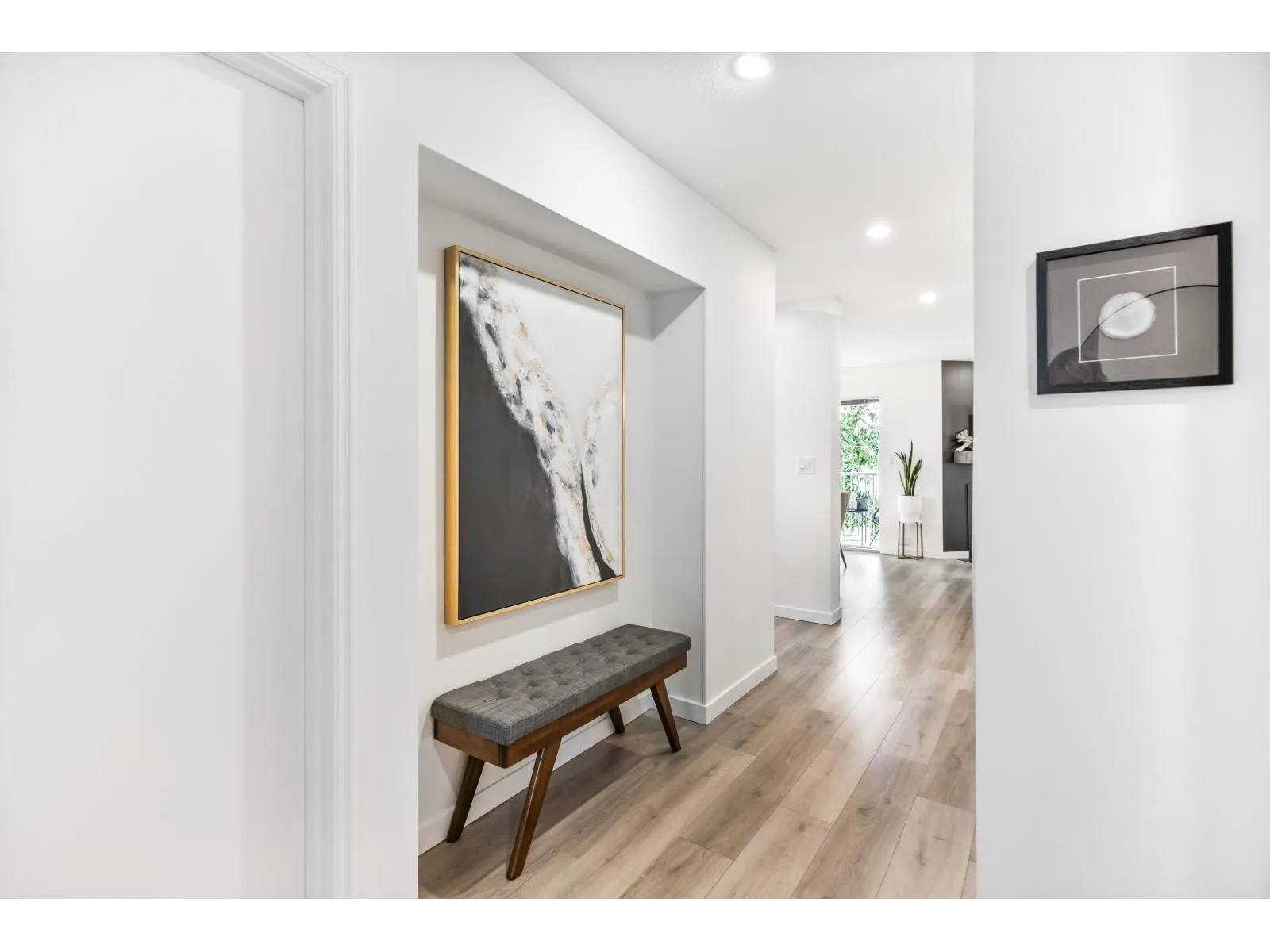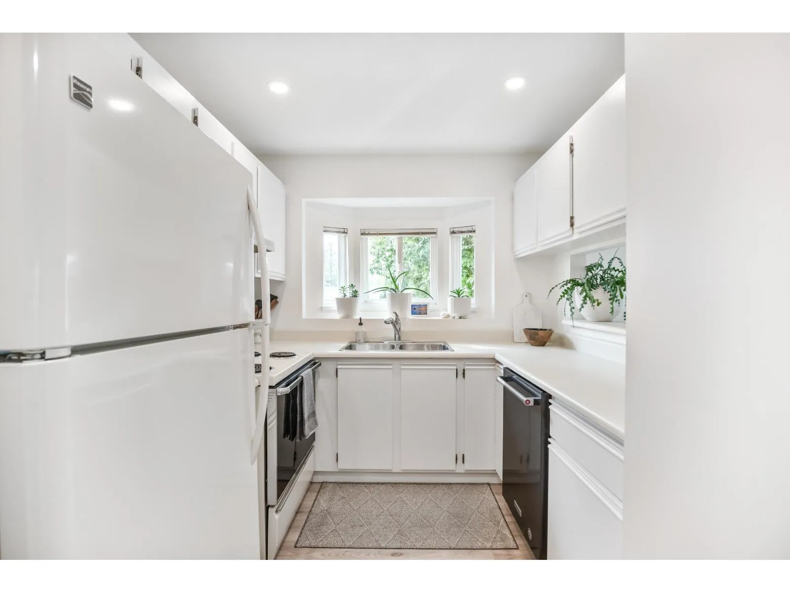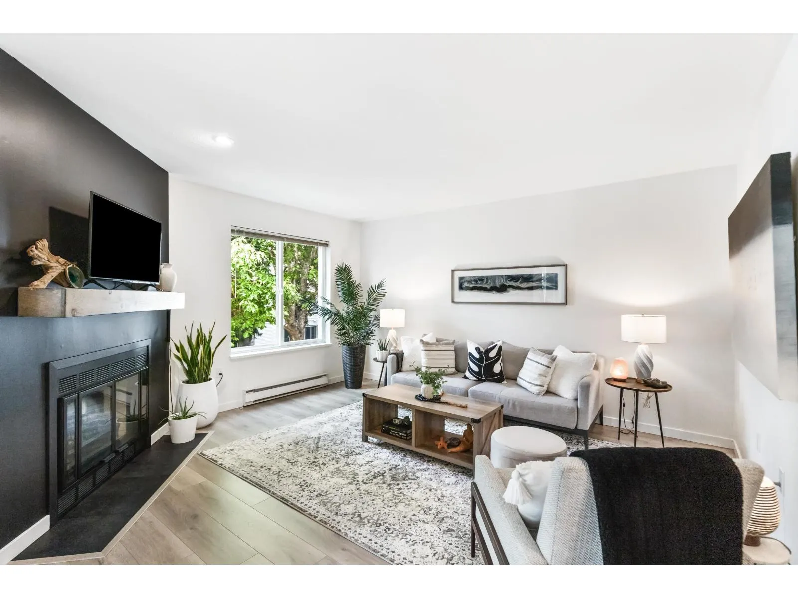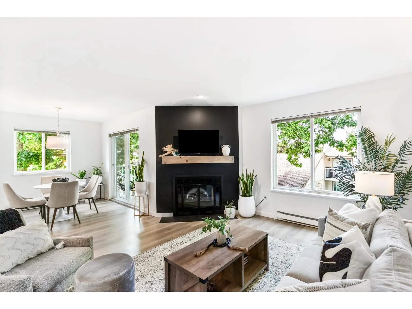 Welcome to Ocean Park Village! This updated sunny upper-floor corner unit features 2 spacious bedrooms, 2 bathrooms, and a south-facing balcony overlooking lush gardens. Recent renovations include new carpets, laminate flooring, pot lights, updated switch plates, fresh paint, baseboards, and a new fireplace surround. The well-maintained complex has been rain-screened and well-maintained. Bonus locked storage by the front door plus a covered parking stall. Centrally located just steps to Safeway, shops, pharmacy, library, medical, banks, and transit. Proactive strata, 2 pets allowed. (id:27476)