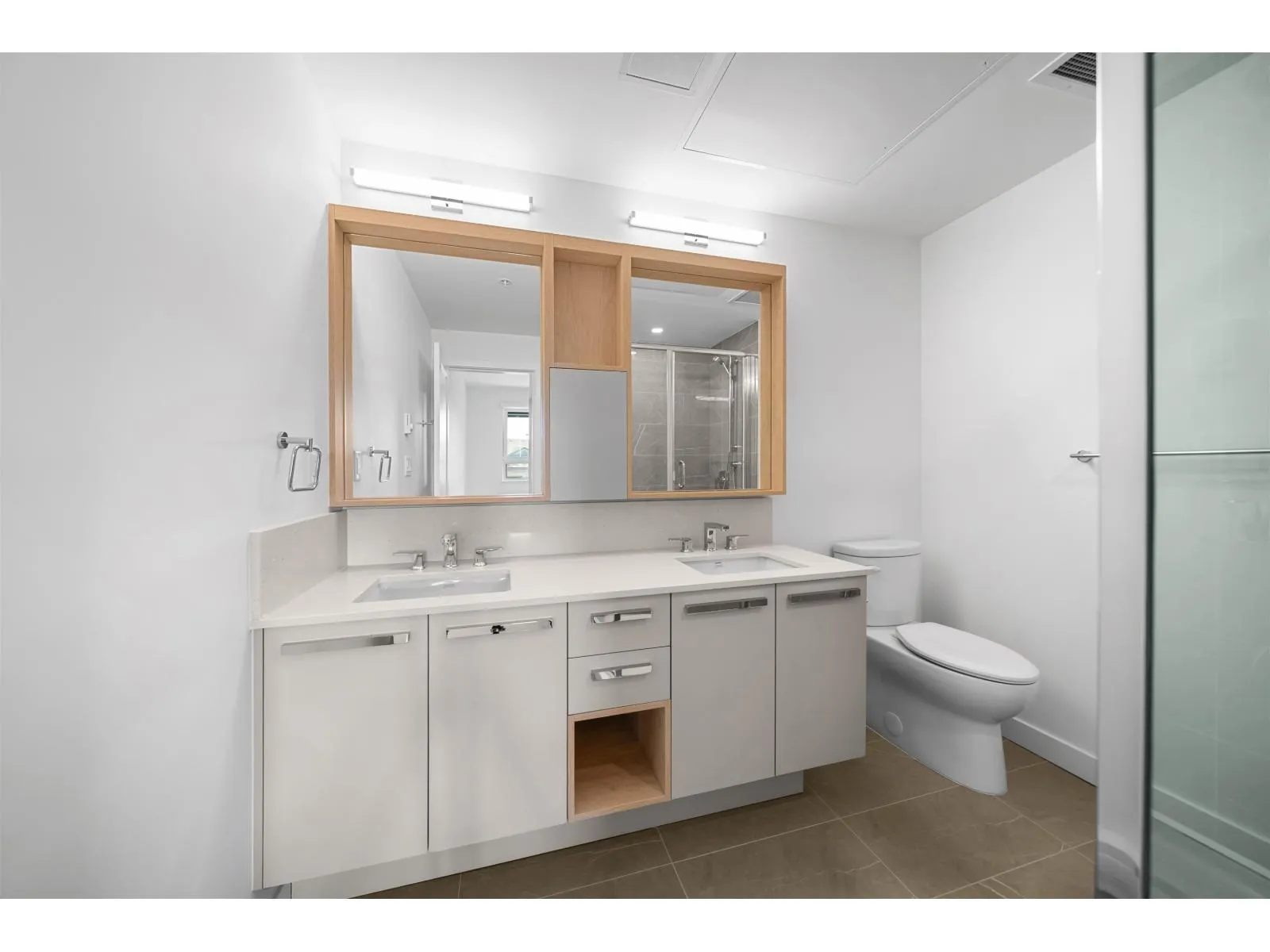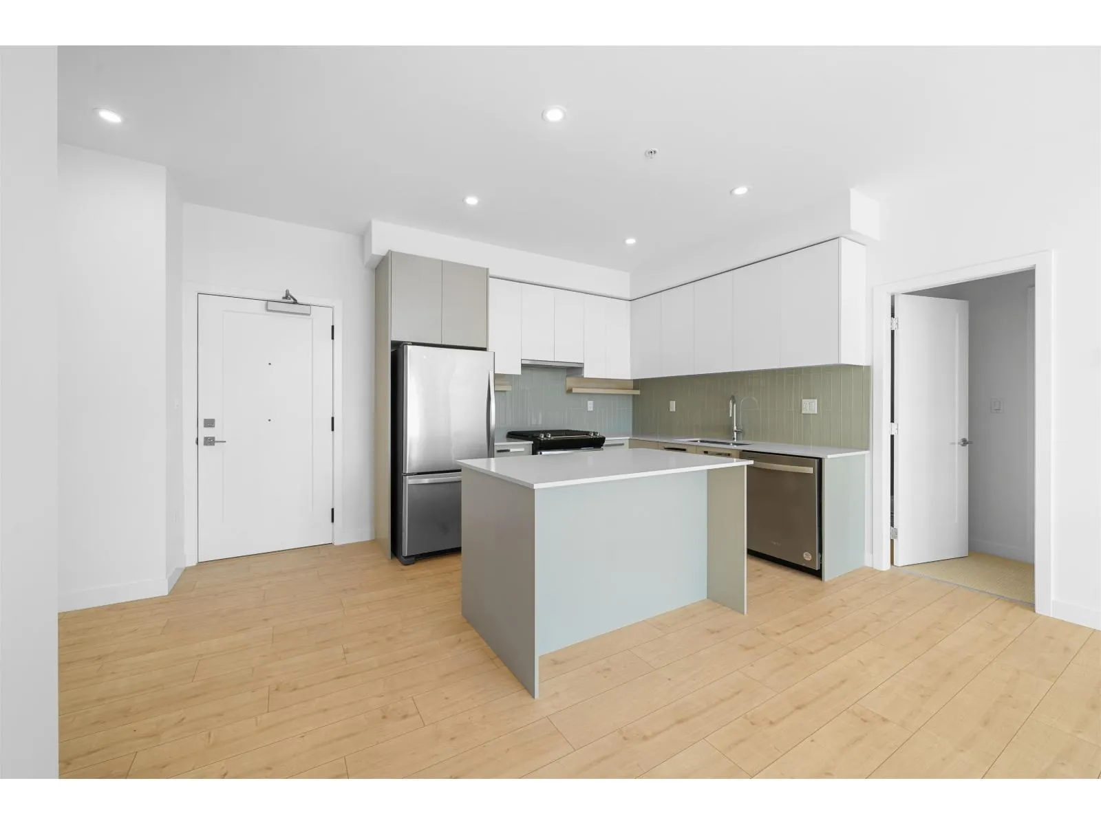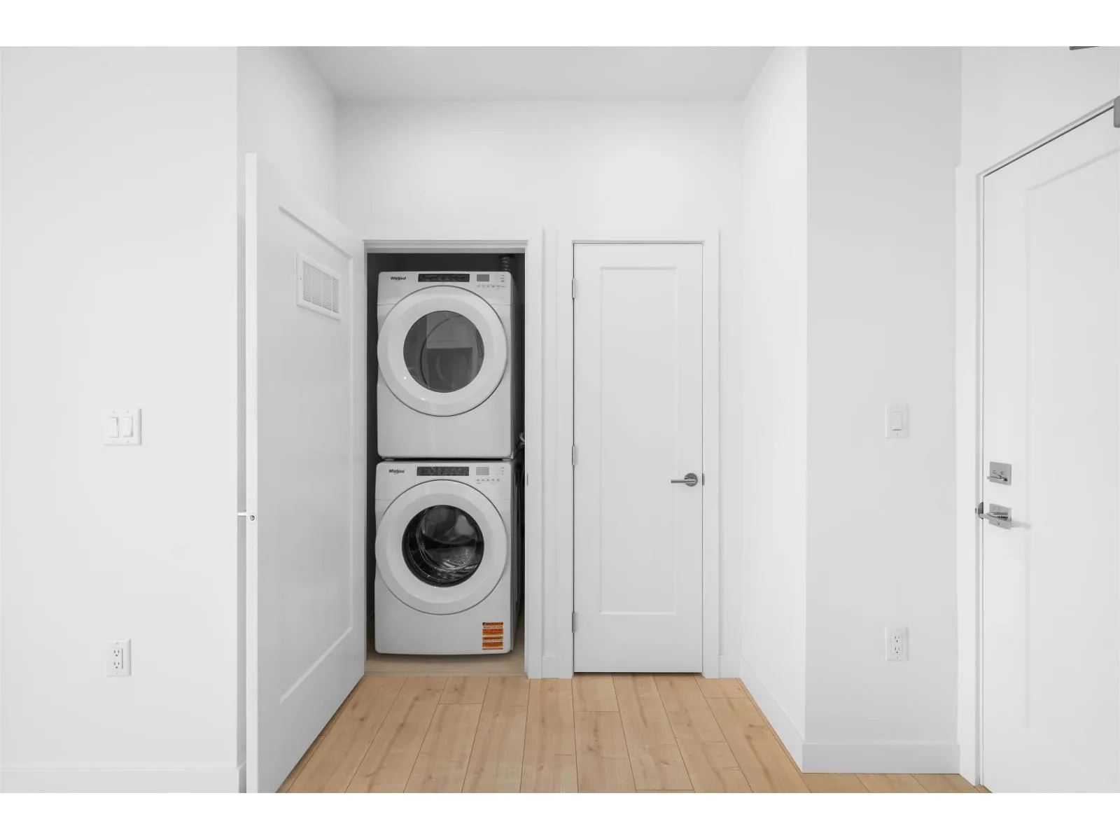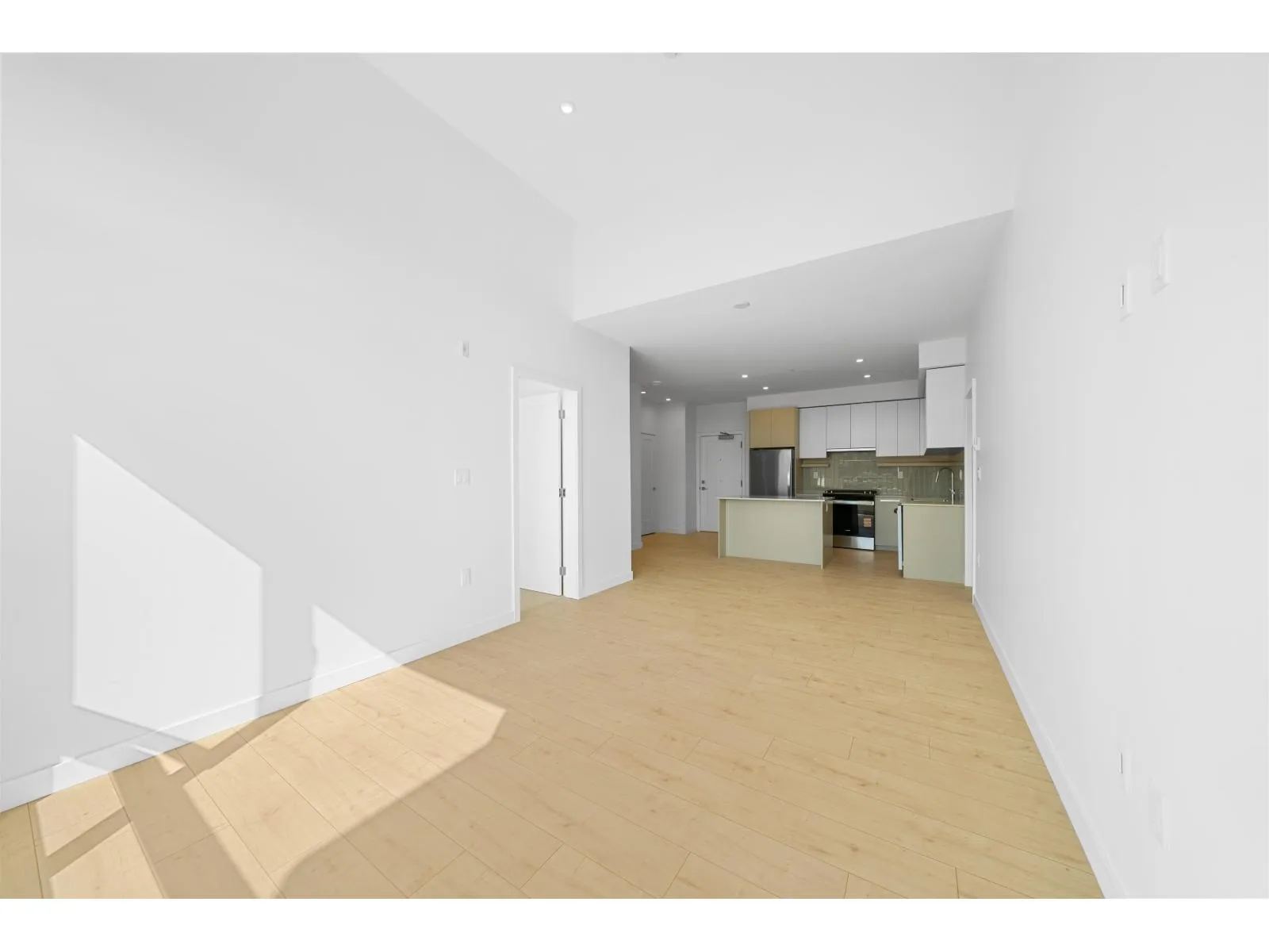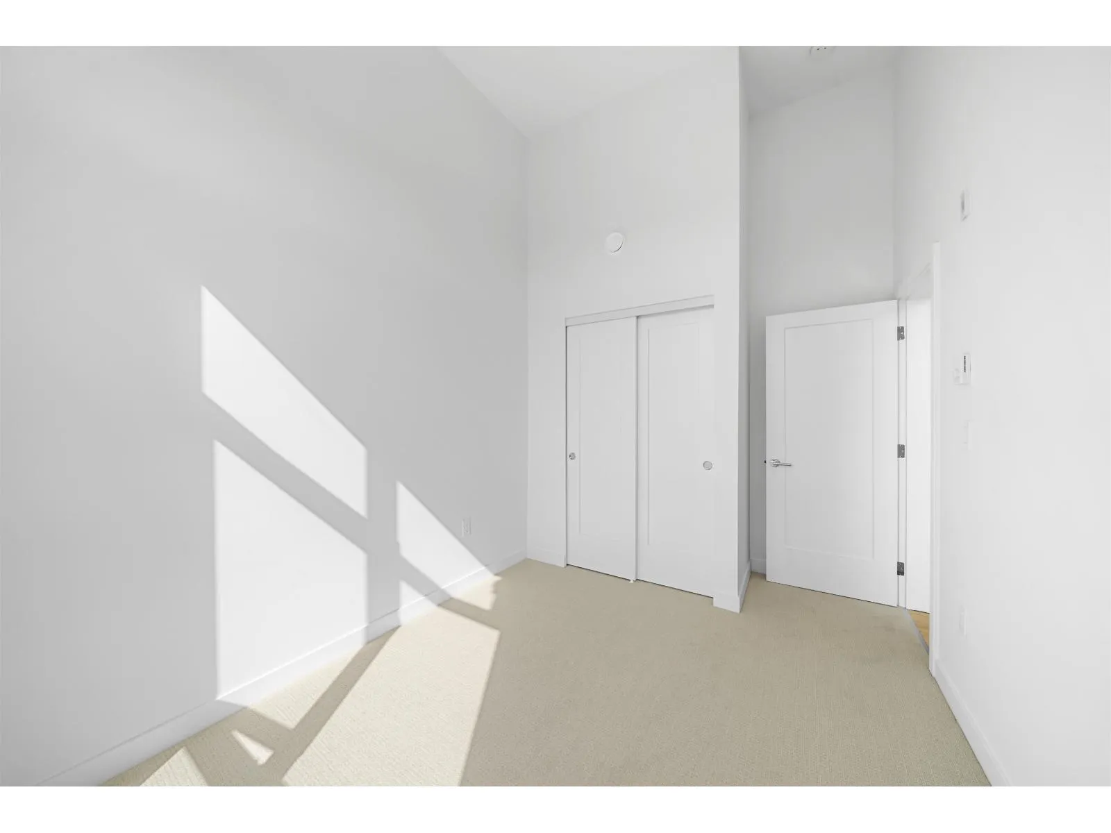 TOP FLOOR! COURTYARD VIEWS! Incredibly high ceilings in this 2 Bed, 2 Bath unit in Silva 1! Lots of natural light and tons of storage with multiple closets and a storage locker. Gas stove for refined cooking and premium finish throughout with stainless steel appliances, quartz countertops, wide-plank flooring, in-suite laundry, walk-in closet, and double sink bathrooms. Comes with a mini-office and solarium enclosure system on the balcony allowing you to enjoy all the seasons from your outdoor living space! Luxurious amenities include a modern courtyard, fitness center, co-working space, social lounges, community kitchen and much more. One of a kind building in Newton's vibrant neighborhood within walking distance to all your needs! Huge balcony & 12'6" CEILING HEIGHT in the living room! (id:27476)