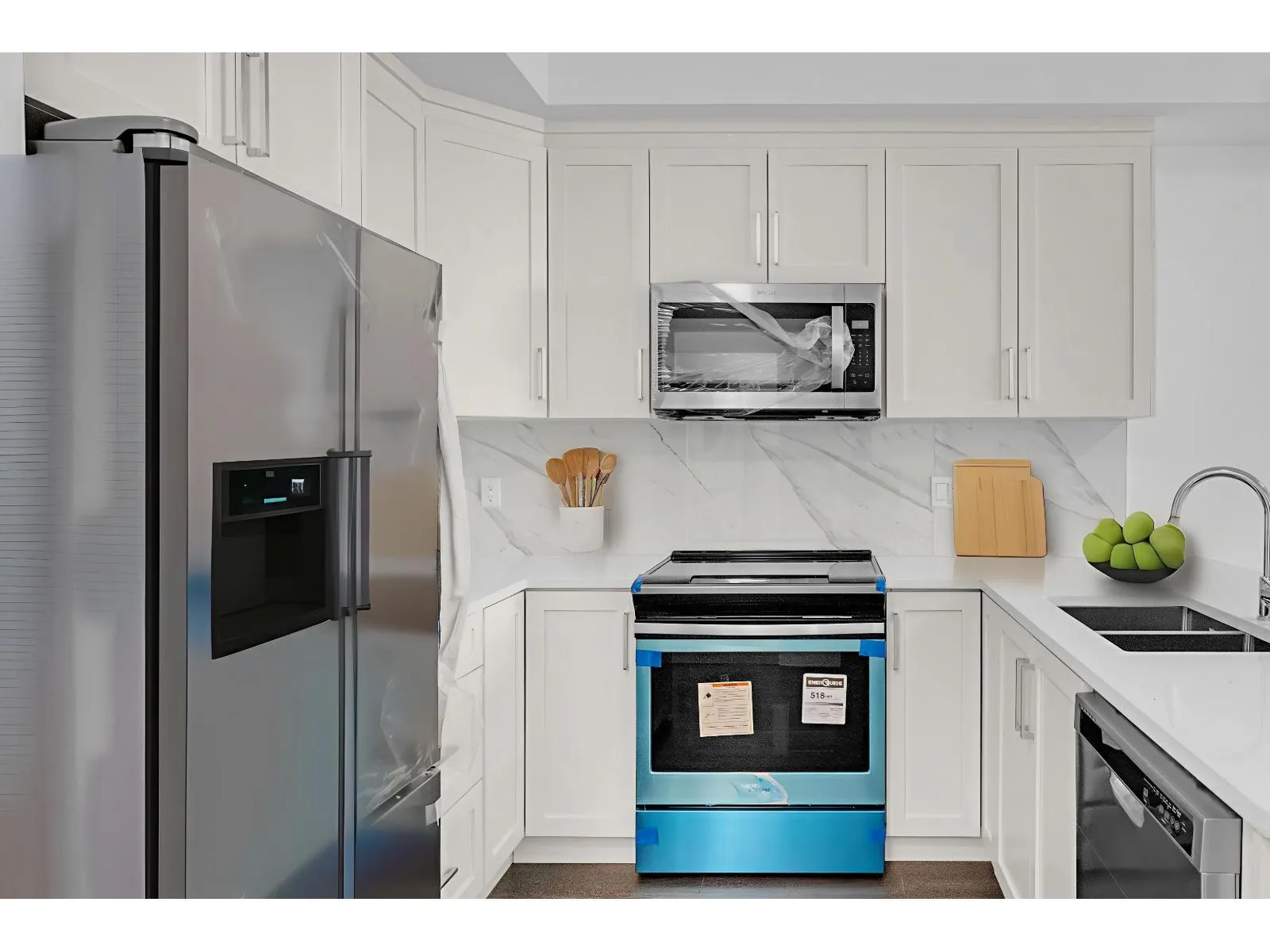 FEELS BRAND NEW! Welcome to this stunning 2 bed, 1 bath condo in the heart of Fraser Heights! Built in 2018, this 4th level home features high ceilings, expansive windows, and a spacious open-concept layout. The modern kitchen boasts white cabinetry, natural quartz countertops, a marble-inspired backsplash, and premium Whirlpool stainless steel appliances. Step outside to your beautiful balcony and take in the breathtaking West Coast Mountain views. Located in a highly sought-after neighborhood with top-rated schools, parks, and amenities, plus easy access to Guildford Town Centre, Langley and Vancouver. Convenient new #338 bus route nearby. (id:27476)