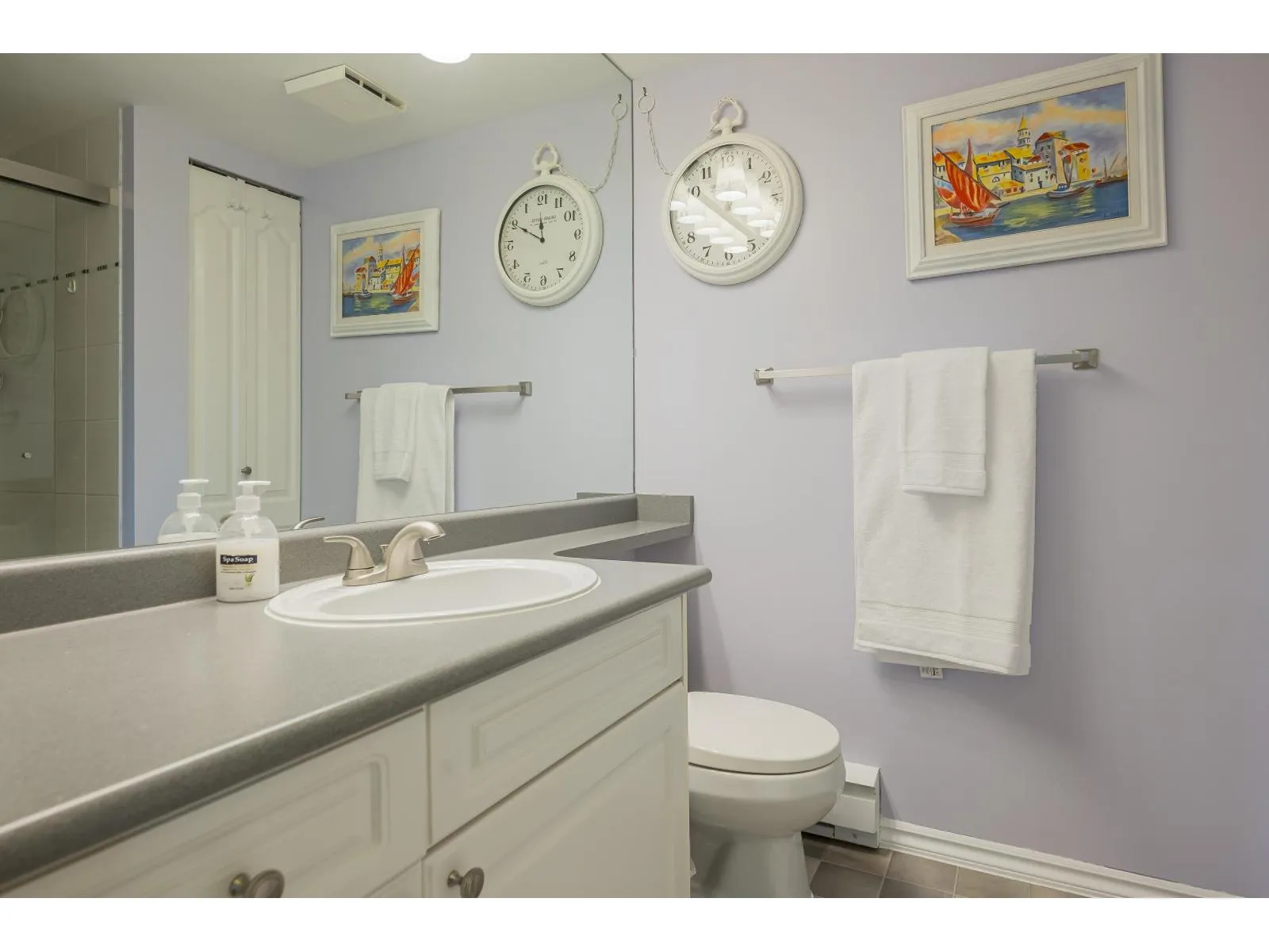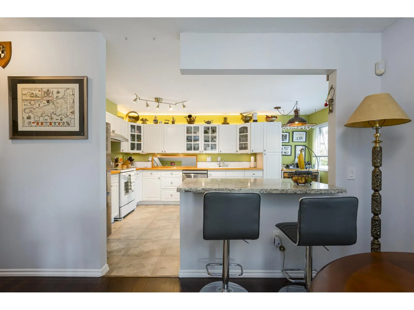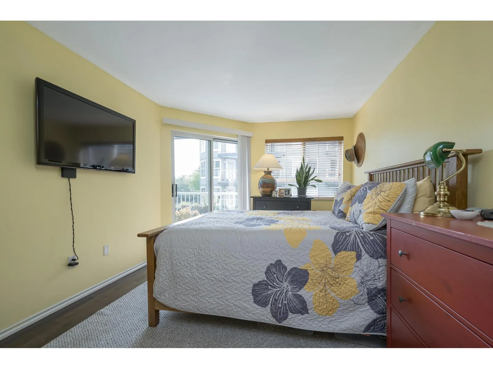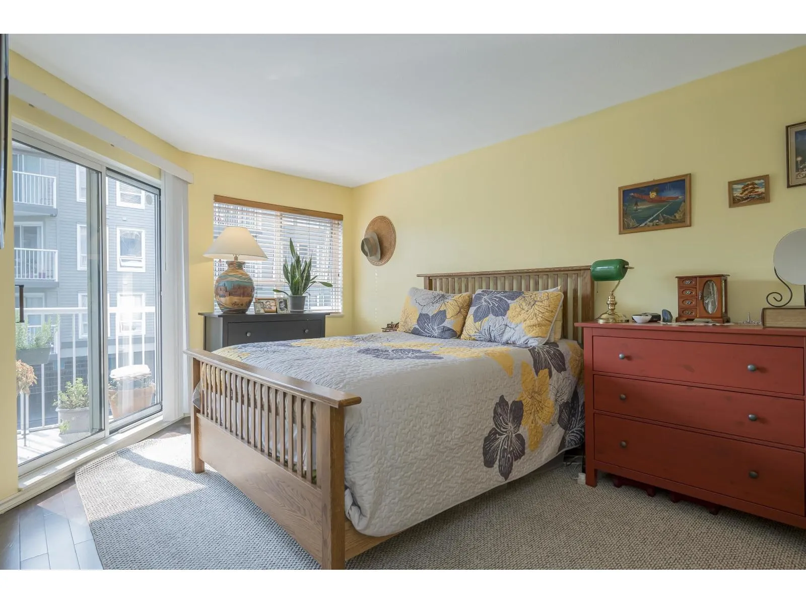 NOT YOUR AVERAGE CONDO!!! Rare 2 bedroom corner unit in the Fraser with fantastic natural light. One deck off living room measures 5'8x19'4 and another off the kitchen is the same size. Open kitchen concept with huge island overlooking the dining room. Eating area converted to office space and its great! Living room is spectacular with circular windows and cozy fireplace. Great sized second bedroom and beautiful Primary bedroom with access to your 5'8x19'4 covered deck! Walk-in closet and lovely ensuite! This place feels like a home with foyer and hallway separating the living space. Lots of storage. 2 parking spots side X side and close to the door. Pro active strata, Fitness facility, sauna, visitor parking 2 pets with no size restrictions. Storage locker down the hall! Nothing to do! (id:27476)