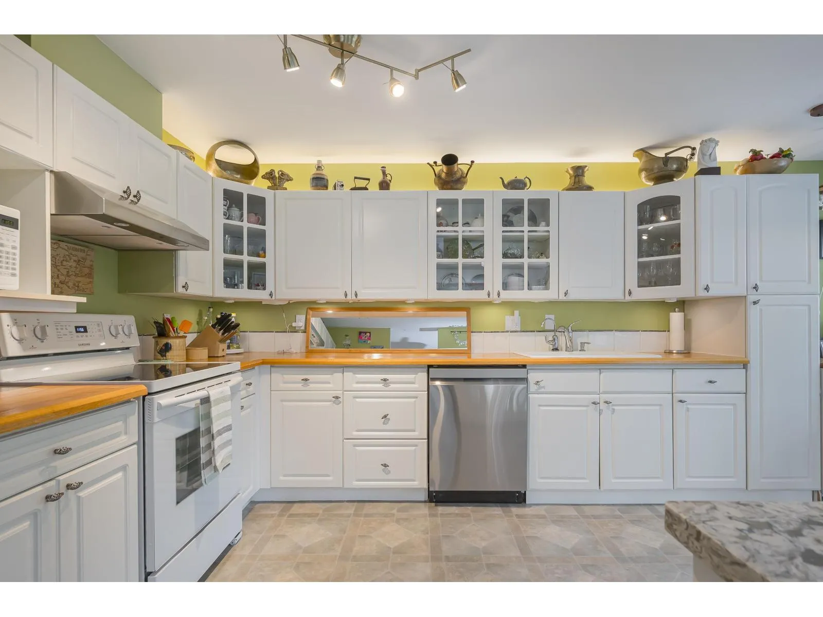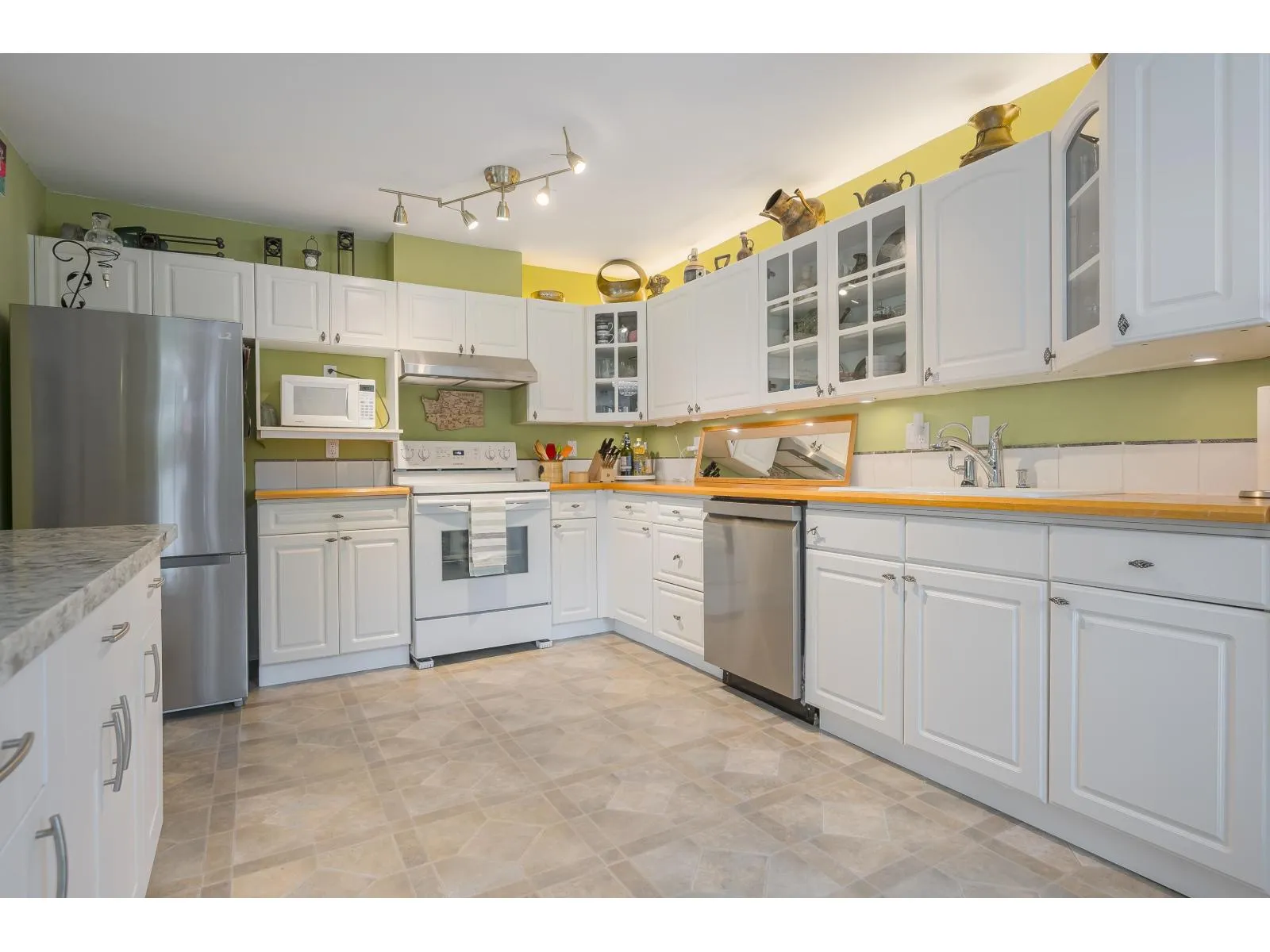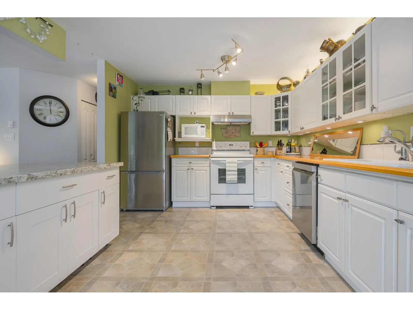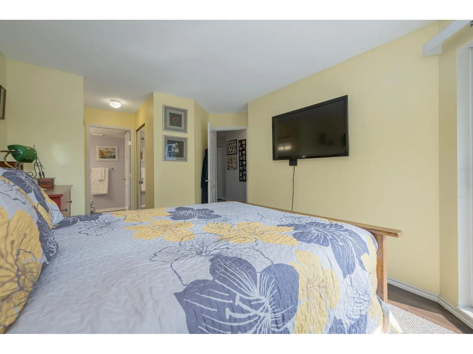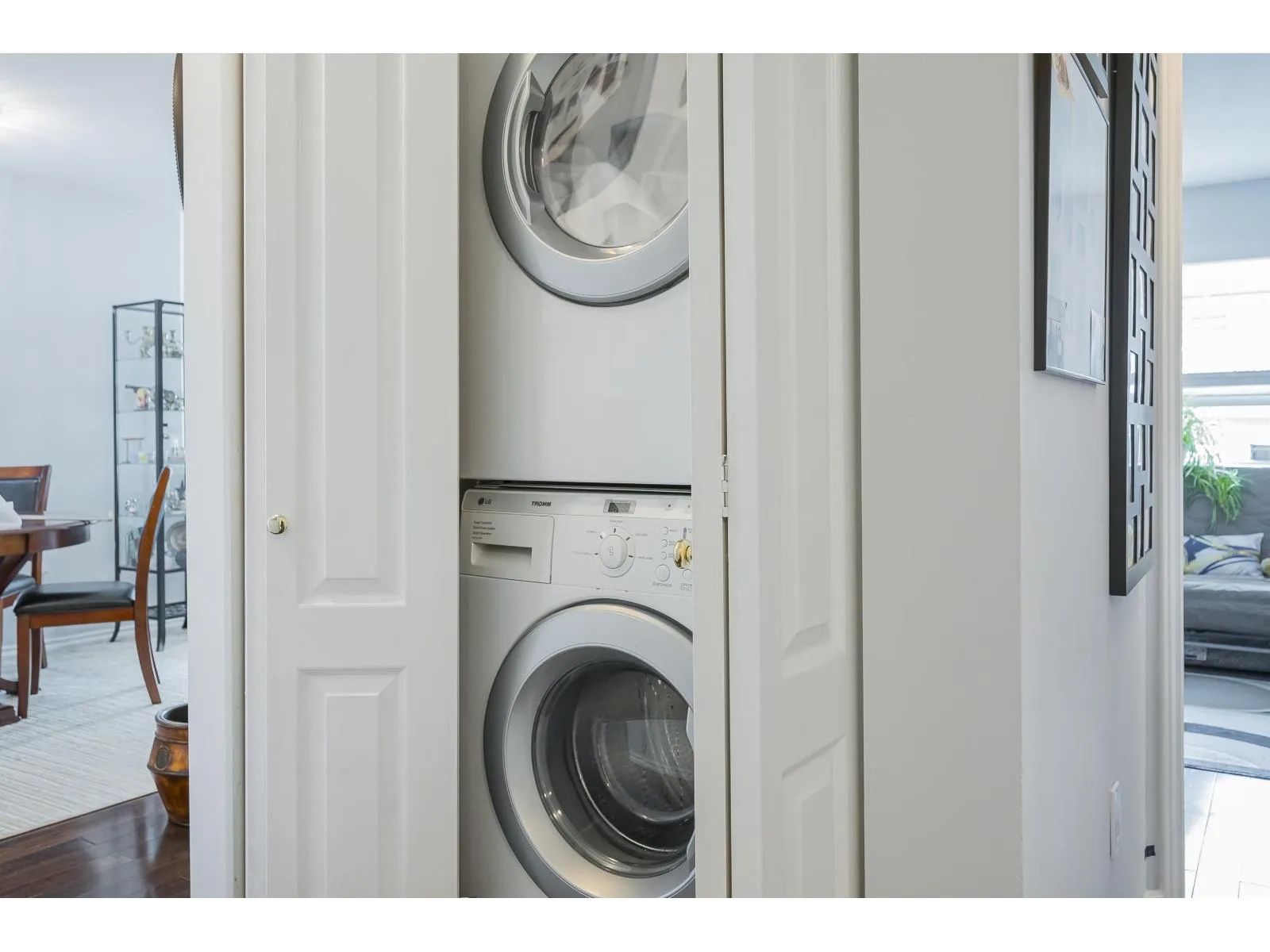 NOT YOUR AVERAGE CONDO!!! Rare 2 bedroom corner unit in the Fraser with fantastic natural light. One deck off living room measures 5'8x19'4 and another off the kitchen is the same size. Open kitchen concept with huge island overlooking the dining room. Eating area converted to office space and its great! Living room is spectacular with circular windows and cozy fireplace. Great sized second bedroom and beautiful Primary bedroom with access to your 5'8x19'4 covered deck! Walk-in closet and lovely ensuite! This place feels like a home with foyer and hallway separating the living space. Lots of storage. 2 parking spots side X side and close to the door. Pro active strata, Fitness facility, sauna, visitor parking 2 pets with no size restrictions. Storage locker down the hall! Nothing to do! (id:27476)