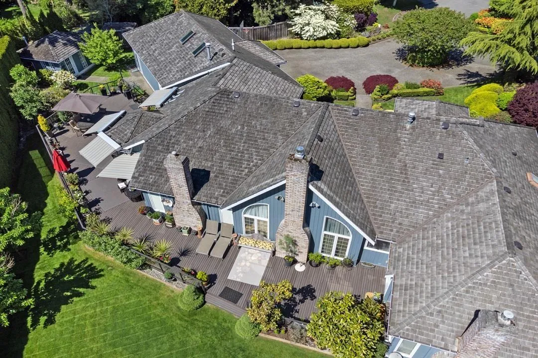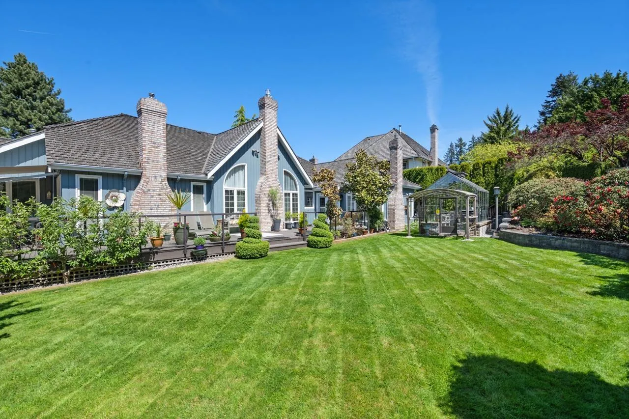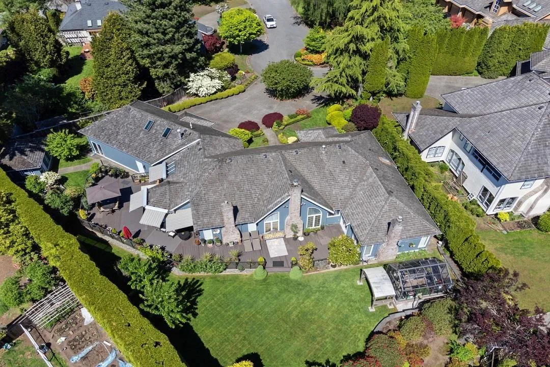 Sprawling 3,274 SF rancher on completely private 14,810 SF South/West exposed fully fenced manicured hedged property. Circle driveway, triple garages. Quiet, peaceful cul-de-sac. Three large bedrooms/three full bath. Hardwood floors, primary suite on main. Kitchen features: Prof Wolf n/gas range, venting & wall oven. Full size Sub-Zero wine fridge, fridge and freezer plus fridge drawers integrated into the custom kitchen cabinets. Massive island with thick granite surfaces. Formal dining, living room and family room. Three natural gas fireplaces, ample storage options. Irrigation front & back, greenhouse, retractable awnings. School Catchments: Crescent Park Elementary & Elgin Park Secondary. New roof, hot water tank & H/e furnace. Seller wants a December 1 Completion-Possession. (id:27476)