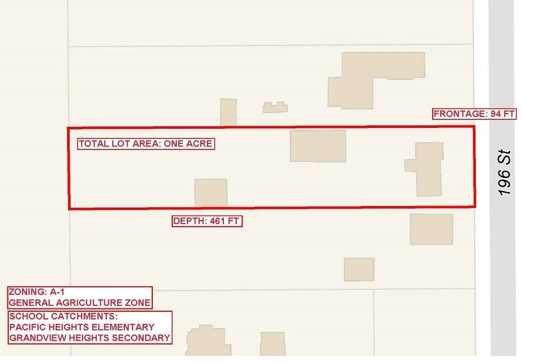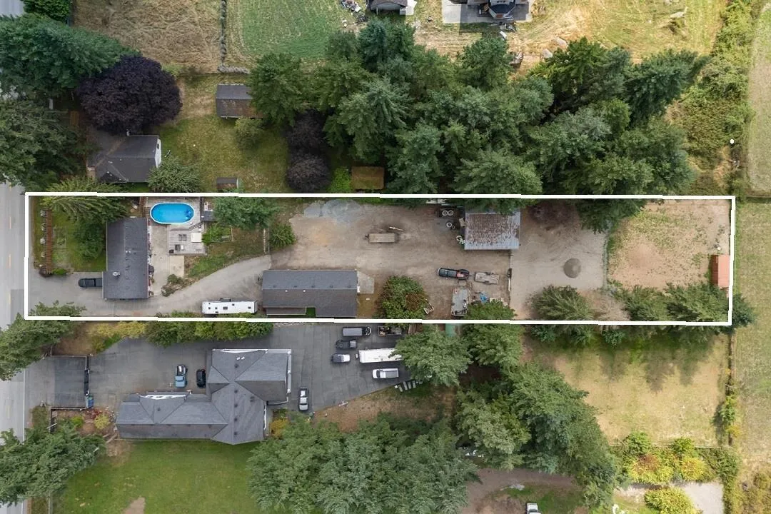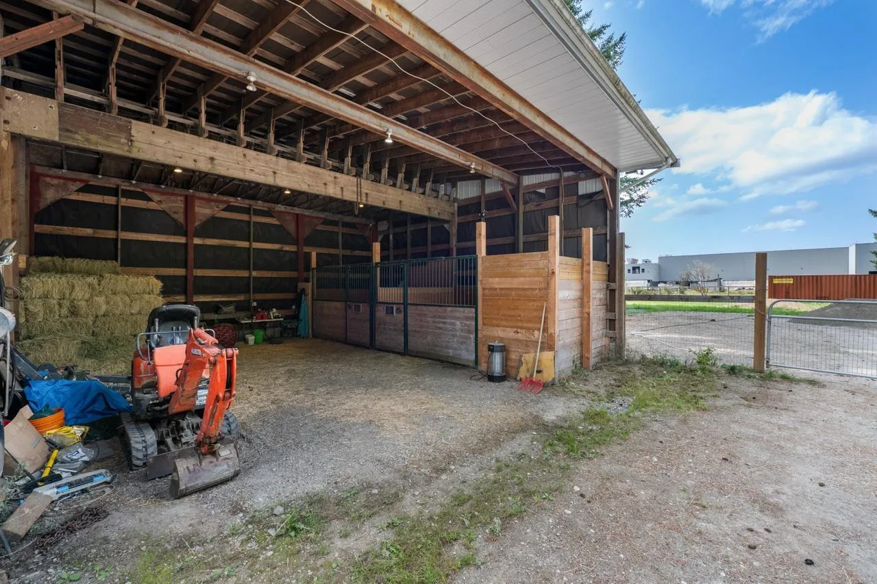 One Acre Rural living in the heart of Campbell Heights Business Park District in Surrey. Three bedroom Rancher 100 amp service-separate meter-1466 SF Home has central A/C. Roof 30 yr asphalt is 10 years New* Large Detached Heated Garage @ 833 SF Shop w/ 200 amp service with Mezzanine 14 ' door(access 2nd showings).Vacant authorized suite 801 SF. 2 Stall Barn( 1000 SF) w/ Metal roof 40'5/30'10 W/ hay storage .Property is fully Fenced w/ Security Cameras & Large Dogs on Property. All Showings the Listing Agent must be Present. Ample notice Please for access .Qualified Buyers Only Please. Above ground Pool 15'/30' Patios and Decks 1400 SF School Catchments:*K-7 Pacific Heights Elementary and 8-12 Grandview Secondary .A Crushed Asphalt Large Parking area inside security fence for trucks. Digital Brochure available and floor plan in Picture file on MLS* Virtual staging implemented in some interior pics .Drone Shots show proximity of neighboring Warehouse developments west. Property depth 461'/Frontage 94' (id:27476)