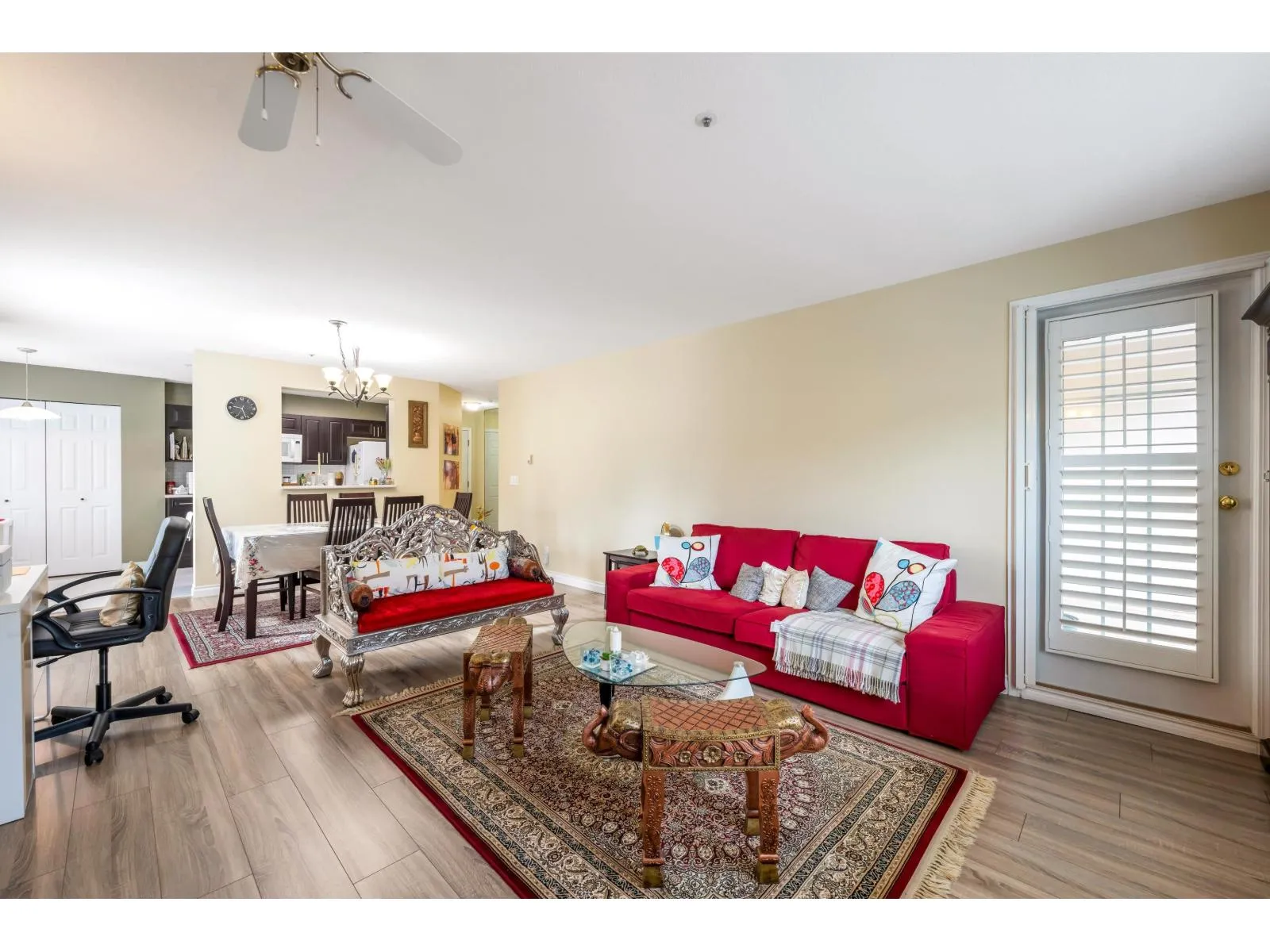 Open House Sun Nov 9th 2-4 pm vibrant community offering this spacious corner unit with over 1200 sq ft of living space, and a huge wrap around patio! The 2 bed, 2 bath, features new laminate flooring, bright kitchen, with beautiful porcelain tiles, new countertops & expresso cabinets with soft close hinges. Plantation style shutters compliment the living room, dining room and kitchen.Enjoy the convenience of being in the heart of the city and enjoy the resort style community which includes everything you need- a club house, guest suites,outdoor pool,hot tub,sauna exercise room, workshop & RV parking! Close to shopping, transit, library and rec centre.Don't miss your chance to make this exceptional condo in the "Mayfair Building" your new home in this amazing GATED Community (id:27476)