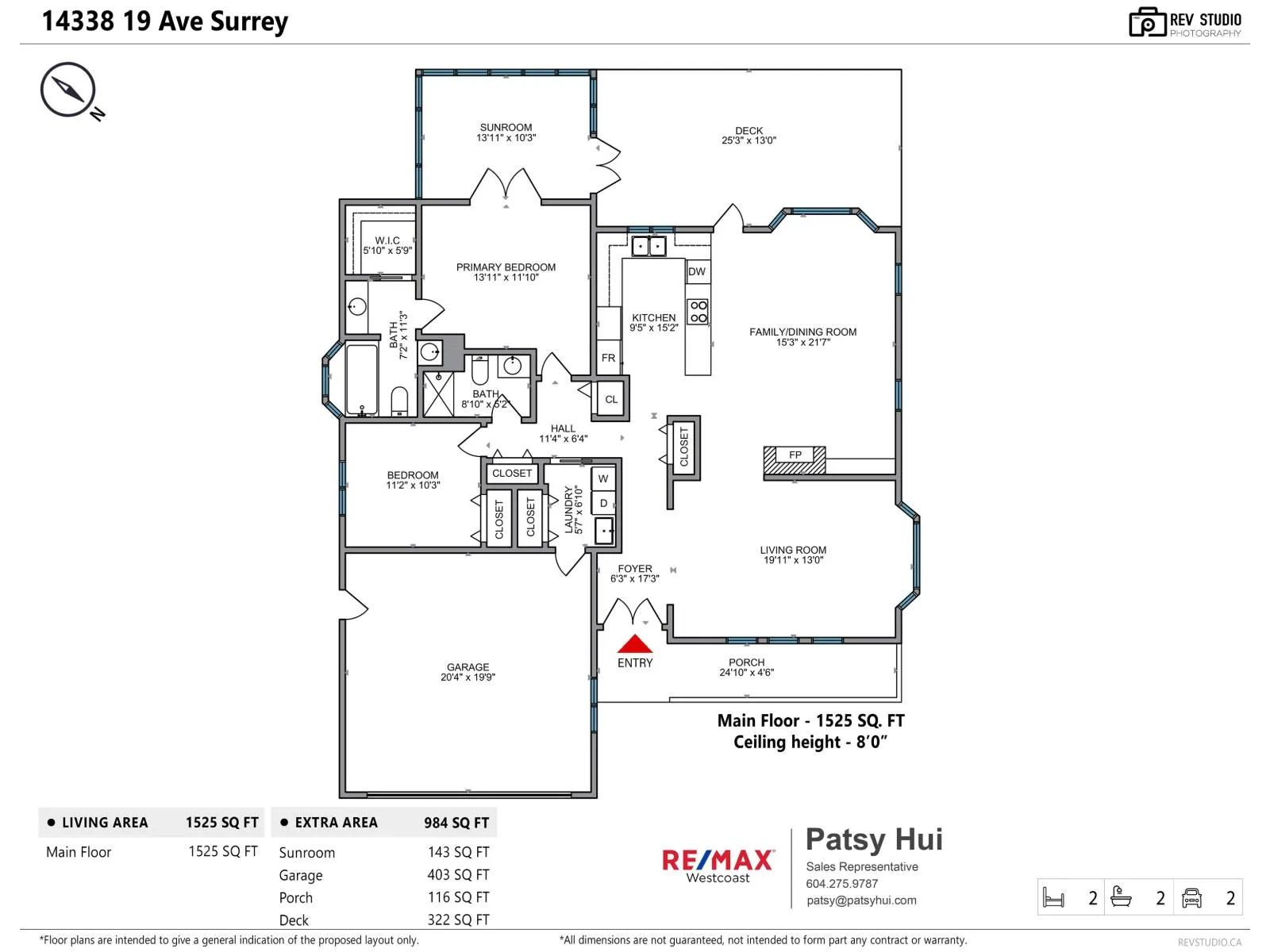Sought after Sunnyside Park 1,525 sq.ft. rancher with 2-bedroom / 2-full baths. Large 8,854 sq.ft. cul-de-sac lot with sunny, southwest private backyard. Open design / layout makes this home flow nicely & comfortably even with big home furniture. Solid oak kitchen (w/custom organizers) opens up to dining / family room and a 25' x 12' back deck. Spacious primary bedroom with 5pc ensuite bath & walk-in closet boasts a 140 sq.ft. sunroom (not included in total square footage). Extremely desirable quiet serene neighborhood. Walk to many beautiful parks, easy access to schools, 5-minute drive to White Rock Beach. Wheelchair accessible. (id:27476)