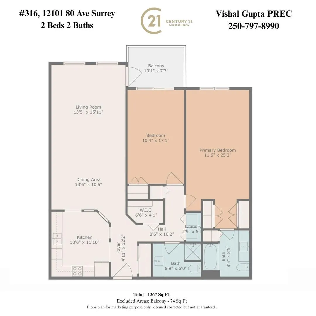Bright and Spacious 1,266 sq ft 2-bed, 2 full baths apartment in a prime central location! Featuring generously sized bedrooms, a well-laid-out kitchen, and a spacious balcony with abundant natural sunlight throughout the day. A perfect blend of comfort and convenience, steps away from everything you need, including Fruiticana, Superstore, Canadian Tire, TD Bank, Restaurants, Dollar Store, Bus stop, and Gas Station. One of the best schools in the catchment is Strawberry Hill School. Two covered Parking stalls, 70 &71, and one locker. *Open House 15th November, Saturday 1-3 pm. We will provide full cooperation to your clients. (id:27476)