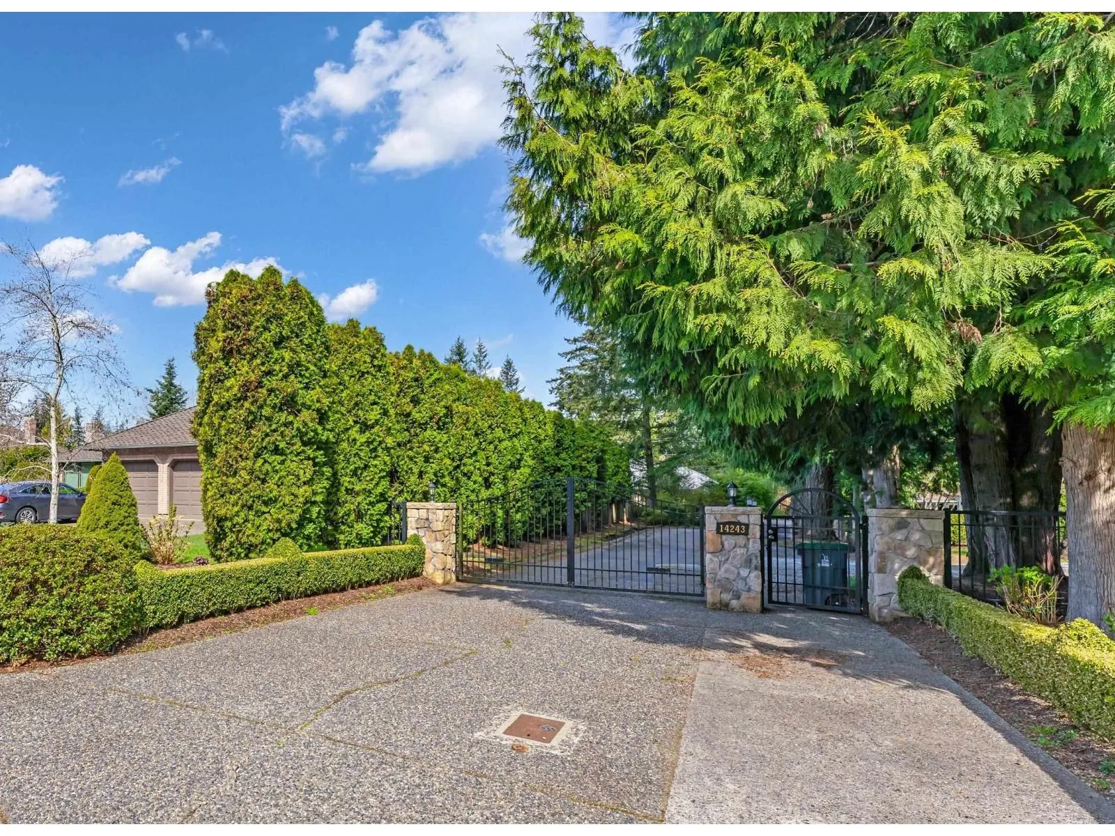 Excellent value, 24,000+ sqft lot, Assessment $2,202,000. Charming rancher with full updated basement in Elgin Chantrell, bordering protected green space/creek. Tucked away behind a gated private driveway, offers unmatched privacy and a deep connection to nature. This home retains its original character and warmth, open-concept layout, granite countertops, floor-to-ceiling windows that flood with natural light. basement features a huge recreation rm, a guest bdrm, a gym, perfect for entertaining and relaxing. Whether you're looking to move in or build your dream mansion the future, it offers endless potential. Enjoy quick access to Highway 99 and King George Blvd, minutes to Marine Drive and iconic White Rock Pier. Come experience the tranquility yourself. (id:27476)