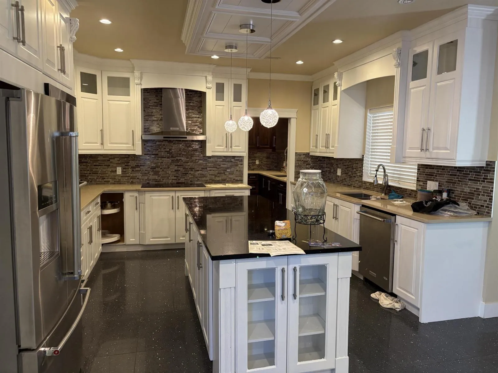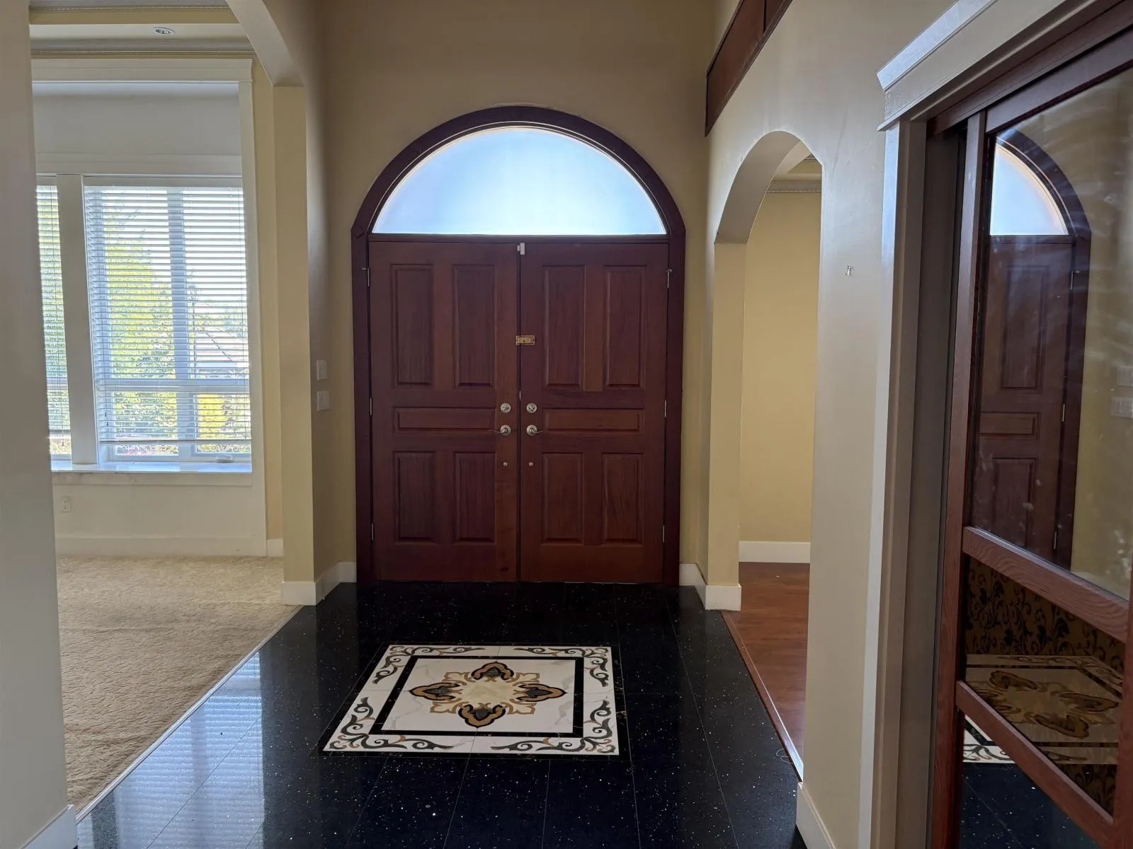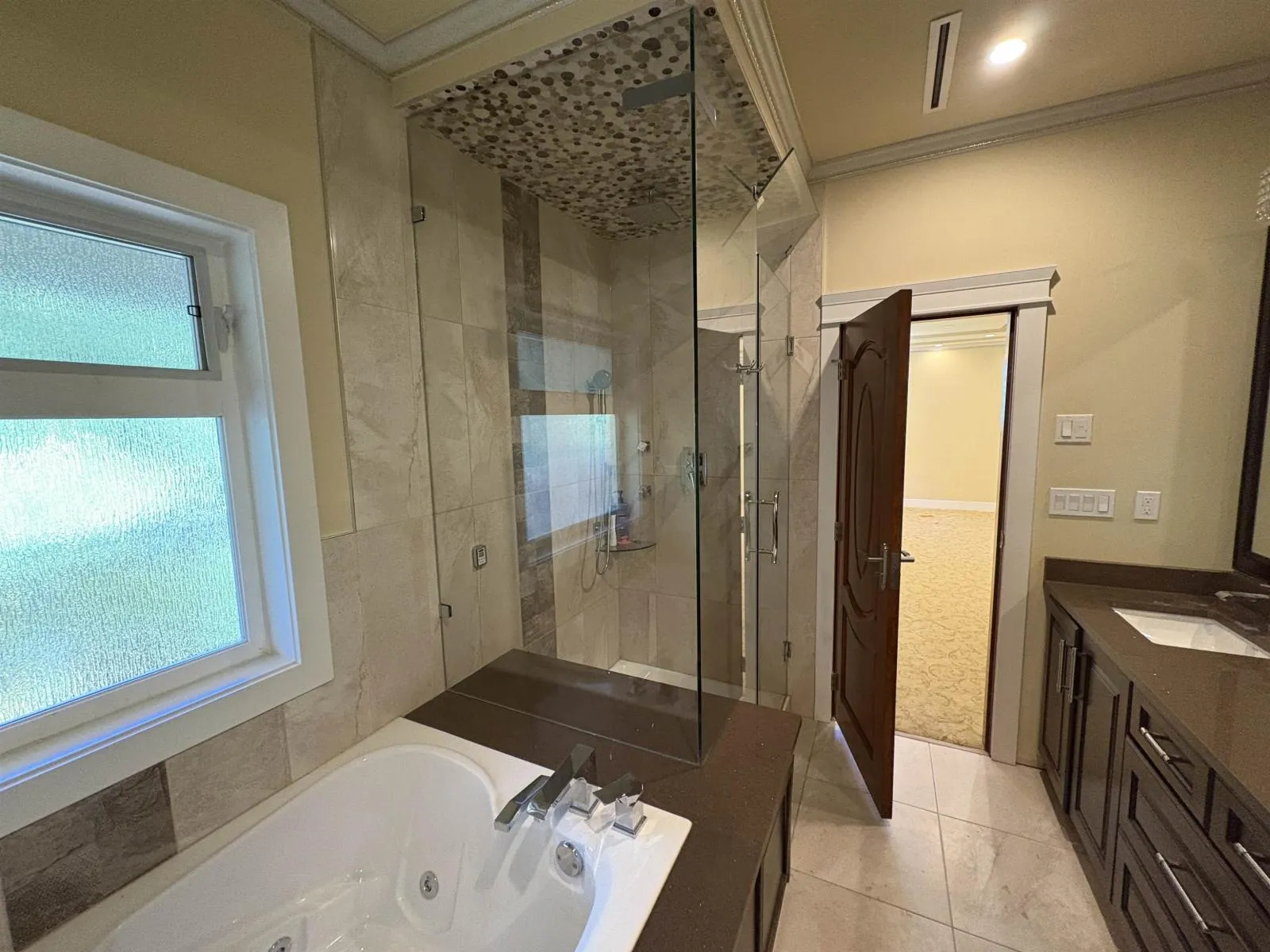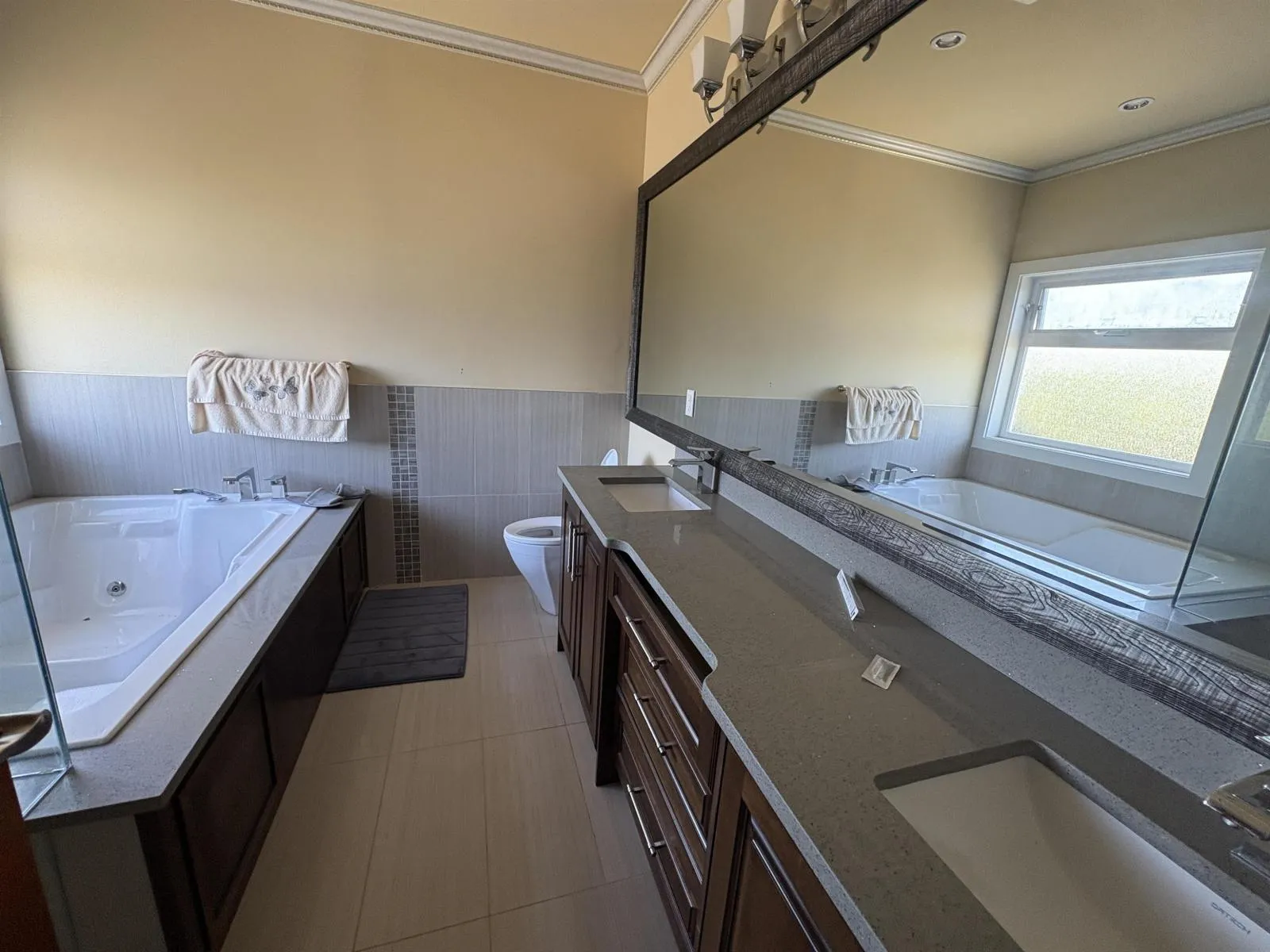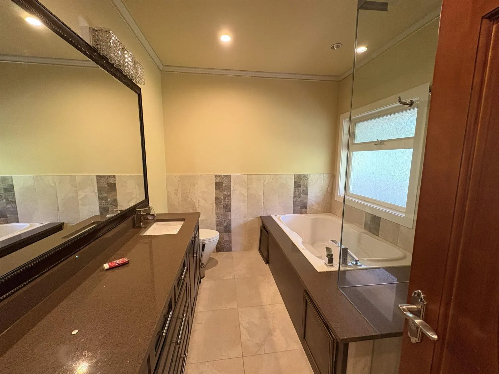 WOW!! Opportunity here. Location is prime in an area of executive homes on a quiet street. Layout is open with all rooms large and open. Main floor has a great spice/wok kitchen, main kitchen with door to back covered deck and level yard, formal area has lots of coffered ceiling details, marble foyer double door entry and 2storey ceilings, main floor bedroom with en-suite bath is perfect for those not wanting stairs. Upper floor has a massive primary bedroom with access to a large covered deck, full spa like en-suite, bedrooms have en-suite baths and walk in closets, even a Juliette deck off one bedroom. Basement with separate entry has an easily done suite with the remaining space for the upstairs use plus an enormous theatre room. Parking is 3 car garage + a single garage for your toys. (id:27476)
