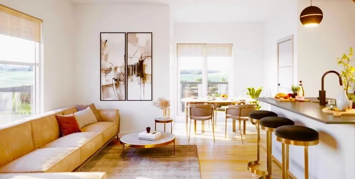 Presenting an exceptional opportunity to own a new 1-bedroom + den condo at VIVA at Sullivan Ridge, set for completion in late Summer 2025. This thoughtfully designed, affordable unit offers a spacious and versatile floor plan, ideal for a variety of buyers, whether you're starting a new chapter, planning for a growing family, or seeking an upgraded living space. Featuring high-quality finishes throughout, the home boasts 9' ceilings, a modern kitchen with stainless steel appliances, custom cabinetry, and sleek quartz countertops. The bathroom is appointed with contemporary matte black fixtures and large-format porcelain tiles. Additional highlights include a 2-5-10 warranty, one parking stall, one storage locker, and access to 4,500 sq ft of premium amenities within the vibrant Sullivan R (id:27476)
