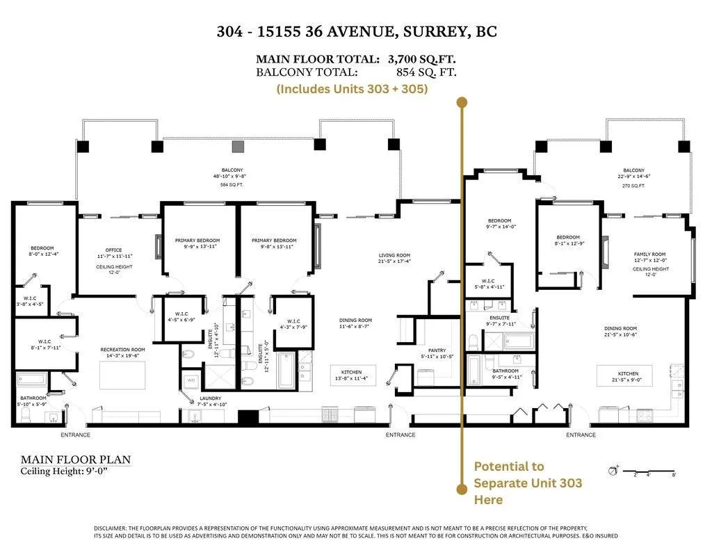 A rare 3,654 sq. ft. penthouse uniting 3 strata suites (303/304/305), each w/ private entry for ultimate flexibility. Features 5 bdrm, 5 bath (3 ensuites), 3 fireplaces, 2 full kitchens w/ islands & pantry, plus ~994 sq. ft. of extensive MOUNTAIN, GRASSLAND & RIVER VIEW patios. Unit 303 can be closed off-ideal as in-law suite, guest/rental, or investment (may split with permit). Unit 305 offers an executive office w/ fireplace, patio views, great room w/ custom cabinetry, removable island, storage, & full bath-perfect as boardroom, studio, or theatre. Resort amenities: pool, sauna, gym, yoga, lounge, gardens. Prime yet private location near highways, border, retail, dining & services. Includes 4 secure parking + 3 massive storage lockers. ONE OF A KIND STUNNING OASIS IN THE SKY. (id:27476)