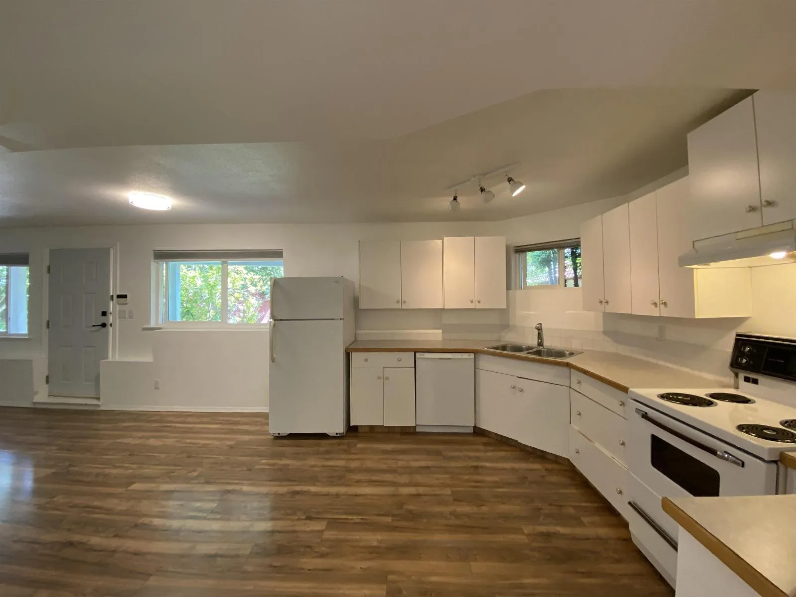 Situated on a tree-lined quiet street, this suite offers an open concept floor plan, spacious living and dining areas, hardwood floors throughout, lots of cabinets and storage space, oversized windows, east facing backyard, fully landscaped and fenced. Easy access to King George Boulevard, TransCanada Hwy 1, Highway 17, Fraser Highway. Close to Surrey Sports Centre, shopping centres, major brand grocery stores, restaurants, golf, parks, and all other amenities. Free unlimited street parking. (id:27476)