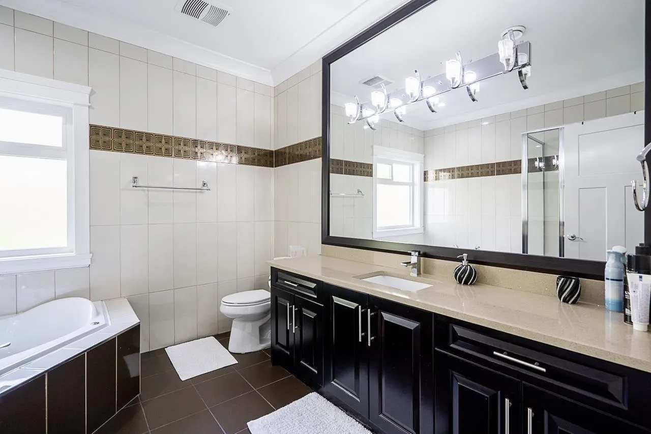 MEGA HOUSE! HIGH CEILINGS & MASSIVE BEDROOMS! Total 8 bedrooms & 9 bathrooms! Approximately 6,473 sqft of floor area on an approx. 10,240 sqft HUGE lot! Enter into a spacious foyer and high ceilings giving mansion vibes. Multiple MASTER BEDROOMS! Five bedrooms on the upper floor all with their own ensuite. Two suites (2 + 1) on the bottom floor with separate laundry & the option of keeping a bedroom with full bathroom on the main floor for own use. Tons of parking space for multiple vehicles on the long stone paved driveway. CENTRAL LOCATION in Queen Mary Park close to schools, parks, transit, and shopping. Custom built home with luxurious fixtures and elegant finishing... the home is a true craftsman special! (id:27476)