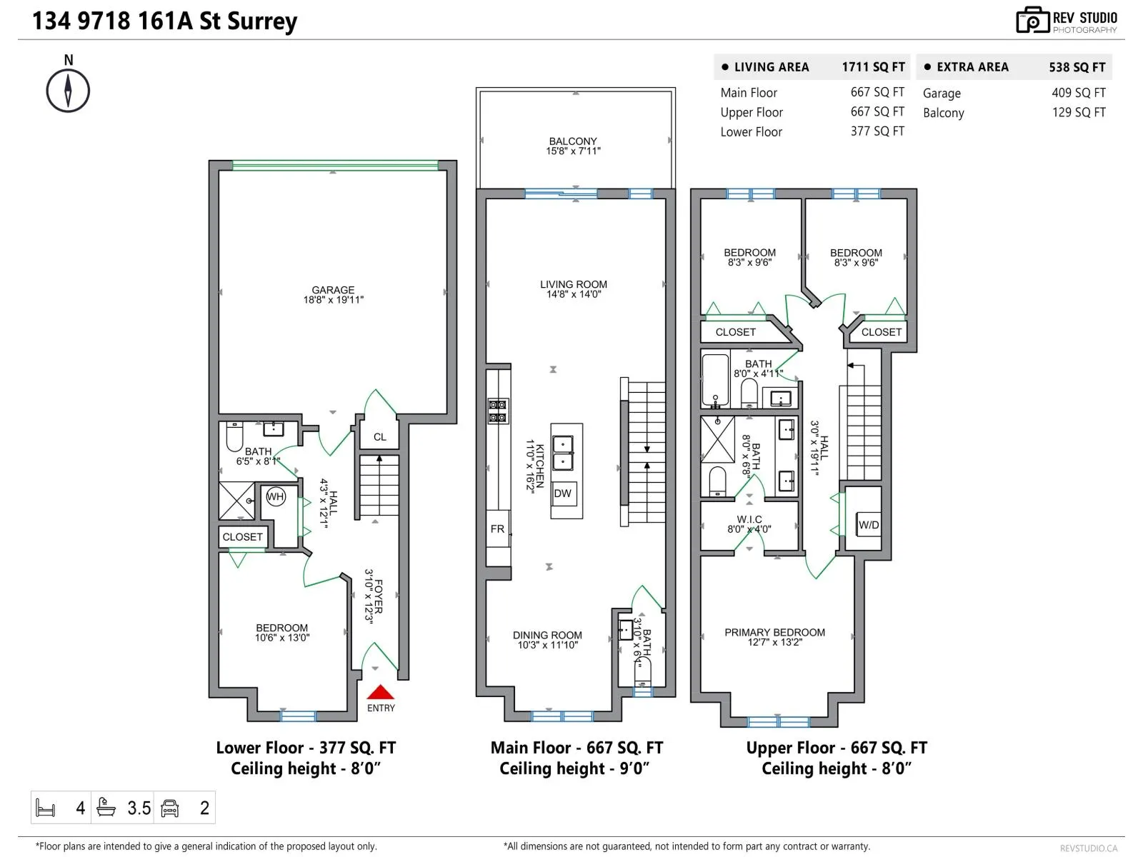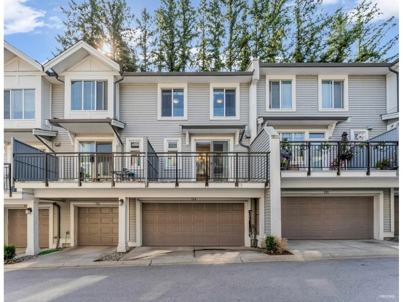 Nestled in the Canopy community at Tynehead Park, this 4-bed/3.5-bath home combines urban convenience with a natural setting. The open main floor features a kitchen with quartz counters, gas range, and stainless appliances, flowing into bright living/dining areas and a spacious deck. Upstairs, find three bedrooms including a primary suite with walk-in closet and ensuite, while the ground level offers an additional bedroom and bath. The attached double garage provides secure parking for 2 cars. Enjoy clubhouse amenities (gym, yoga, billiards, party rooms) and direct access to Tynehead Park trails-all just minutes from Fraser Hwy, transit, shopping, schools, and recreation. Open House Sunday Nov. 9th , 2-4PM. (id:27476)