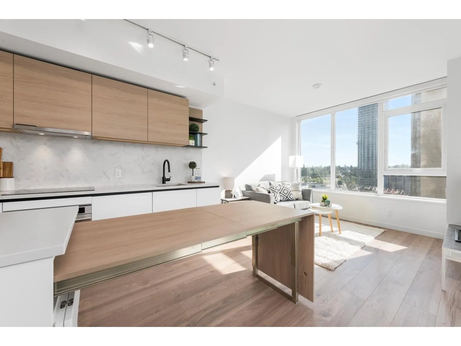 CORNER SW-FACING | 1 BED + FLEX | RESORT-STYLE AMENITIES | POOL VIEWS! Discover modern urban living in this sunlit SW-facing 1 bed + flex residence at University District by Bosa, offering 681 sq ft of sophisticated space with views over the rooftop pool and lounge areas. Thoughtfully designed layout featuring spacious living space and open kitchen with the innovative ExtendTABLET (pull-out dining/work table from the kitchen island). Enjoy over 23,000 sq ft of amenities: fully equipped gym, yoga & spin studios, lounges, games rooms, children's play areas, heated outdoor pool with cabanas, business centre, bike pavilion, dog-wash, EV-ready parking, concierge, and parcel services. Steps to SkyTrain, SFU/KPU, Central City Mall, City Hall, library, parks, and dining. 1 parking + 1 storage. (id:27476)