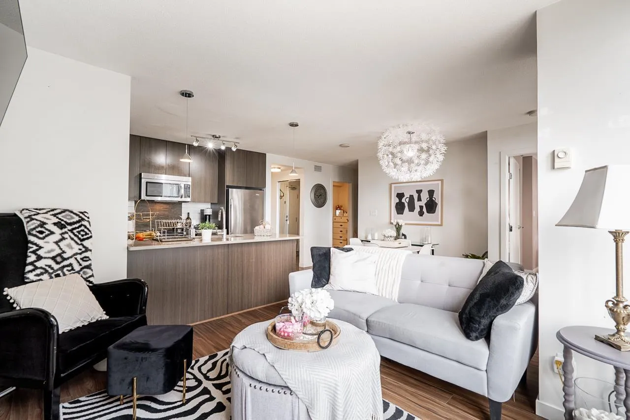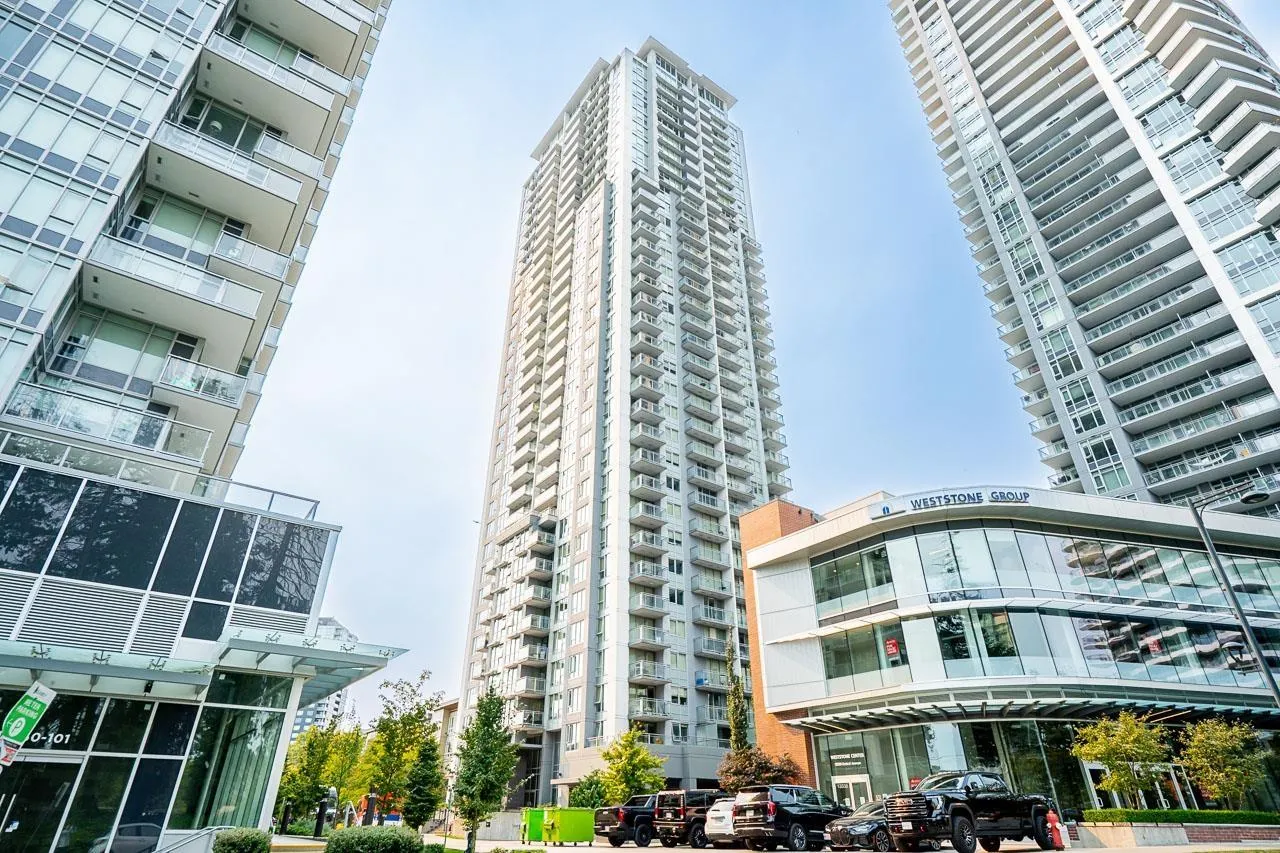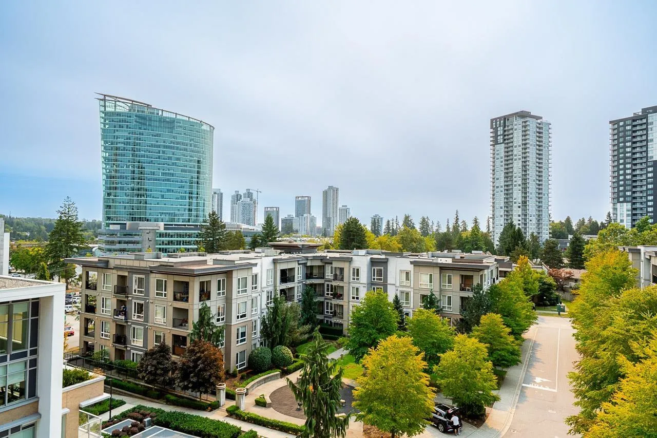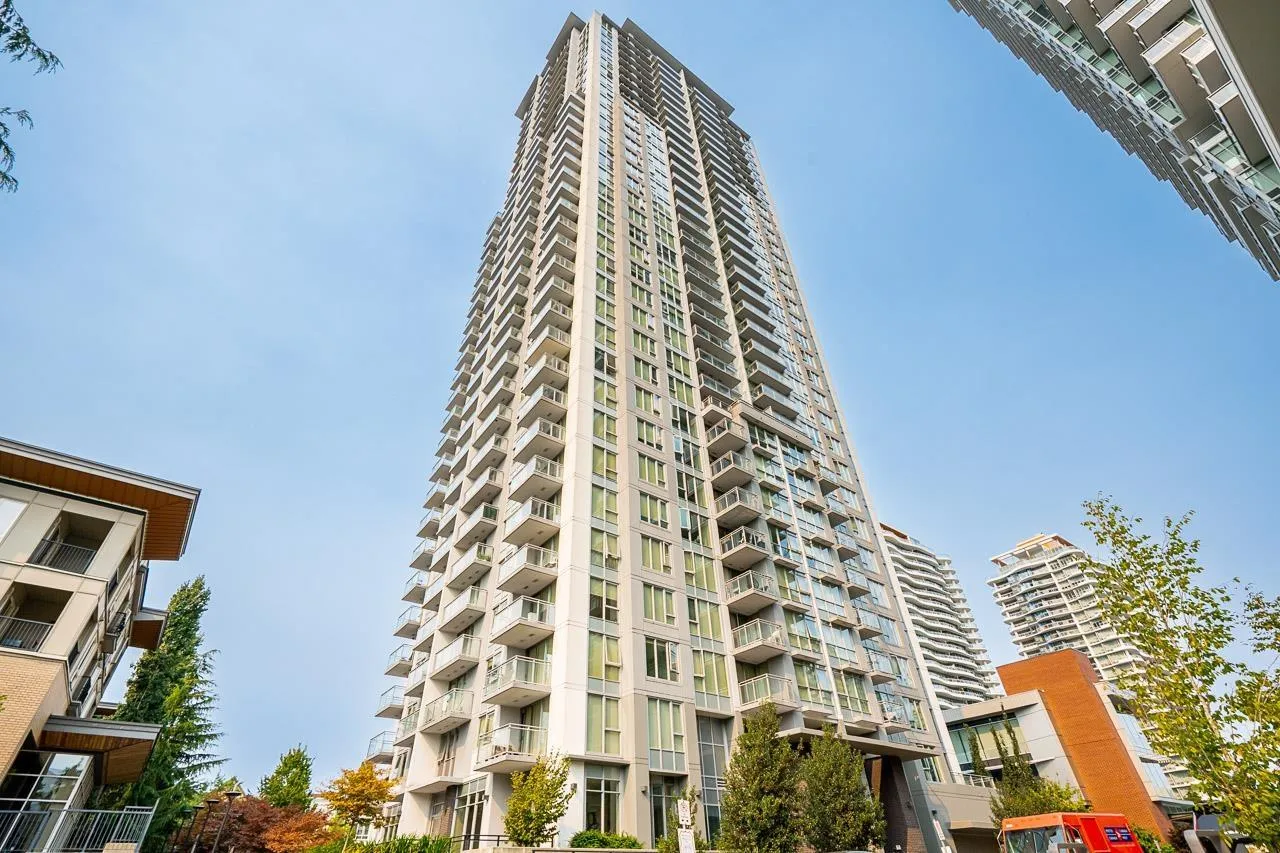 Walk into this bright & functional 2 bed at the iconic Ultra in Surrey City Centre. This NE-facing home offers stunning panoramic views and a smart open layout with no wasted space. The kitchen boasts quartz counters & S/S appliances. The living & dining area seamlessly flows out to a balcony with panoramic views, perfect for morning coffee. The primary bed, big enough to fit a king bed, features 2 closets and a cheater ensuite. The den can accommodate a bed or serve as a great office. Just steps to SFU, SkyTrain, Central City, Holland Park, the library, and Civic Plaza. Perfect first home in the heart of Surrey's growth. (id:27476)