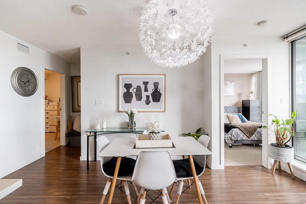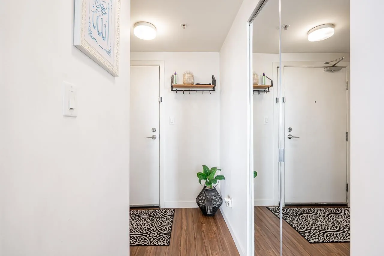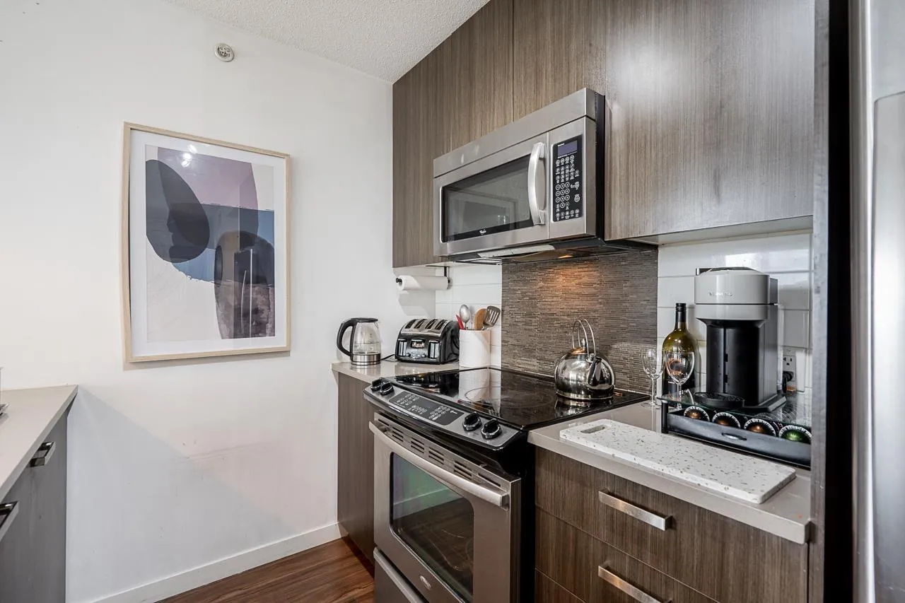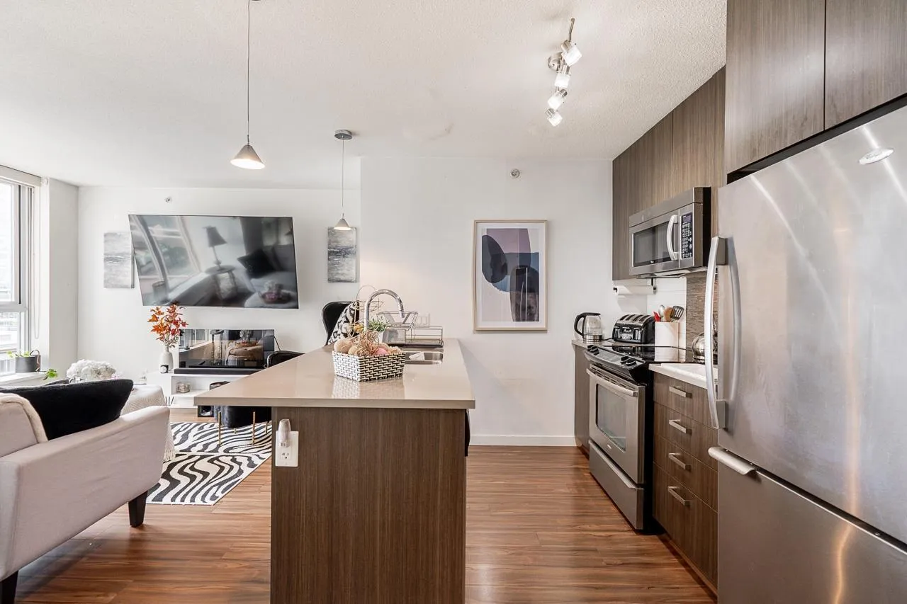Walk into this bright & functional 2 bed at the iconic Ultra in Surrey City Centre. This NE-facing home offers stunning panoramic views and a smart open layout with no wasted space. The kitchen boasts quartz counters & S/S appliances. The living & dining area seamlessly flows out to a balcony with panoramic views, perfect for morning coffee. The primary bed, big enough to fit a king bed, features 2 closets and a cheater ensuite. The den can accommodate a bed or serve as a great office. Just steps to SFU, SkyTrain, Central City, Holland Park, the library, and Civic Plaza. Perfect first home in the heart of Surrey's growth. (id:27476)