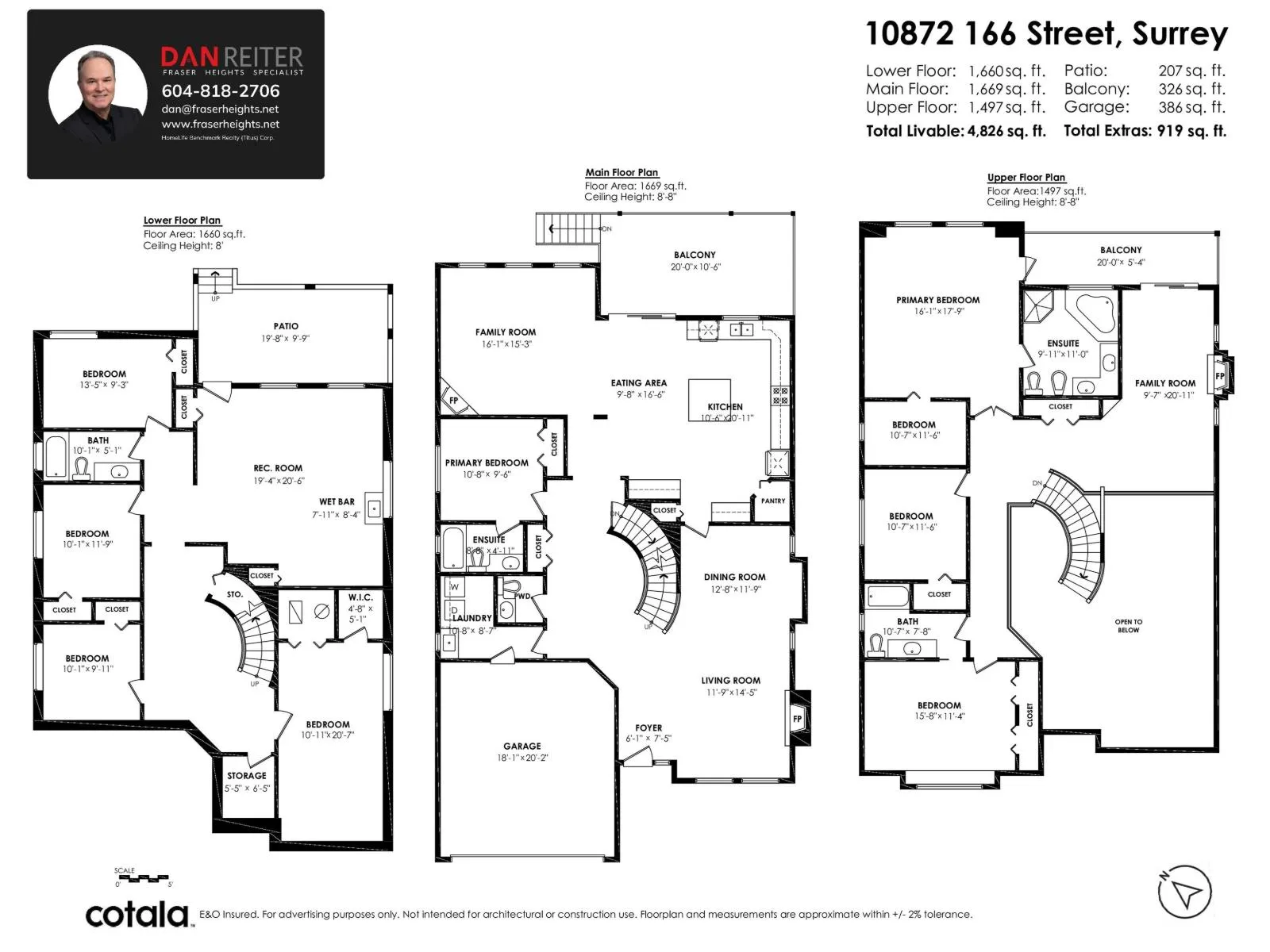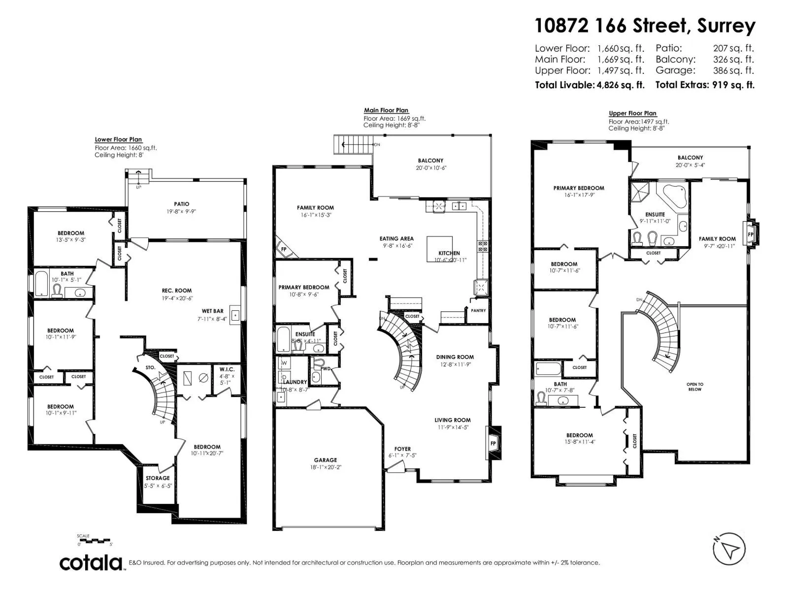OPEN HOUSE SUNDAY NOV. 16 from 2-4. Fraser Heights! Amazing views! This custom built home offers 4826 sq. feet of luxurious living space. Highlights include hardwood floors, crown moldings, central A/C, a massive maple kitchen with centre island and walk in pantry, a guest bedroom on the main floor with its own washroom, plus a second washroom on the main. Upstairs are 3 bedrooms plus an open area office/family room with a gas fireplace that is easily converted to a 4th bedroom. The Primary Bedroom boasts hardwood floors, a walk in closet, a 6 piece ensuite and large covered deck to enjoy the views. Downstairs is the walkout basement with 4 bedrooms plus large rec room with a wet bar. Completely finished except for carpet in some rooms. Don't wait! Call today to see! (id:27476)