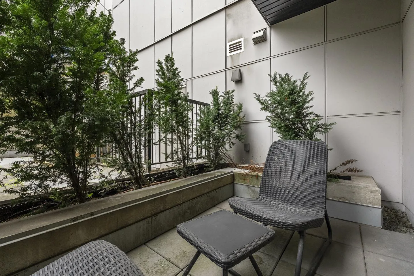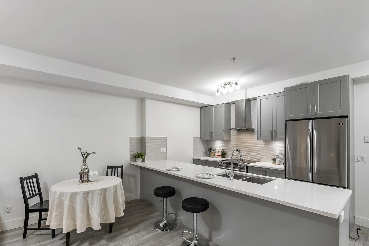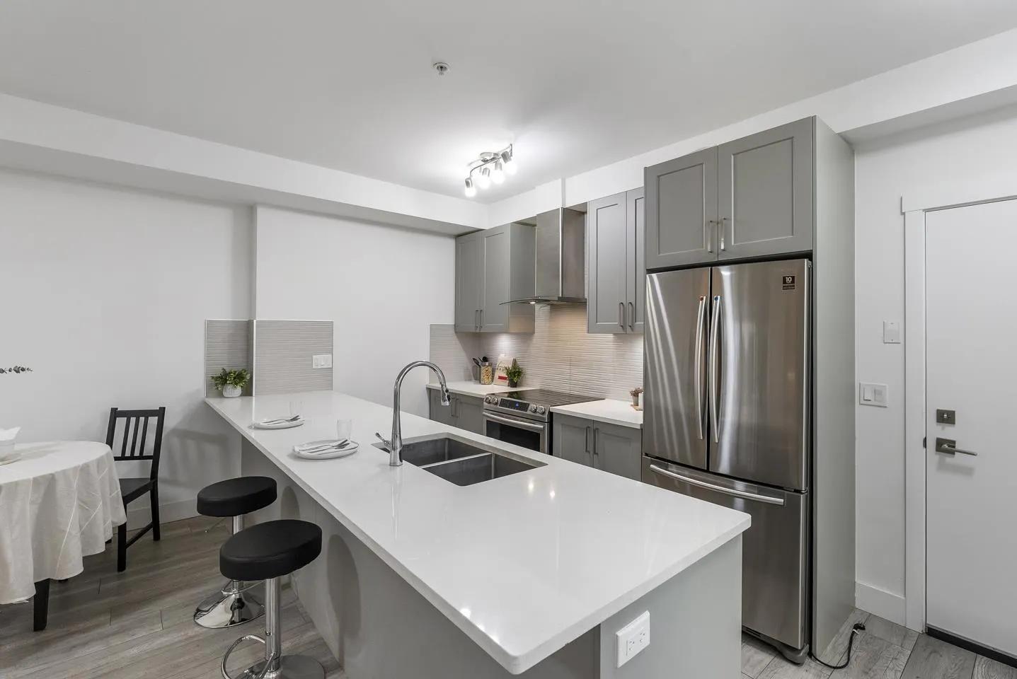 First-time home buyers and investors, don't miss this rare ground-floor 1 bedroom + den at Fraser Landmark! Enjoy ultimate privacy with no neighbours on either side, a separate entrance, a spacious bedroom, and a modern kitchen with quartz countertops and stainless steel appliances. Two patios offer extra living space for relaxing or entertaining, and two parking stalls add convenience. Just steps from the future SkyTrain and minutes to schools, shopping, and Surrey Memorial Hospital, this home delivers unmatched convenience and long-term investment potential. (id:27476)