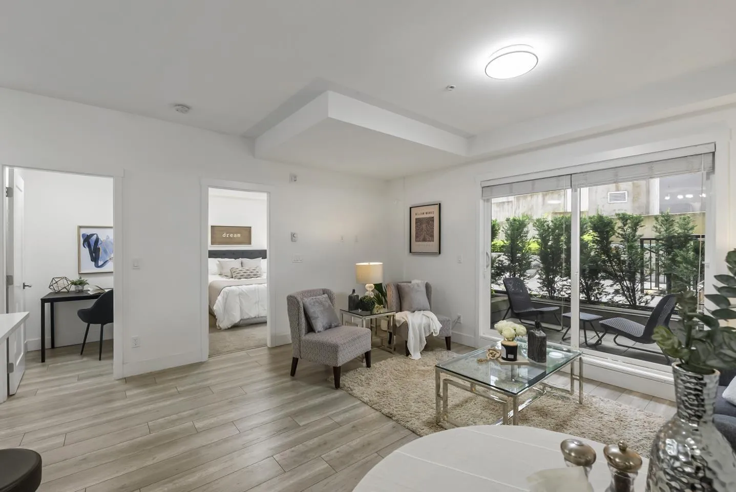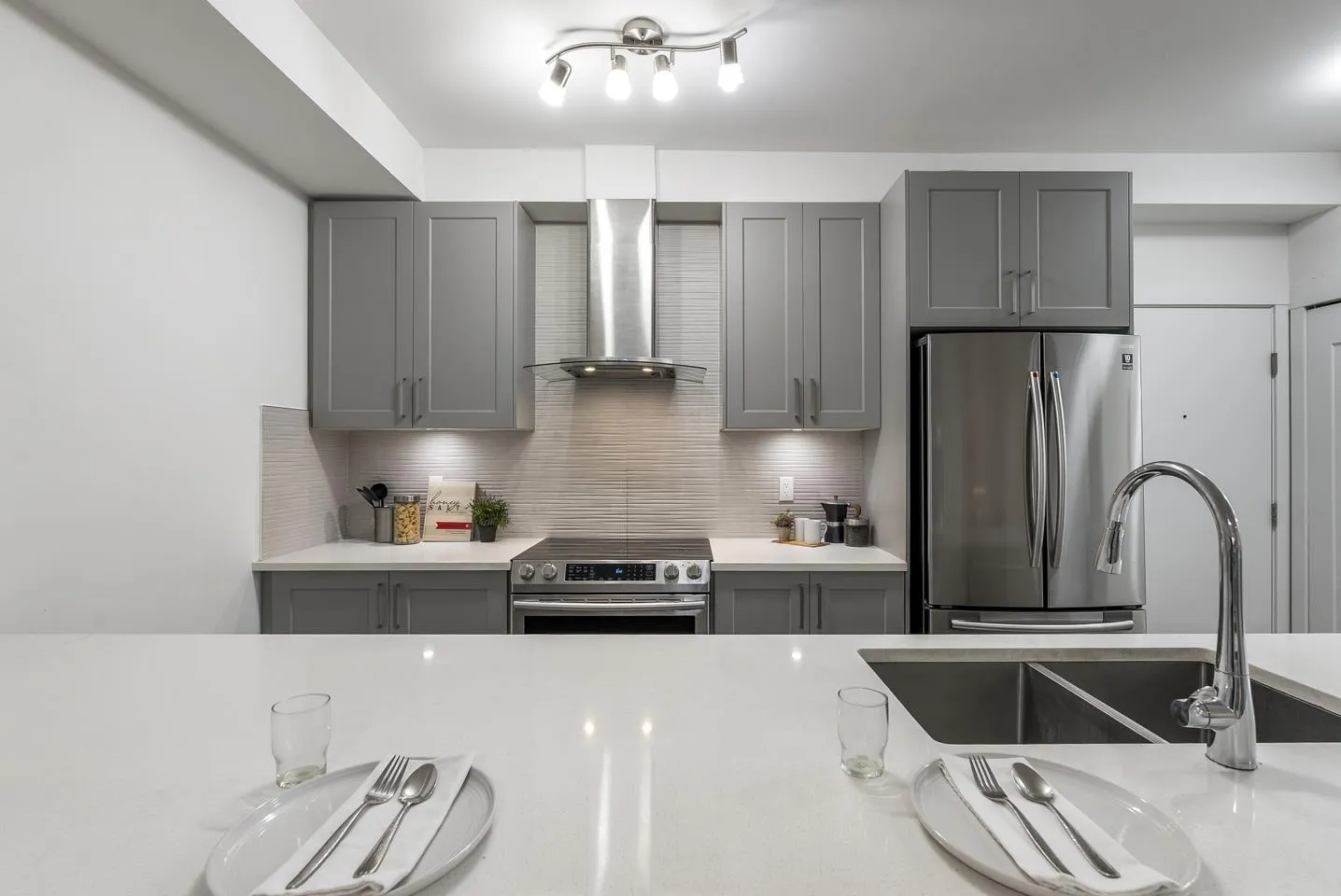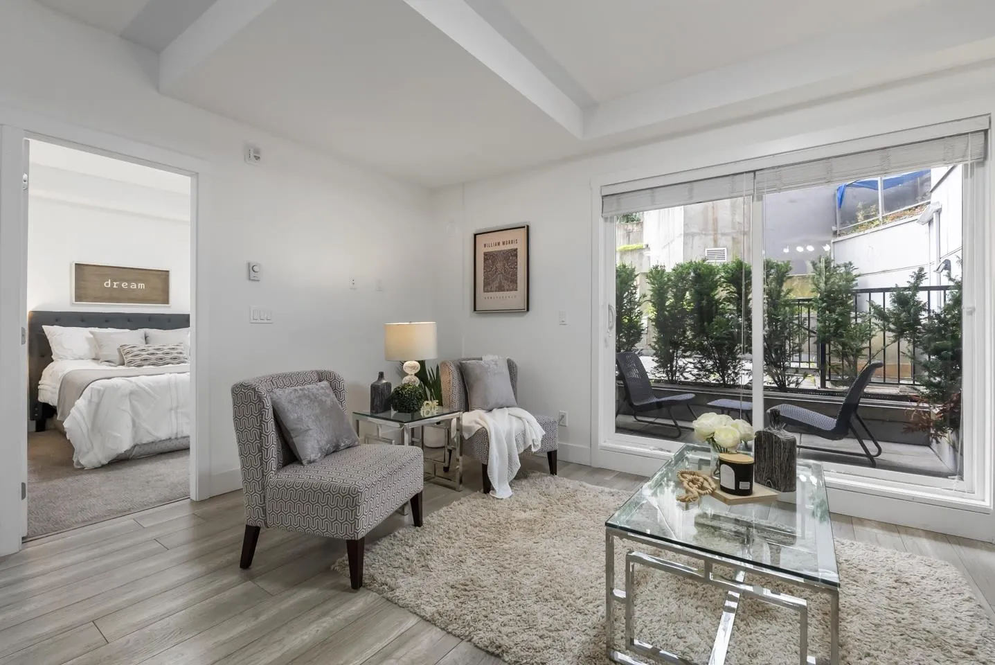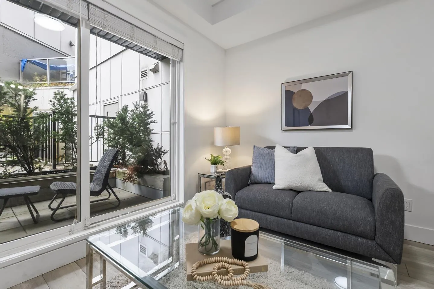 First-time home buyers and investors, don't miss this rare ground-floor 1 bedroom + den at Fraser Landmark! Enjoy ultimate privacy with no neighbours on either side, a separate entrance, a spacious bedroom, and a modern kitchen with quartz countertops and stainless steel appliances. Two patios offer extra living space for relaxing or entertaining, and two parking stalls add convenience. Just steps from the future SkyTrain and minutes to schools, shopping, and Surrey Memorial Hospital, this home delivers unmatched convenience and long-term investment potential. (id:27476)