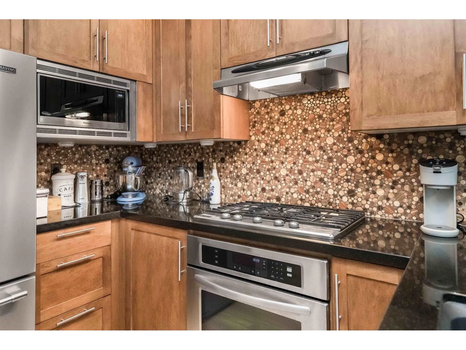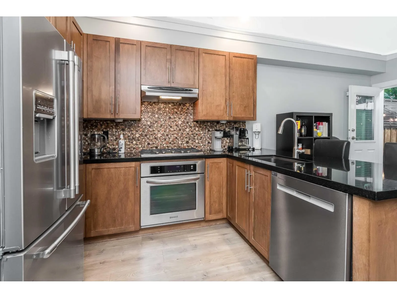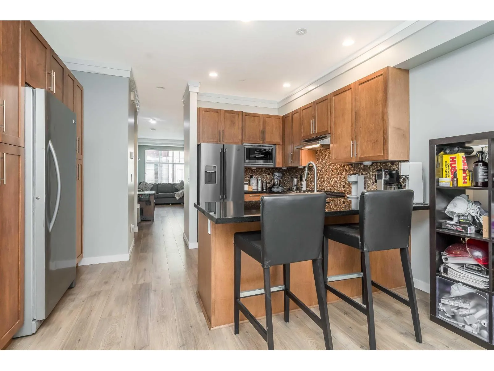 Welcome to KALLISTO! This 1,411sqft home offers 2 spacious bedrooms & 2 bathrooms. This home boasts numerous upgrades including; new vinyl plank, fresh carpet, new washer & dryer, new fridge, new dishwasher, fresh paint, new natural gas furnace, & new hot water tank. Enjoy high-end finishes throughout, including granite countertops, stainless steel appliances, custom cabinetry, crown mouldings, built-in vacuum, and EV charger. Step outside to your south-facing fenced yard with a gas BBQ hook-up complete with premium artificial turf for easy maintenance. Centrally located, just steps from Morgan Crossing shopping, Sunnyside Elementary, Southridge Private School, & numerous parks and walking trails nearby. Don't miss out on this one! (id:27476)