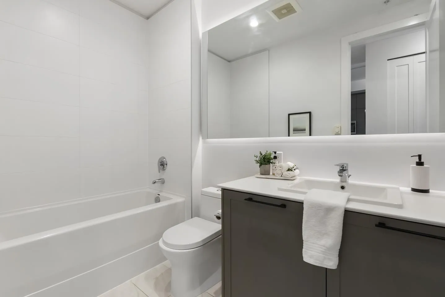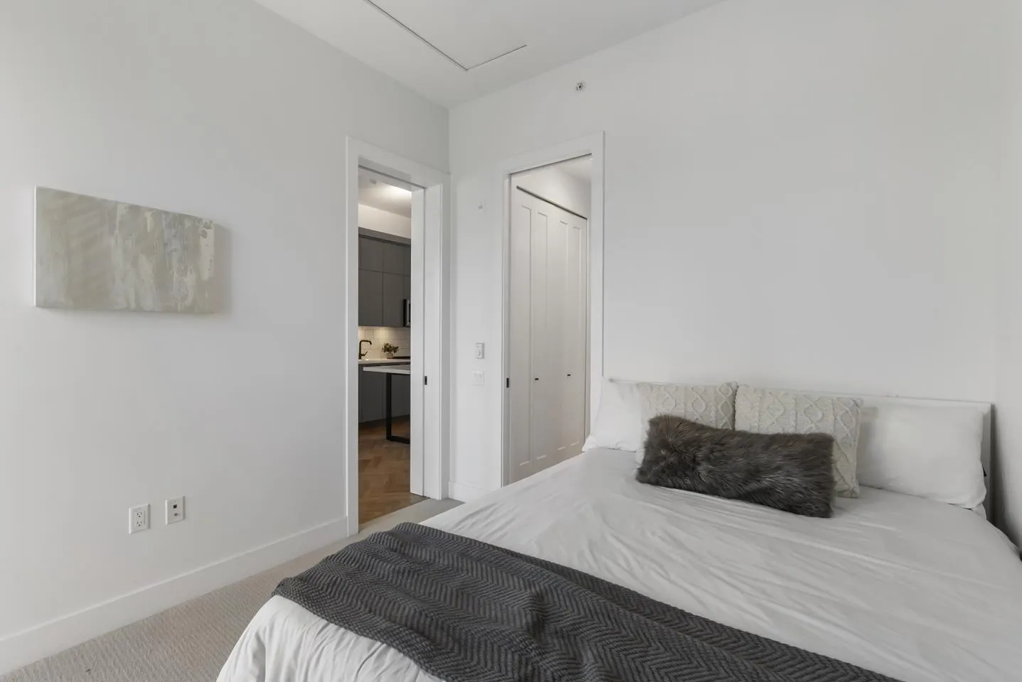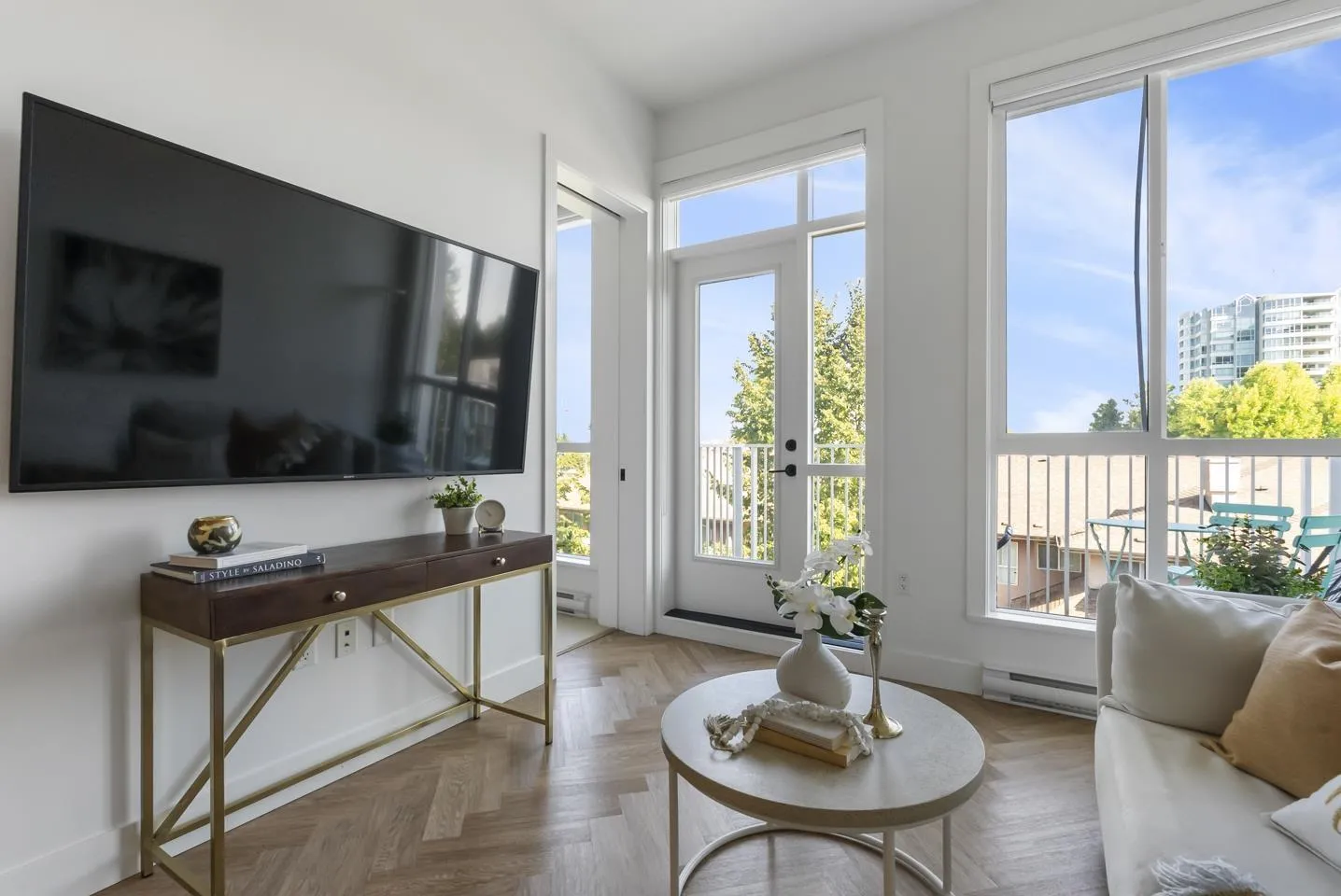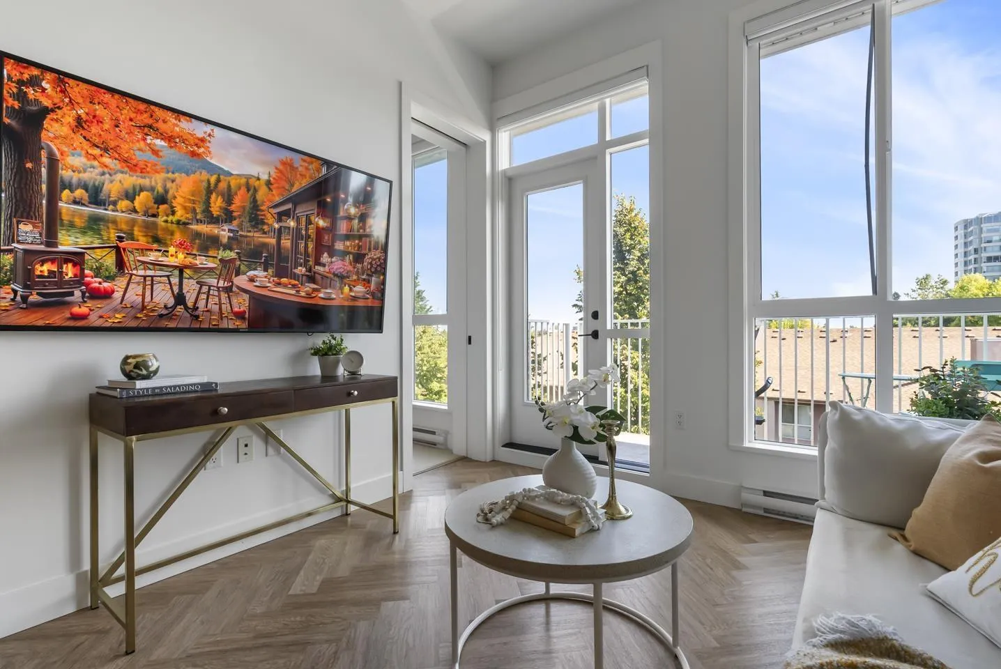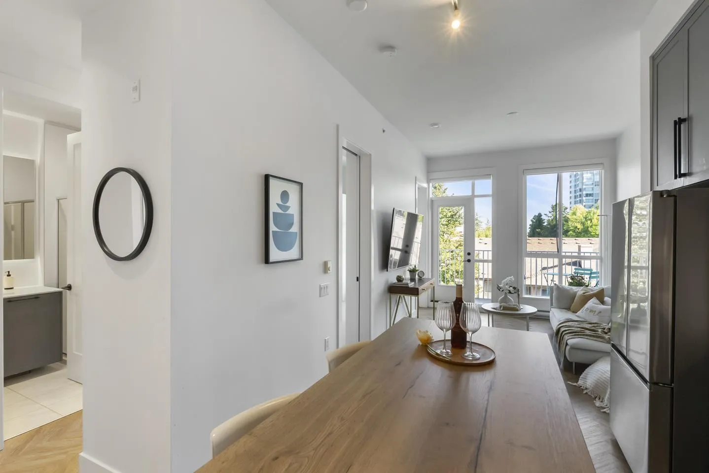 Welcome to Guildhouse by Mosaic! This bright and stylish top-floor home offers 567 sq. ft. of thoughtfully designed living. Meticulously cared for, the space feels like new with tasteful updates and attention to detail. The open layout is enhanced by soaring ceilings, oversized windows, and premium herringbone flooring that adds a touch of elegance. The kitchen features modern cabinetry, stainless steel appliances, and plenty of counter space, while the bedroom is spacious and private. Situated on the quiet side of the building, this home is a peaceful retreat yet steps from Guildford Town Centre, transit, dining, and everyday conveniences. A rare opportunity to own a top-floor residence that blends comfort, style, and unbeatable location in the heart of Guildford. (id:27476)