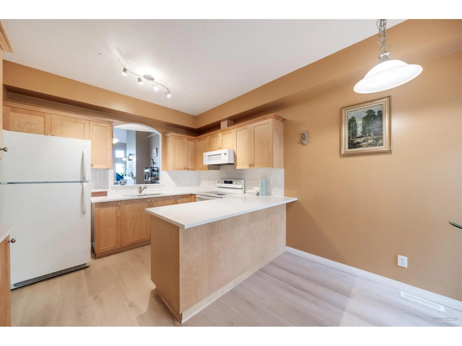 Amazing View at Cypress Ridge! Welcome to this spacious corner unit townhouse in highly desirable Royal Heights, offering over 2,693 sq.ft. of updated living space across 3 levels. With 3 bedrooms + 3 bathrooms, this home is perfect for families seeking comfort, style, and flexibility.Recent updates include laminate flooring, new kitchen cabinets & countertops, a new washer, plus 2023 roof and leaf-guard gutters. Enjoy vaulted ceilings, abundant natural light, and a balcony with breathtaking North Shore views.The main floor features a large primary bedroom with ensuite and walk-in closet, a bright living/dining space, and an updated kitchen with an eating area. Upstairs, you'll find two generous bedrooms, an open den, a full bathroom, and a sunny deck.The ground-level basement (with separate entrance) boasts a massive open space-ideal as a 4th bedroom, gym, media room.Double car garage with direct access to the main level Private backyard. (id:27476)