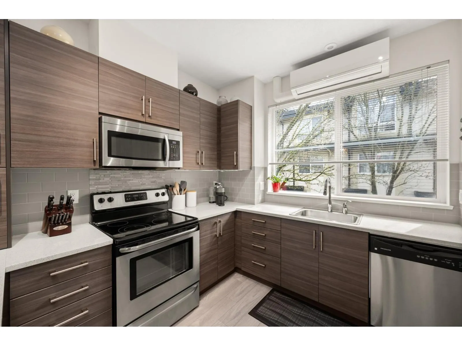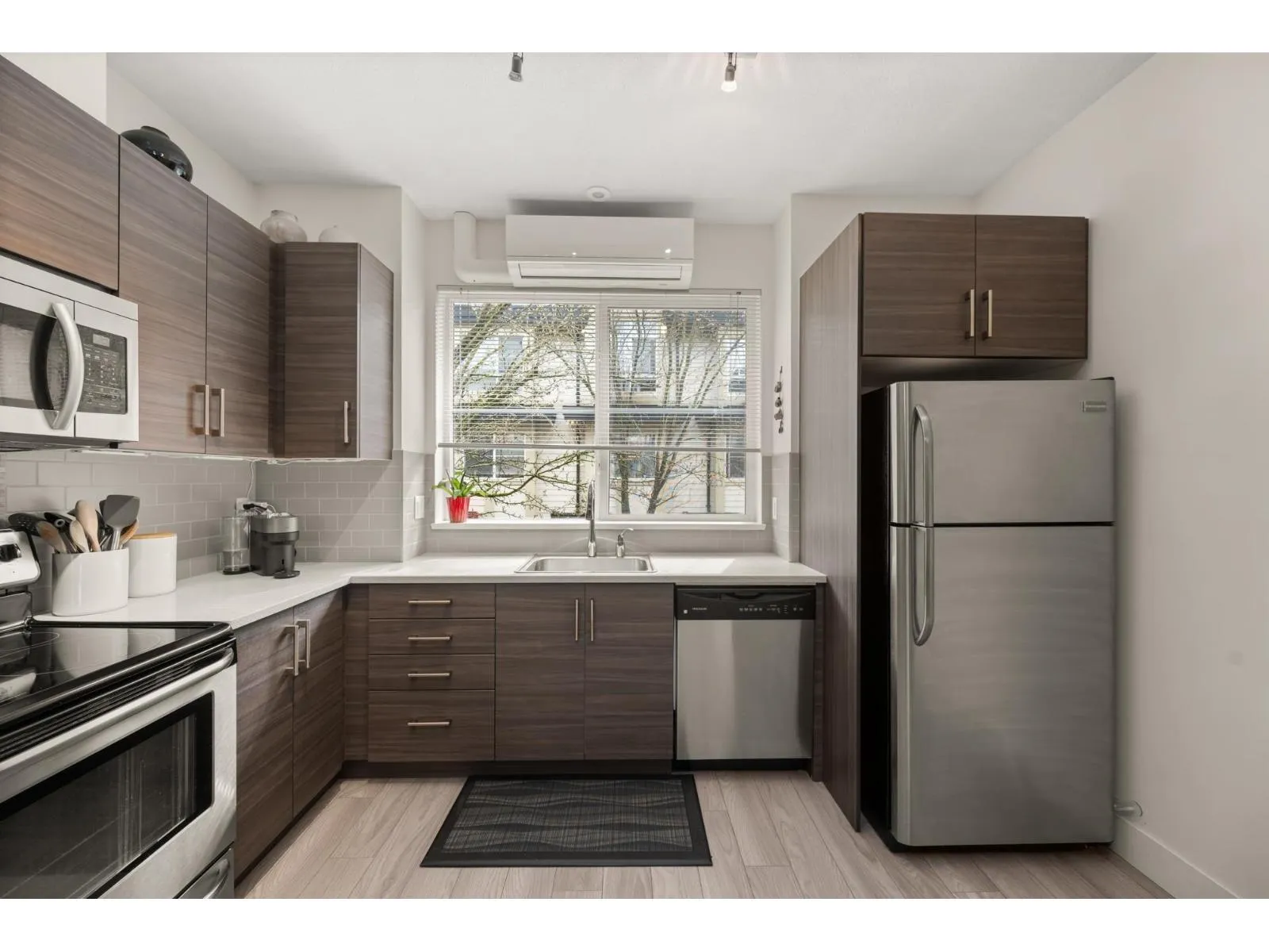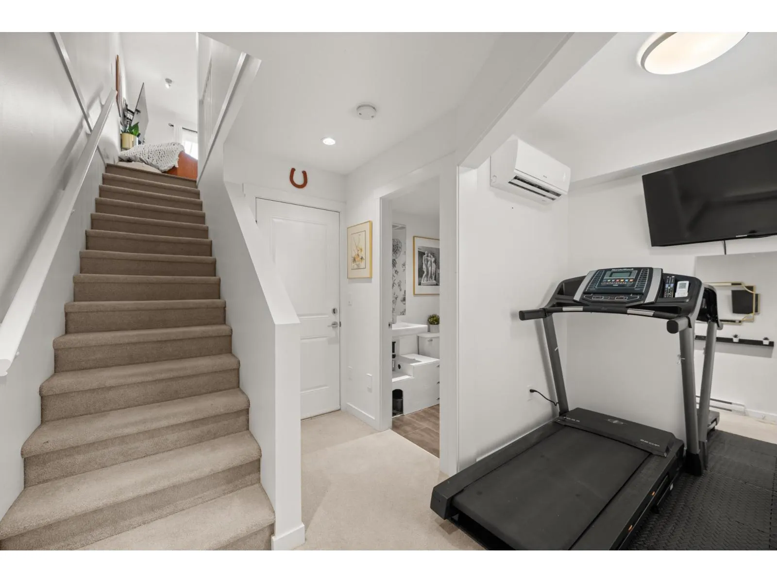 **OPEN HOUSE SUNDAY 2 - 4PM** Beautiful 2 Bed + Den townhome with full driveway & brand new A/C! Ground-level entry features a den/home office (could be a small 3rd bedroom), 2-pc bath & garage access. Main floor is bright and open with laminate floors, stainless steel appliances, spacious kitchen, and deck with NW exposure at the end of the complex. Upstairs offers 2 large bedrooms, large ensuite with double sinks, custom built-ins in the primary, and laundry. Enjoy the fenced yard with turf, perfect for pets or kids. Bonus: park your work truck in the full driveway! Well-maintained development in a great location. (id:27476)