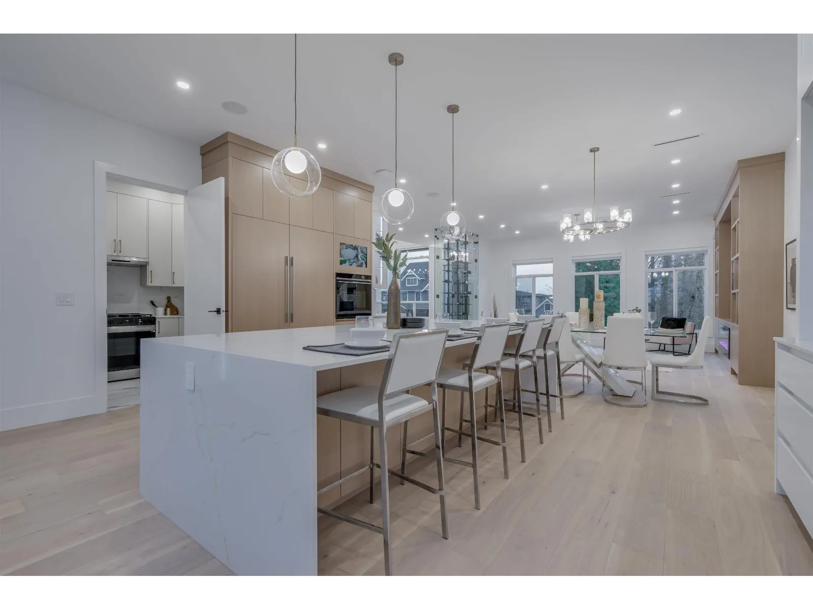 Welcome to this brand-new luxury home in the heart of South Surrey! This stunning residence is designed with sophistication and comfort in mind, featuring large windows that bathe the interiors in natural light and showcase the high-end finishes throughout. The main floor offers a spacious bedroom with a private ensuite-perfect for guests, alongside a chef-inspired kitchen & a wok kitchen, both equipped with premium appliances to elevate your culinary experience. Upstairs, retreat to the opulent master bedroom complete with a luxe ensuite & walk-in closet. The top floor also includes 3 additional spacious bedrooms & 2 washrooms. With a 2-bedroom legal suite perfect for rental income & Media room & powder room for upstairs. Located near top rated schools, shopping & Dining. Don't miss it. (id:27476)