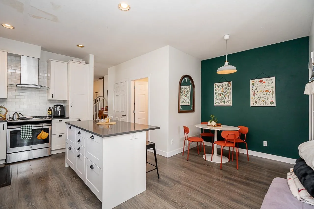 West Cloverdale 3-level, 2,516 sq.ft. half duplex on a large corner lot! This home offers an incredible blend of modern design and functional living space. Featuring 3 bedrooms, 4 bathrooms, and lovely finishes throughout, it's the perfect family home! Updated wide-plank flooring that flows seamlessly throughout the main living areas. The open-concept floor plan is flooded with natural light and ideal for both family gatherings and entertaining with an updated kitchen with white shaker cabinetry and new countertops. The large rec room in the basement includes a wet bar, wine fridge and sink plus separate entrance offering suite potential for added flexibility. Bonus 3 private parking stalls and additional street parking and walking distance to schools, parks, coffee shop and bus route. (id:27476)