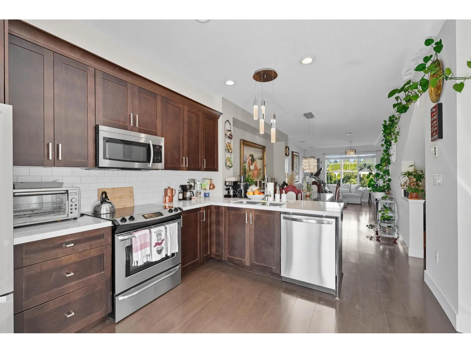 Welcome to this lovely 4 bed 3 bath unit townhome offering a fully functional living space! This warm and cozy abode features elegant light fixtures, organizers in closets and accent wall colours. The main floor boasts its bright open floor plan with 9 ft ceiling & rich laminate flooring. It also boasts its gourmet kitchen with S/S appliances, quartz countertops & under mount sink, a separate dining area & living room. Upstairs offers an oversized master bedroom with its ensuite and 2 other spacious bedrooms. The lower floor has a 4th bedroom with a full bathroom that is perfect for guests or in laws. Unit comes with 2 parking space and tons of storage space. Ideally located - close to shops, restaurants, schools and has easy access to highway. This is a gem not to be missed! (id:27476)