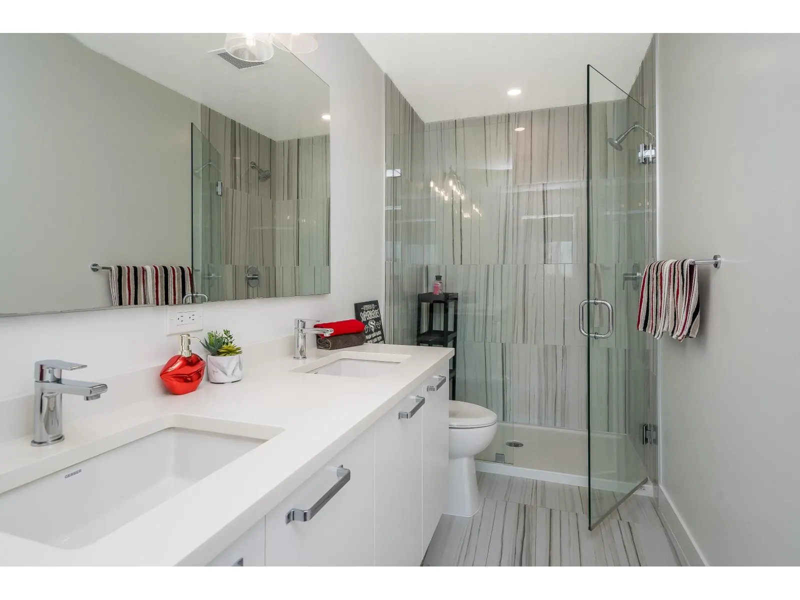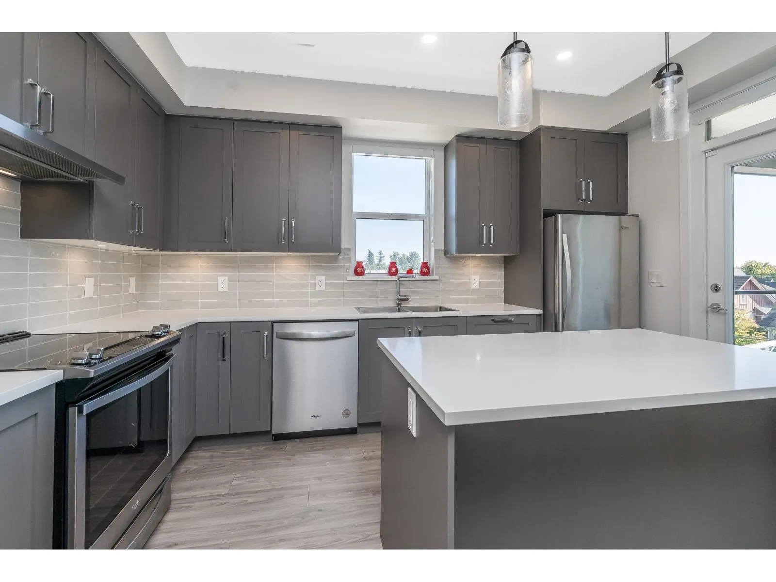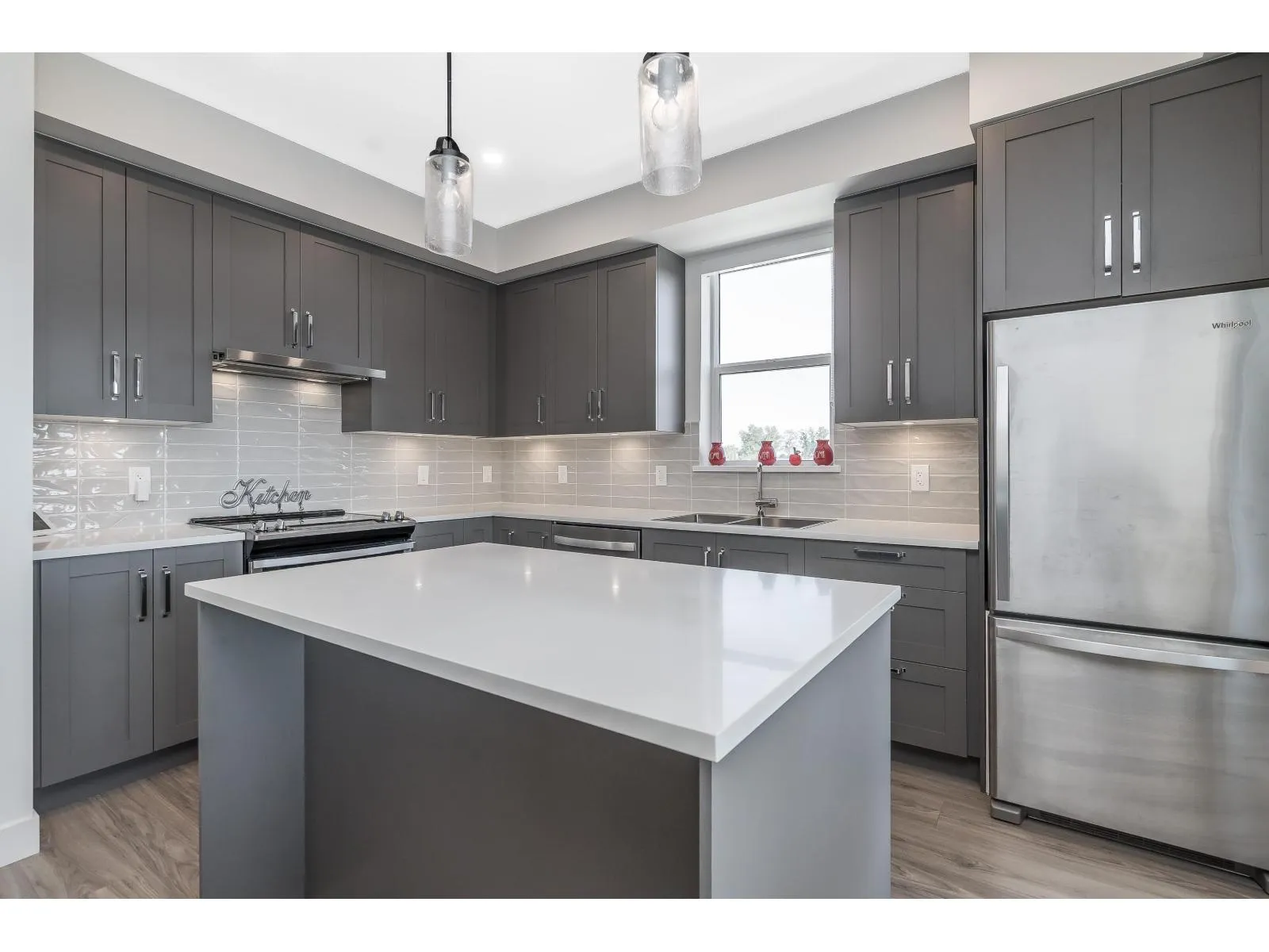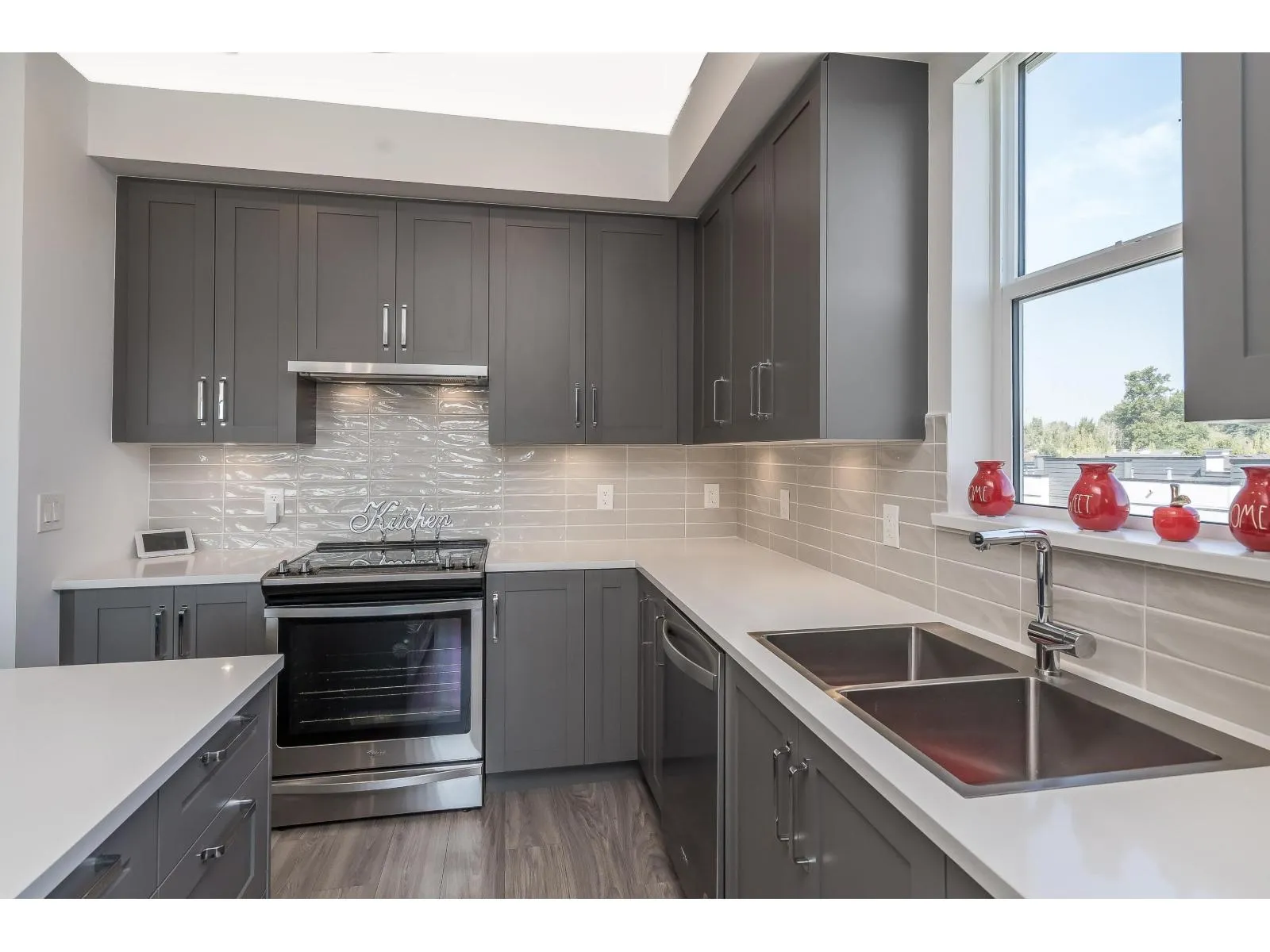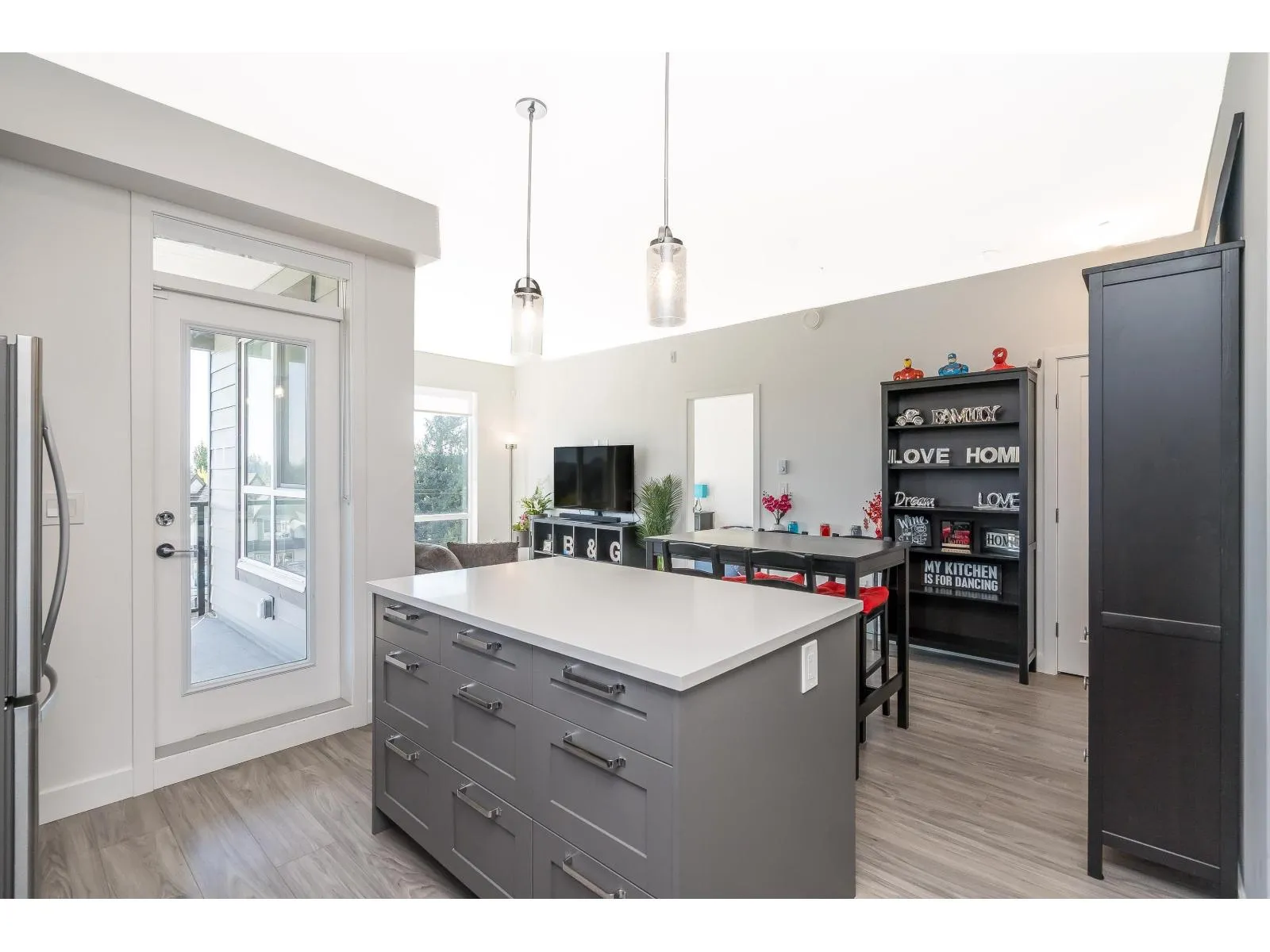 Incredible value in a great neighbourhood of Clayton! Spacious 3 bedroom 2 full bathroom, 975sf CORNER unit! Bright & open floorplan, windows on 2 sides. Southeast facing home. Primary bedroom w/ big walk in closet and 4 piece ensuite - 2 basins and huge shower. 2 more bedrooms and another full bathroom. Laundry. Kitchen w/ lots of cabinets and counterspace plus a large island overlooking the dining room and living rm w/ a door to your private covered deck. Close to shopping, transit, restaurants, future skytrain. Great schools and new community center. Amenities include club house, guest suite, billiards, gym. 2 parking spots - 34 & 35. Call today! (id:27476)