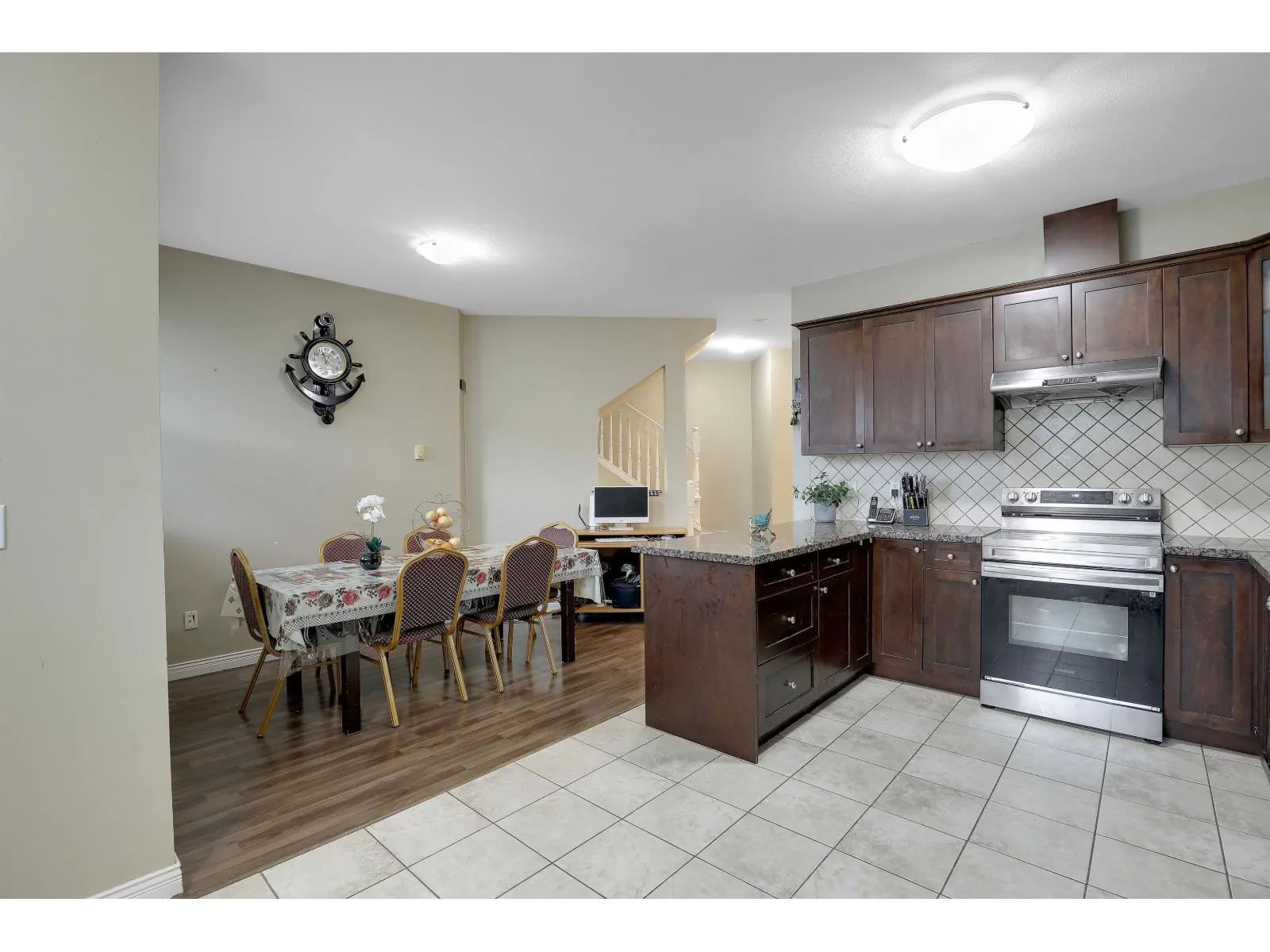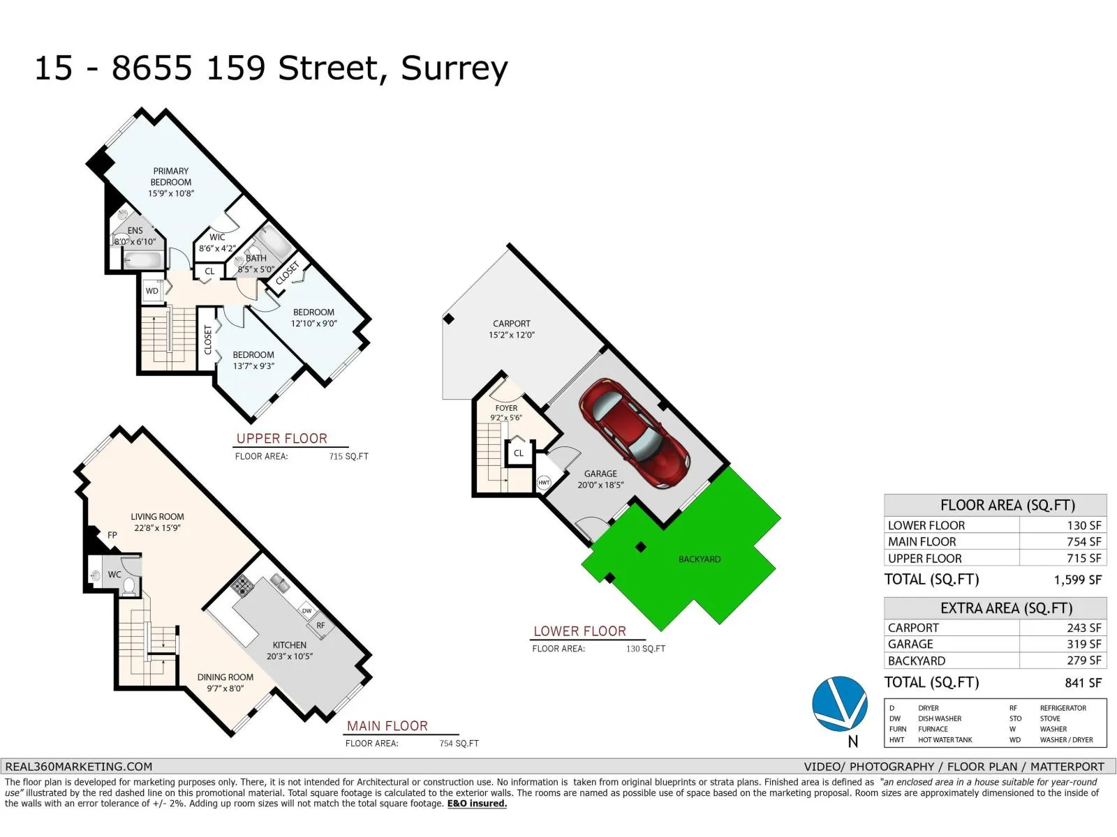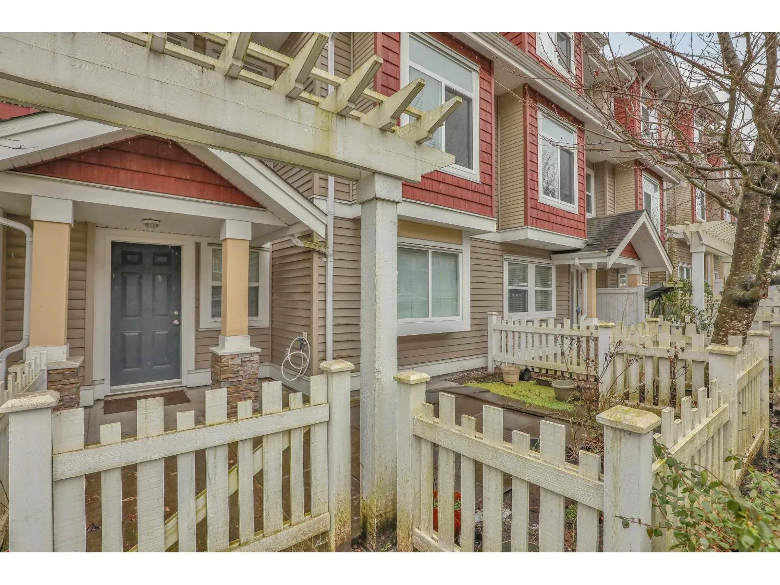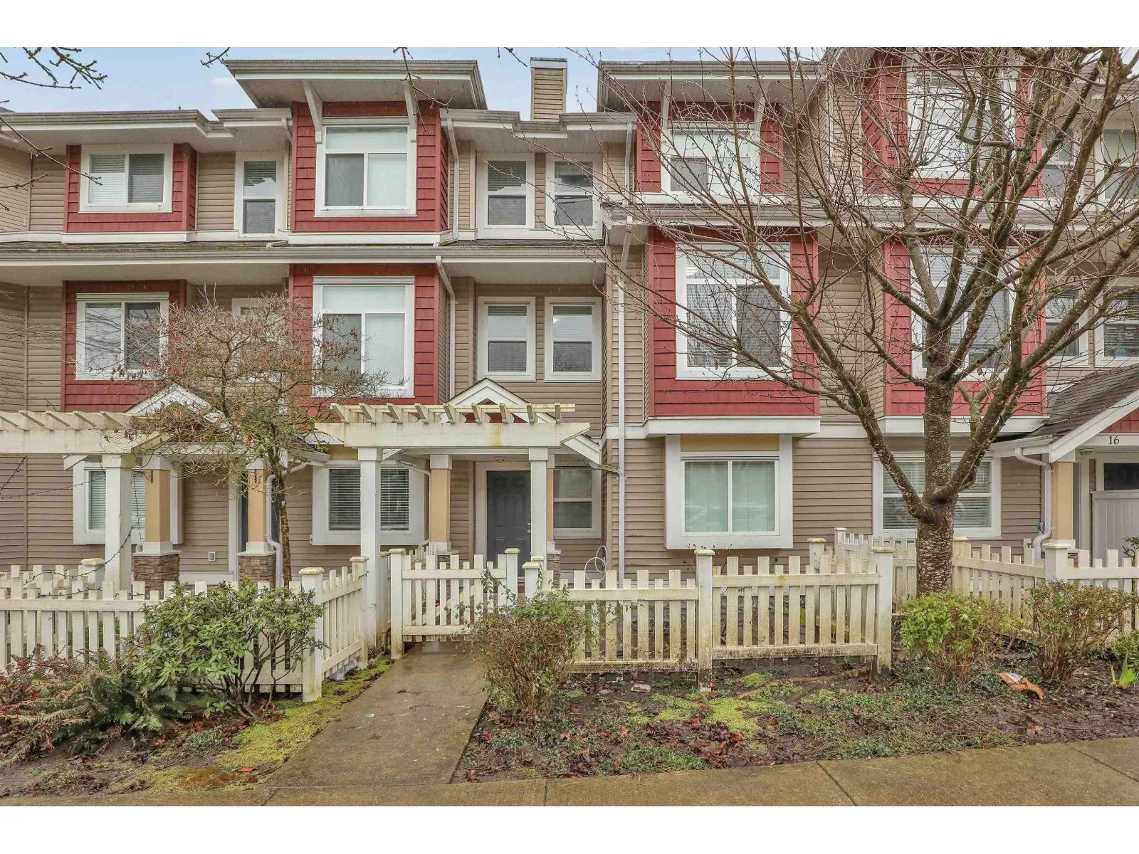 Walking distance from the future Langley route Skytrain Station at160 St & Fraser Hwy. Bright and well maintained unit with 2 entrances. Street level - Carport with entrance to the unit from the Complex, garage with space that could be converted to a bedroom or office with entrance leading to the private yard with gate to the street. Main level - Living room with window facing the complex driveway (no unit across), powder room, dining area, Kitchen/eating area. Above level- Big master bdrm with ensuite, 2 other bdrms, full bath and laundry closet. Lots of street parking, walking distance to Shopping, Transit, Schools and Recreation. Easy to view (id:27476)