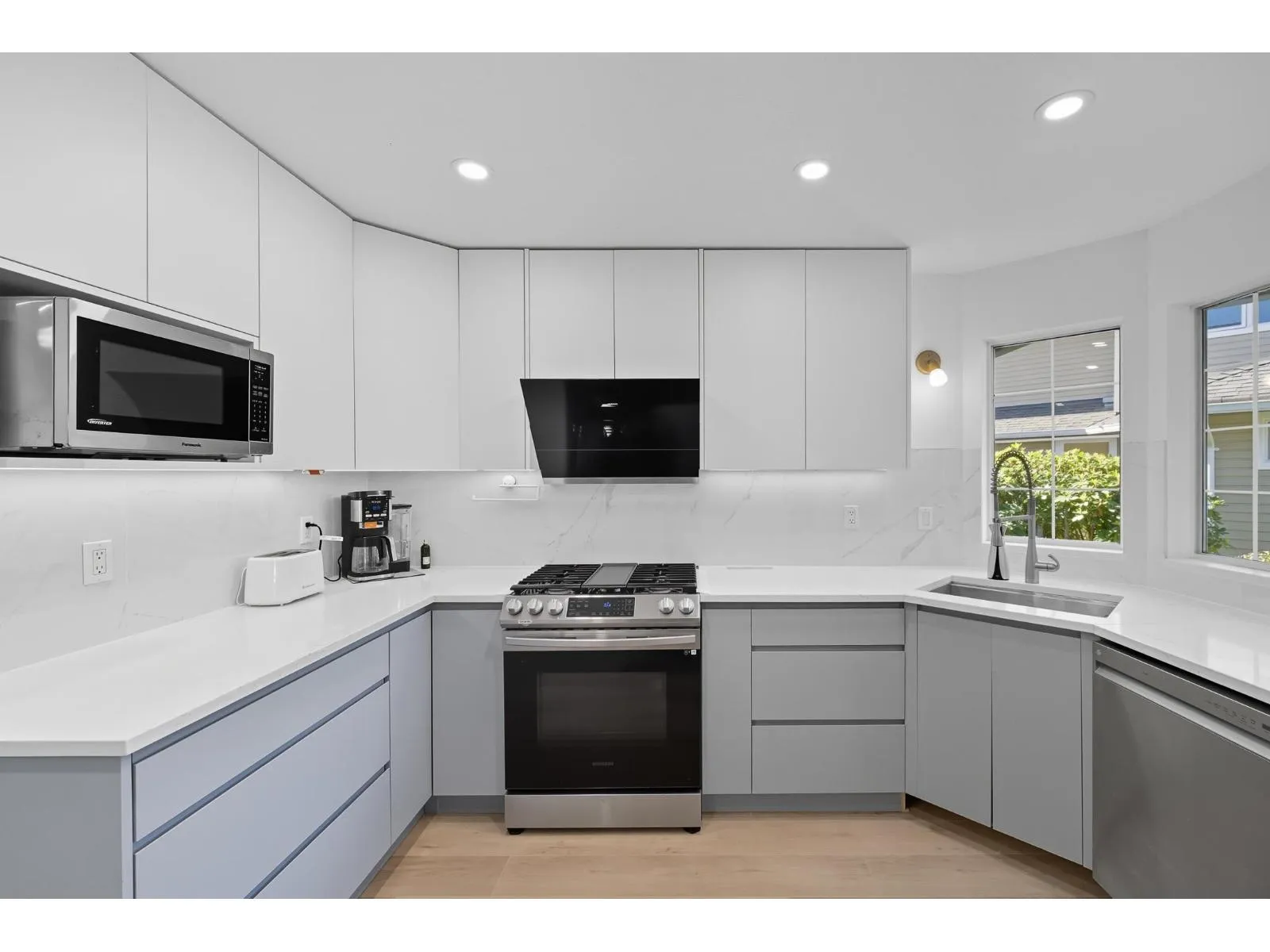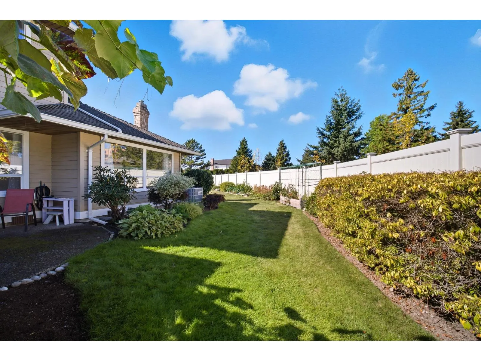 Spacious and beautifully maintained two-bedroom townhome/duplex in Orchard Park--a serene retreat just minutes from Uptown White Rock, the library, shops, and restaurants. The main level features soaring vaulted ceilings, a cozy gas fireplace. Upgraded gas stove, and newly updated tankless water heater, most importantly, heat pump with cooling air conditioner. Outside boasts a private setting and lovely patio. Beautifully manicured Oversized yard. New washer/dryer - Double car garage and visitor parking. Pets permitted with restrictions. NO AGE RESTRICTIONS! AND **Semiahmoo Secondary Catchment** (id:27476)
