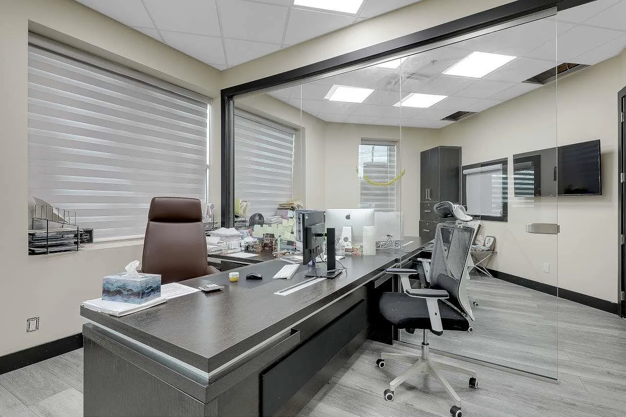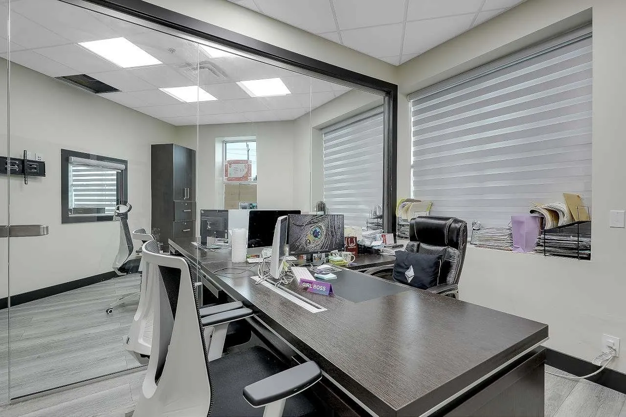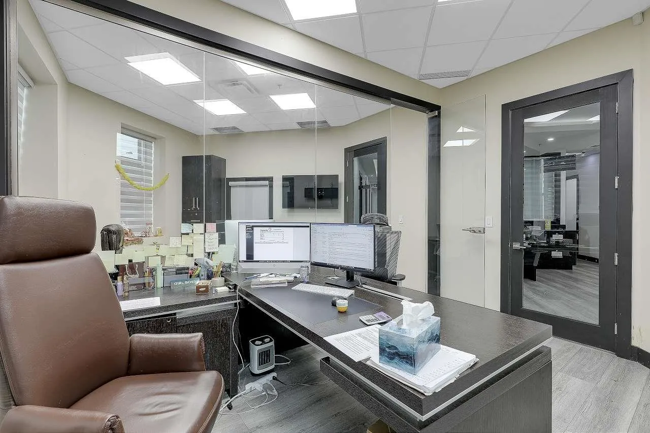 2,796 Sq.Ft Office Space in PAYAL BUSINESS CENTRE!? Prime corner unit with expansive windows flooding the space with natural light, creating a bright and welcoming environment. Excellent visibility and exposure for your business! The office features 11 private rooms, 2 washrooms, and a spacious boardroom, making it ideal for a variety of professional uses. Recently renovated and freshly painted, the unit showcases modern finishes, glass doors, and a sleek contemporary vibe. A perfect workspace for professional firms seeking a highly functional, move-in ready office in one of Surrey's most sought-after business centres. (id:27476)