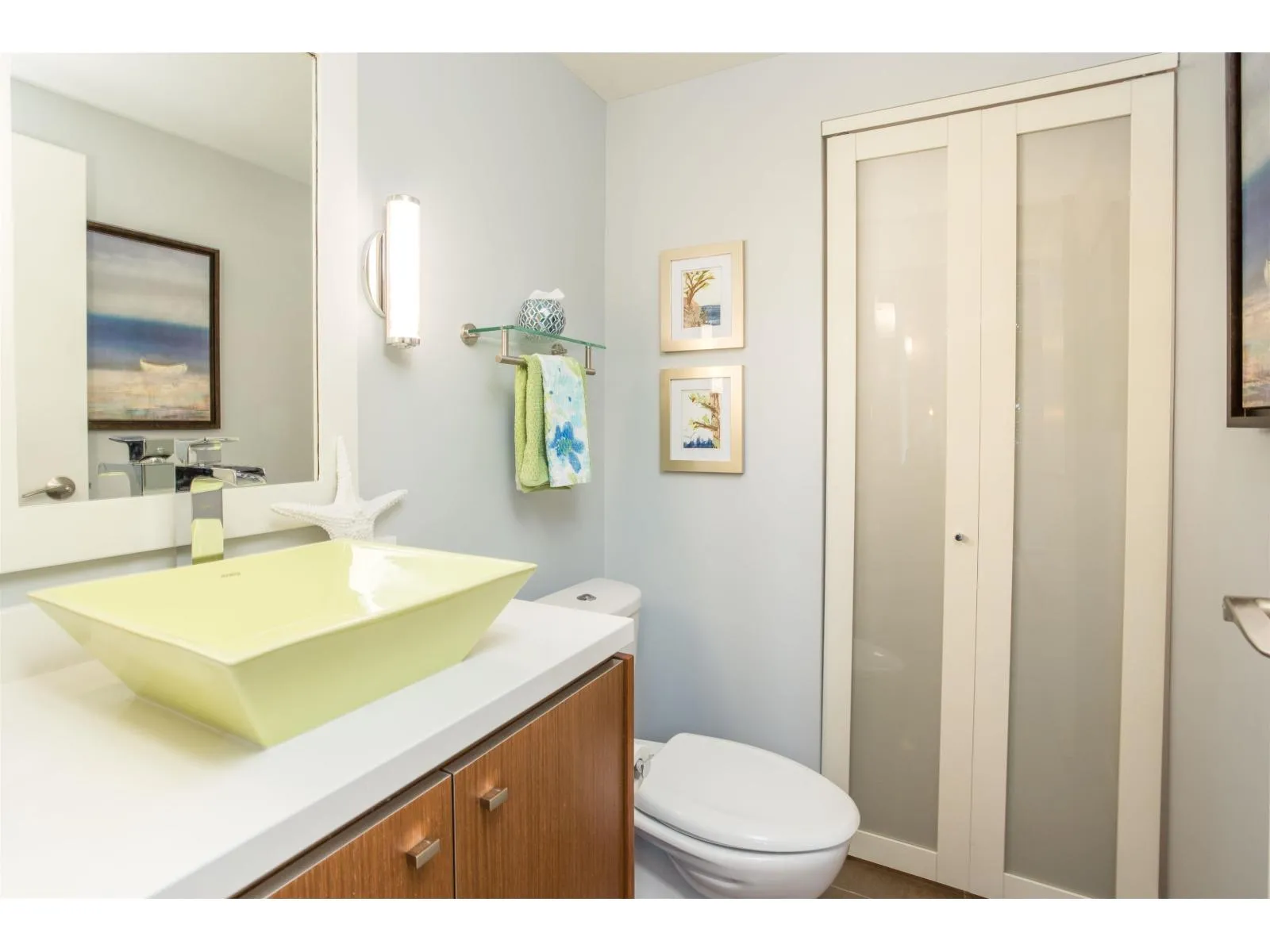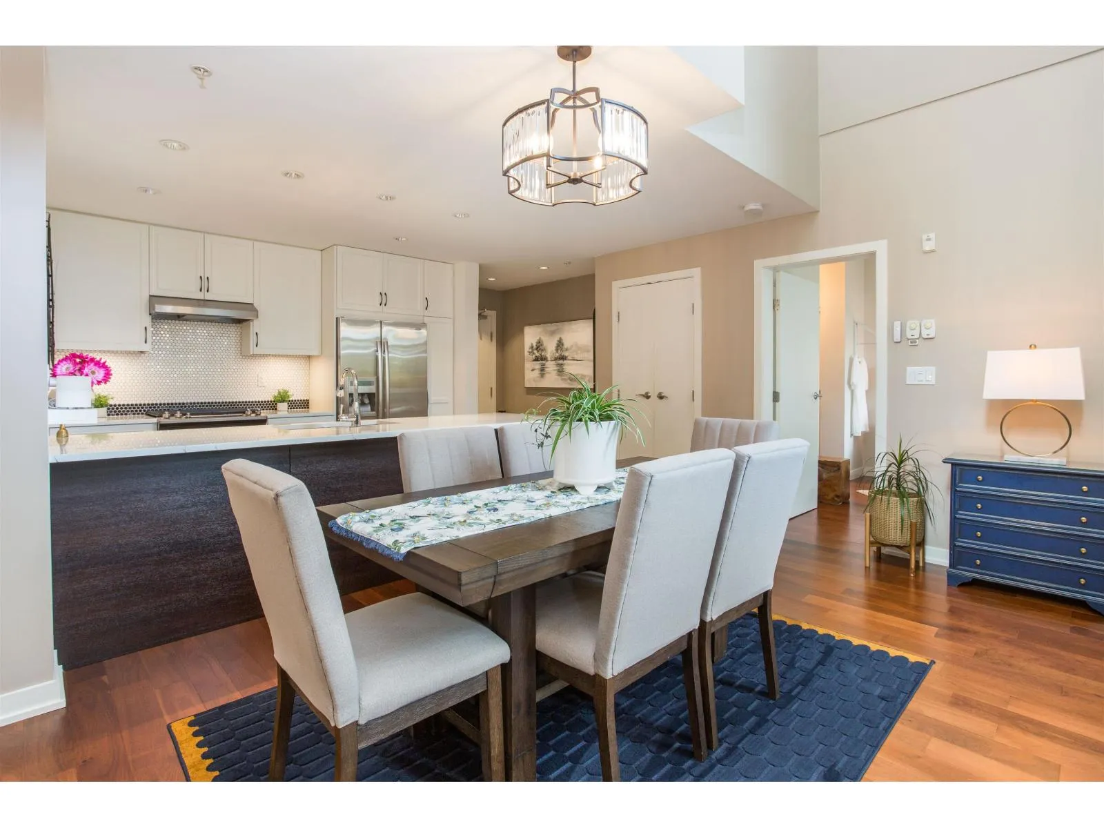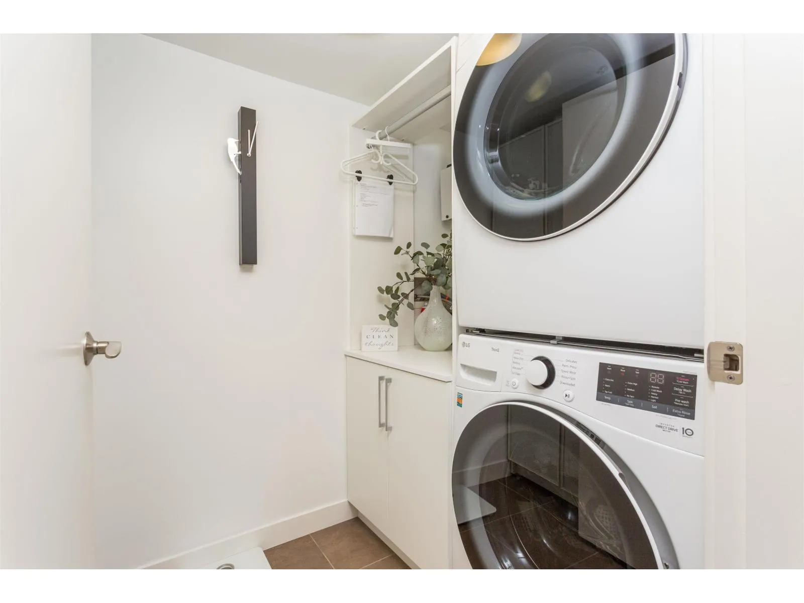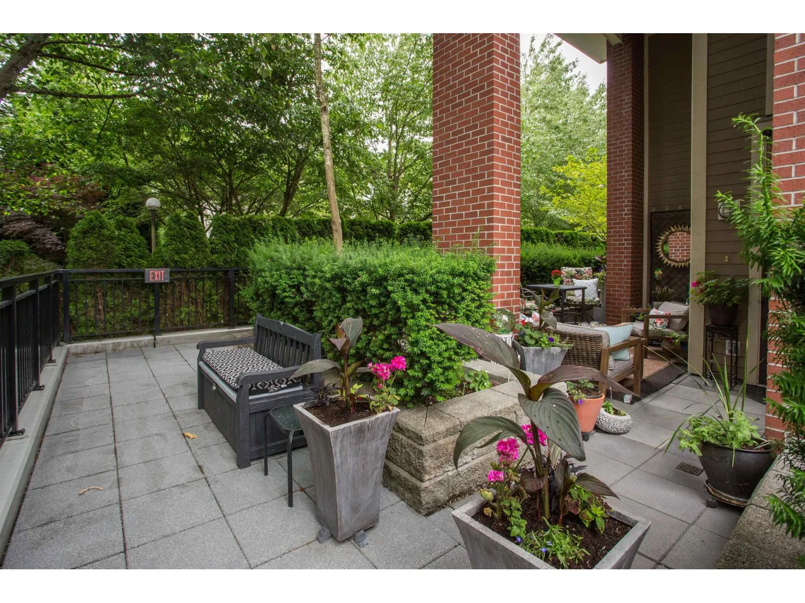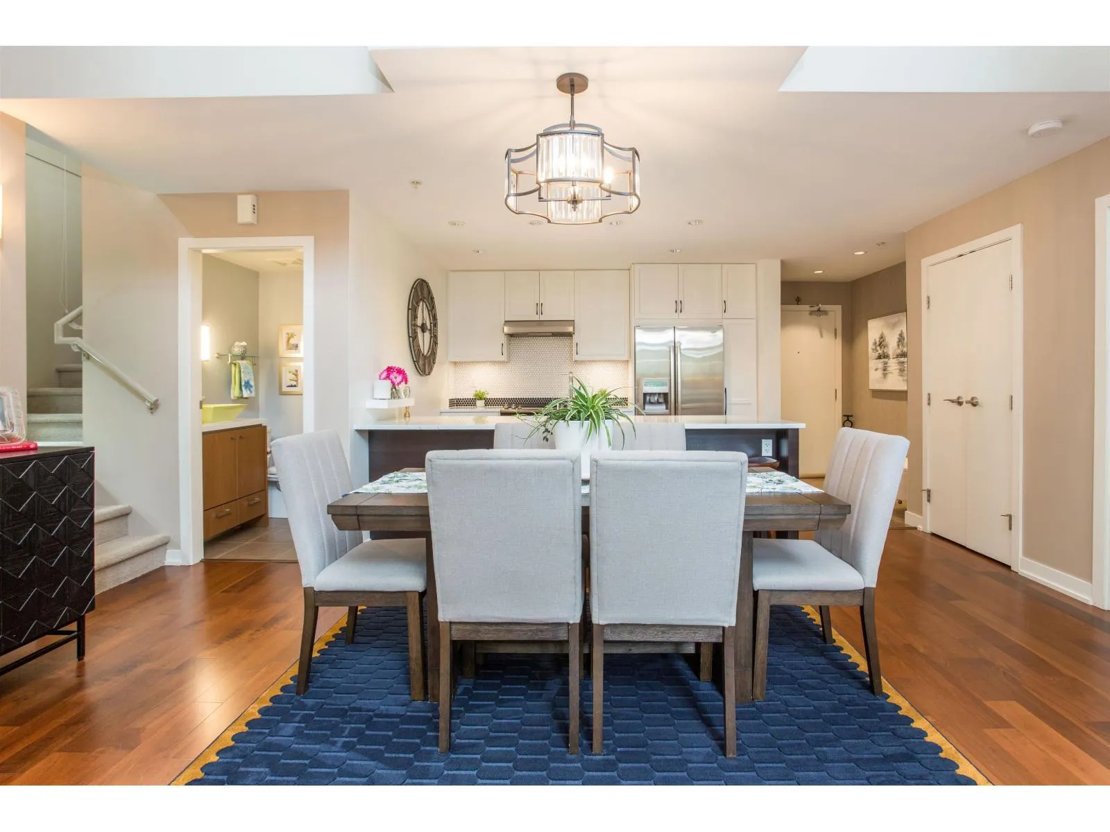 High Street loft condo! Rare 2 level MASTER on the MAIN end unit condo w/over 1400 sq ft. Spacious living room has beautiful 17 ft vaulted ceilings accented with floor to ceiling windows complete with custom motorized curtains. Large private covered PATIO. Bathrooms & kitchen tastefully RENOVATED w/quartz & granite counters. Entertainers kitchen w/ high end appliances,soft close custom cabinets,designer back splash & bar counter with extra seating +Large pantry! Upstairs has 1 bedroom and bath, as well as large open LOFT that could be used as a family rm, spacious office,or Den. Excellent location away from King George on private side of building w/ shopping,coffee shop,grocery store,restaurants,transit all under 5 min walk. 2 parking stalls, 1 storage locker. (id:27476)