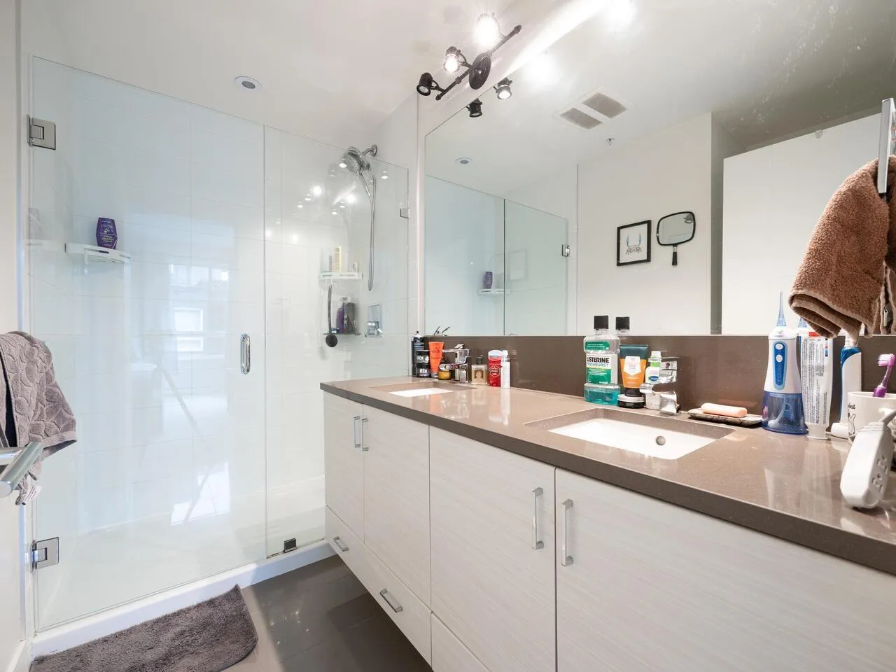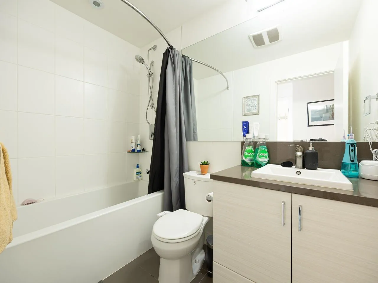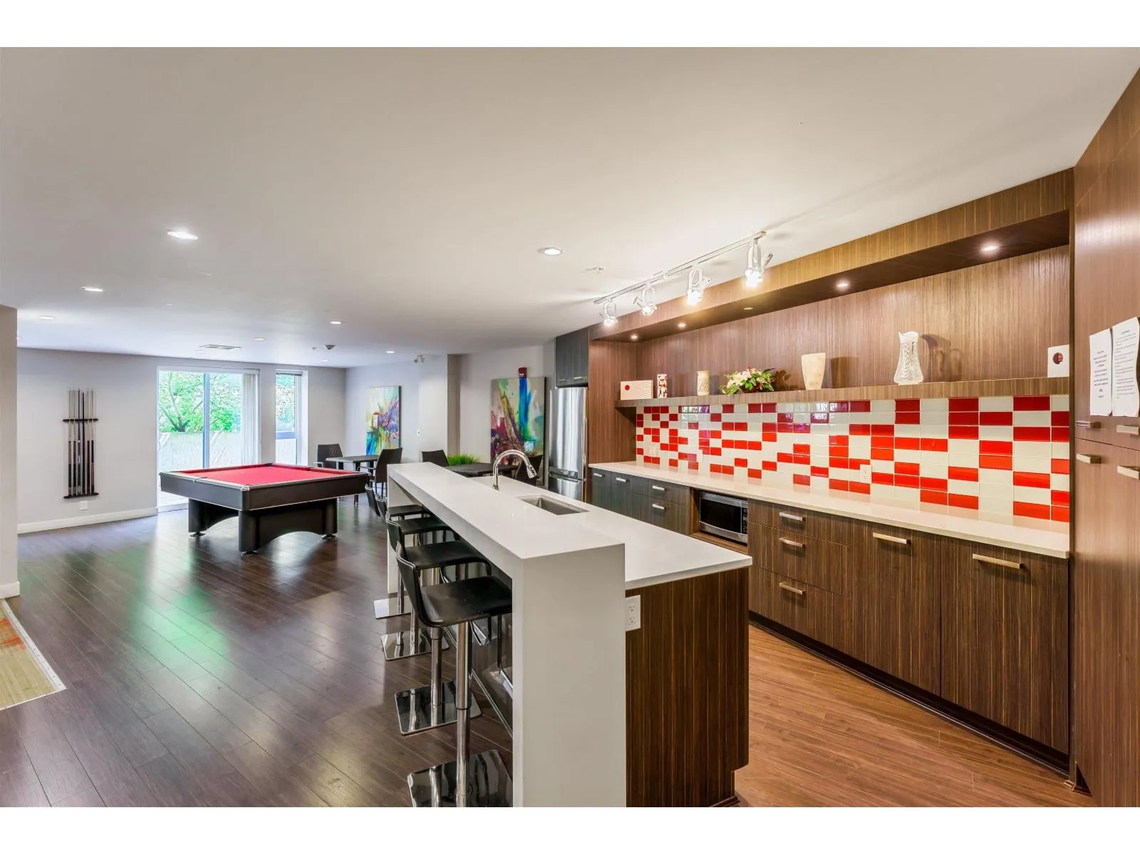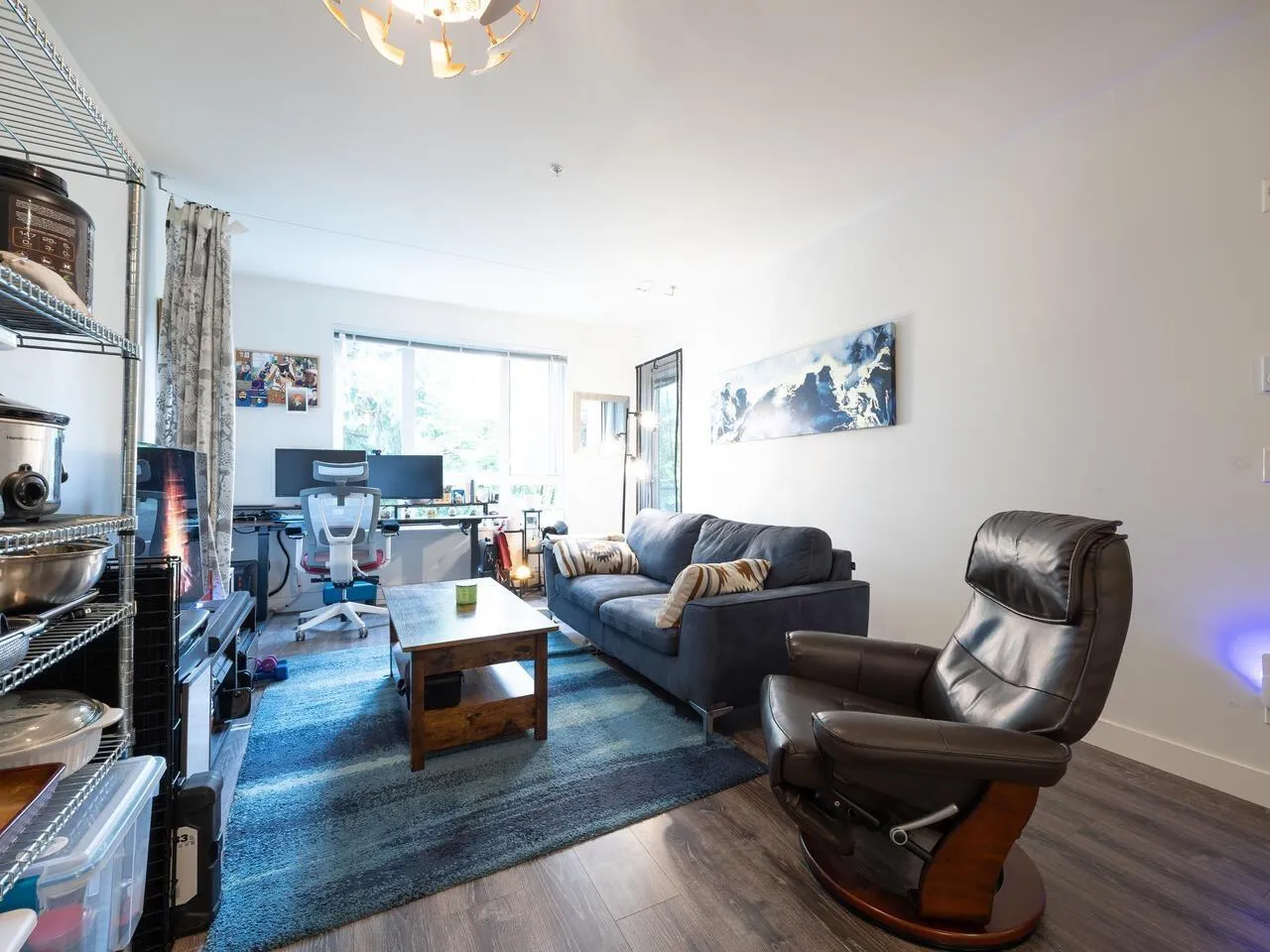 Welcome to Verve - a perfect blend of location and lifestyle! Just steps to King George SkyTrain, SFU Campus, Surrey Memorial Hospital, and Central City shopping, this 2 bed, 2 bath corner condo offers both convenience and comfort. Inside, enjoy a bright and spacious layout with upgraded vinyl flooring, a chef's kitchen with quartz countertops, stainless steel appliances, and a large breakfast bar. The primary bedroom features double sinks and an oversized shower, while second full bath and in-suite laundry add everyday ease. Relax on your quiet patio overlooking a treed setting, away from Fraser Hwy traffic. Building perks include a full gym, yoga room, social lounge, billiards, guest suite, storage, and tandem parking. (id:27476)