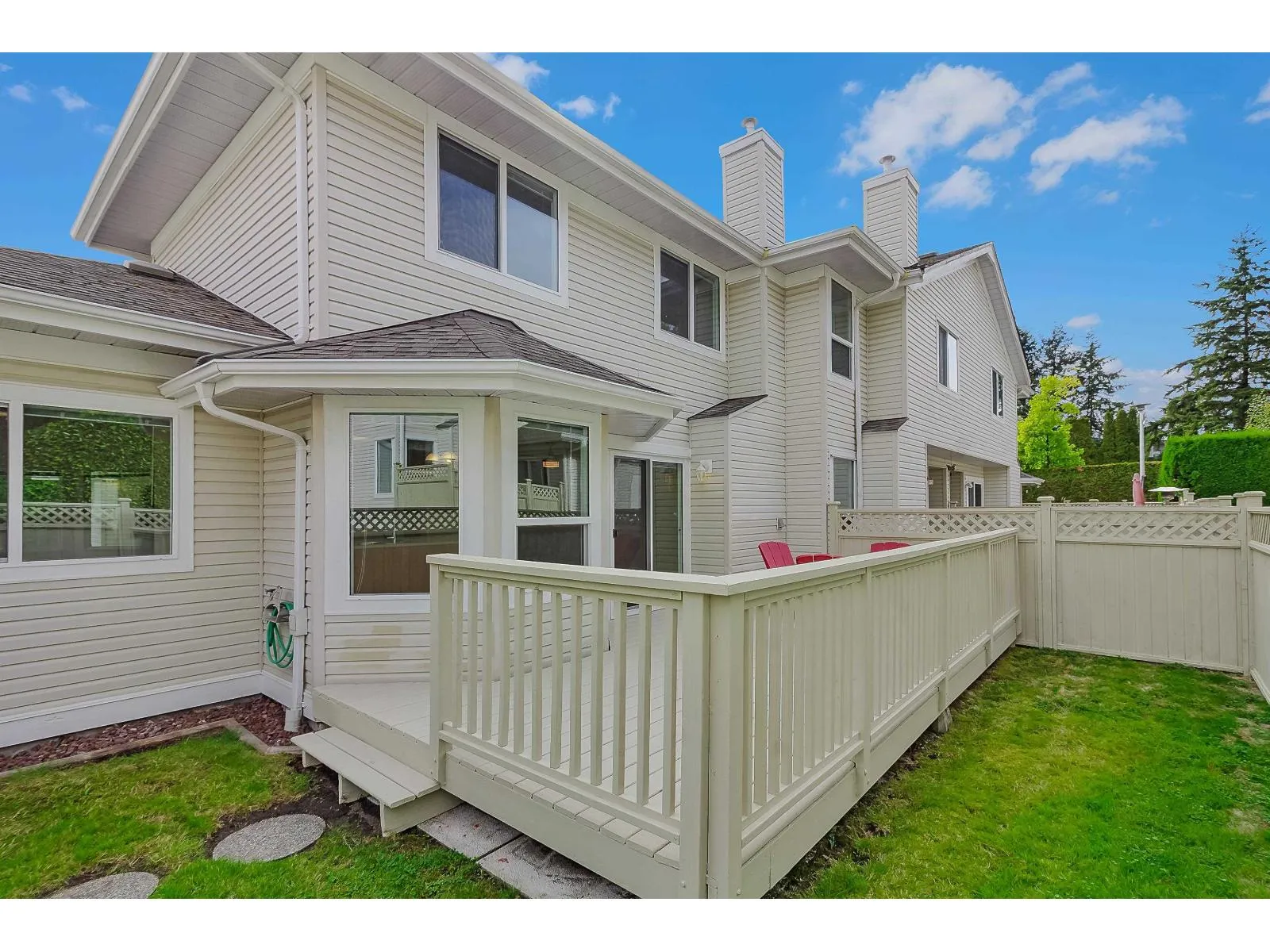 This 2 storey 3-bedroom, 3-bath end unit is one of the largest homes in the complex and offers a thoughtfully designed layout perfect for comfortable family living. It features vaulted ceilings in the living room, skylights that fill the space with natural light, and two cozy gas fireplaces. The spacious family room adds extra living space, while the large master suite boasts a luxurious ensuite with a soaker tub and separate shower. Additional highlights include a private fenced yard, double garage, and a built-in security system. With its exceptional features and generous layout, this home is a rare find. (id:27476)
