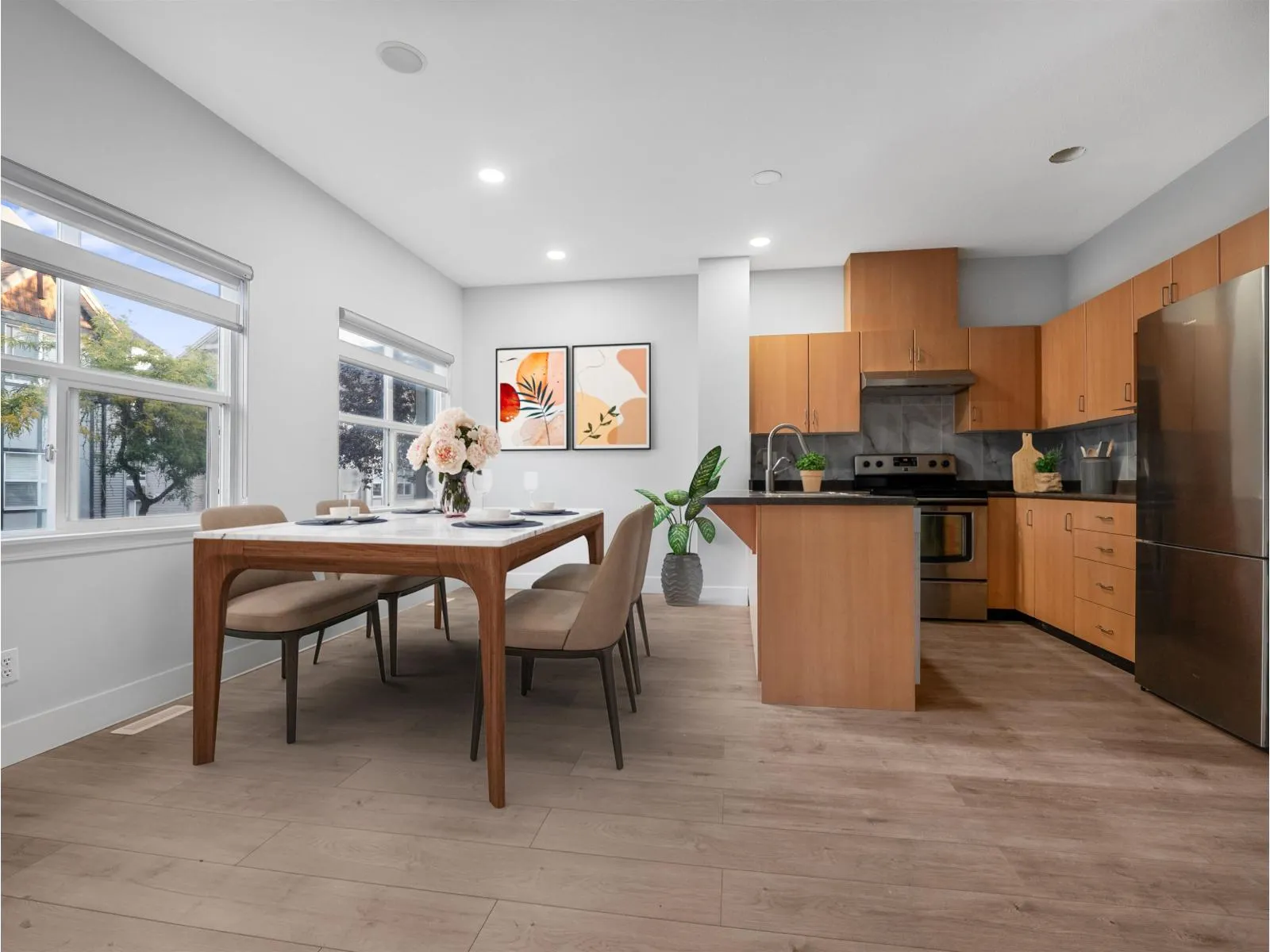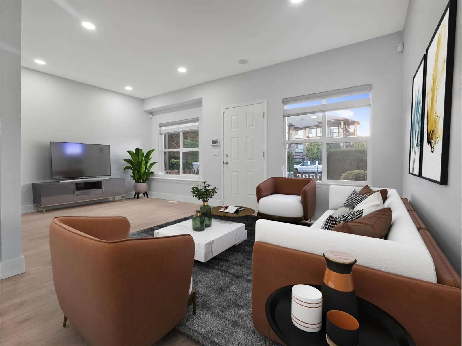 Welcome to this Spacious, Renovated 3 Story Townhouse in the heart of Fleetwood, Steps away from upcoming Fleetwood SkyTrain Station. Offering great convenience and potential for future value appreciation. The main level features bright living, dining and separate family room. Also on main is a kitchen with all stainless steel appliances and a powder room. Upstairs offers a large primary bedroom with ensuite, two additional bedrooms and a full bath. The ground floor includes a versatile flex space, access to a double side by side garage, and ample street parking right in front. Located in a quiet, family friendly complex with groceries, gyms, parks, schools, and transit all within walking distance. This home offers both comfort and long-term investment potential. Open Nov 16, 2 pm - 4 pm. (id:27476)