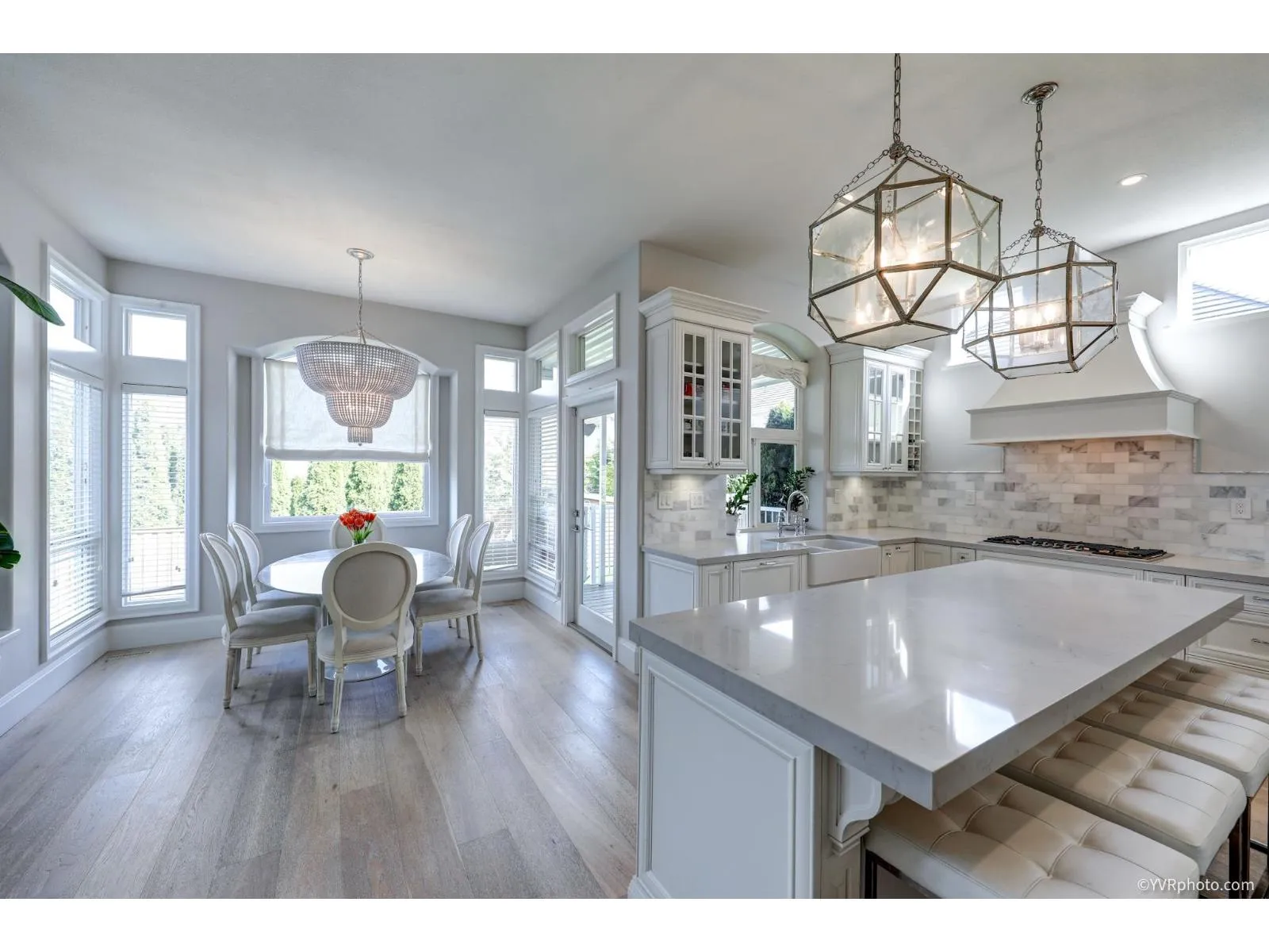Gorgeous and tastefully renovated family home on a 6,100 sqft lot in prestigious Fraser Heights. Originally a Foxridge Show Home, this property features quality upgrades including a heat pump, central A/C, security cameras, new flooring, designer lighting, new hot water tank, and in-floor heating in bathrooms. The garage includes a Level 2 EV charger. A grand foyer leads to an elegant living room with soaring 12' ceilings. The open-concept main floor showcases a well-equipped kitchen with Bosch & Sub-Zero appliances. Upstairs offers three spacious bedrooms, including a large private master suite. The lower level includes a bedroom and rec room with potential for a mortgage helper. Fully fenced backyard ideal for outdoor living. Close to schools, transit, highways, and shops! (id:27476)