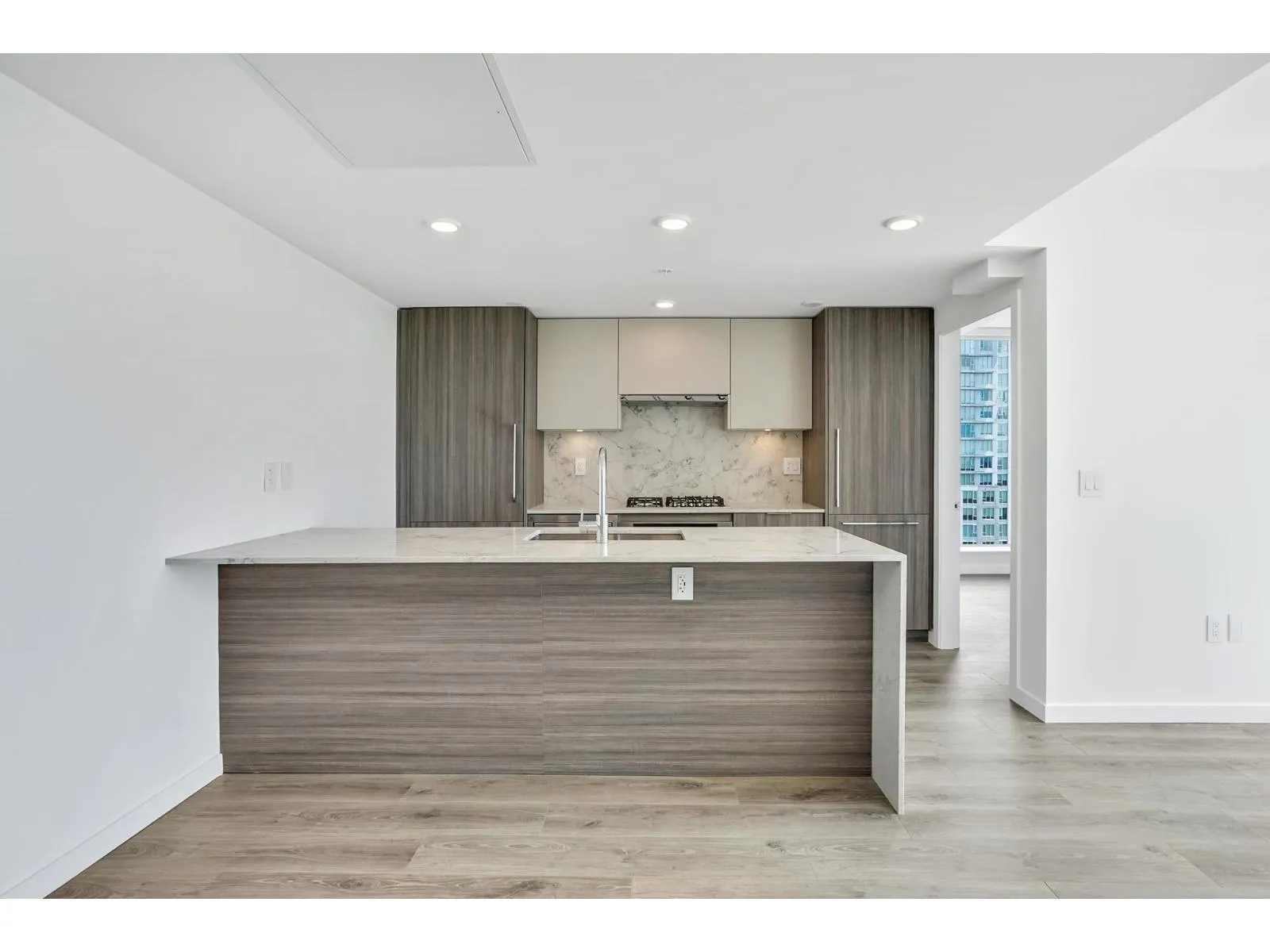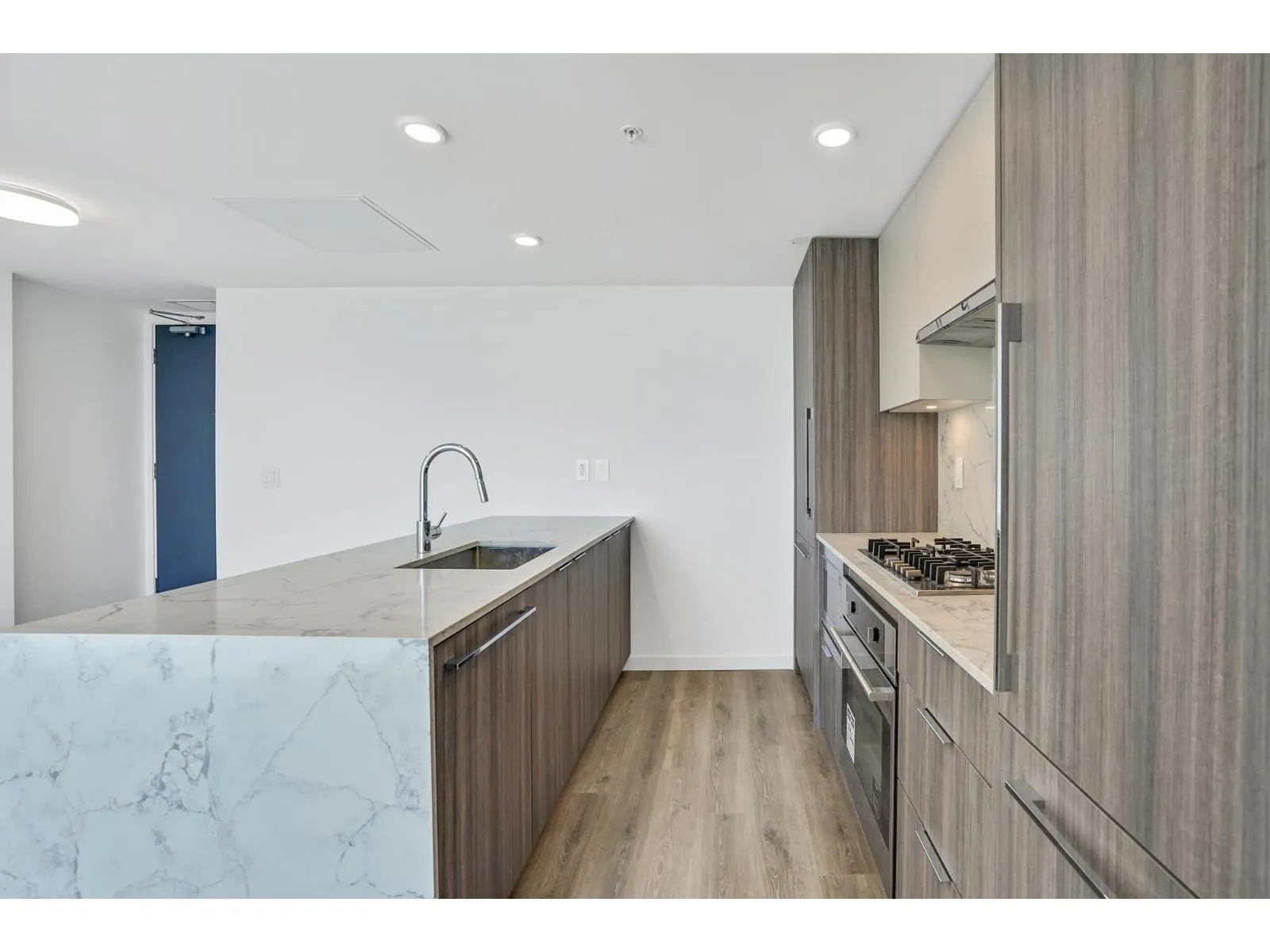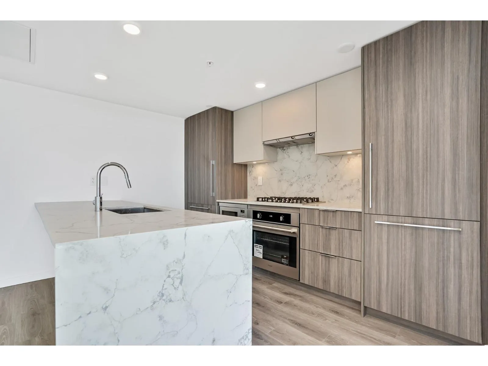 Penthouse perfection at MELROSE-luxury living in the heart of Surrey City Centre. This stunning 26-storey concrete tower offers 221 luxury residences with modern design and high-quality construction. This 2-bed, 2-bath home spans approx. 823 sqft, featuring floor-to-ceiling windows, 9-foot ceilings, and centralized A/C. The open kitchen boasts sleek two-tone cabinetry, quartz counters, and premium Italian Fulgor-Milano appliances with a gas cooktop. Residents enjoy 13,000+ sqft of amenities: rooftop lounge, BBQ kitchen, games room, children's play area, co-working space, sauna, gym, yoga, spin, Tai Chi studio, business centre, and concierge. Includes 2 parking stalls and storage locker. Steps to SkyTrain, parks, universities, and retail. (id:27476)