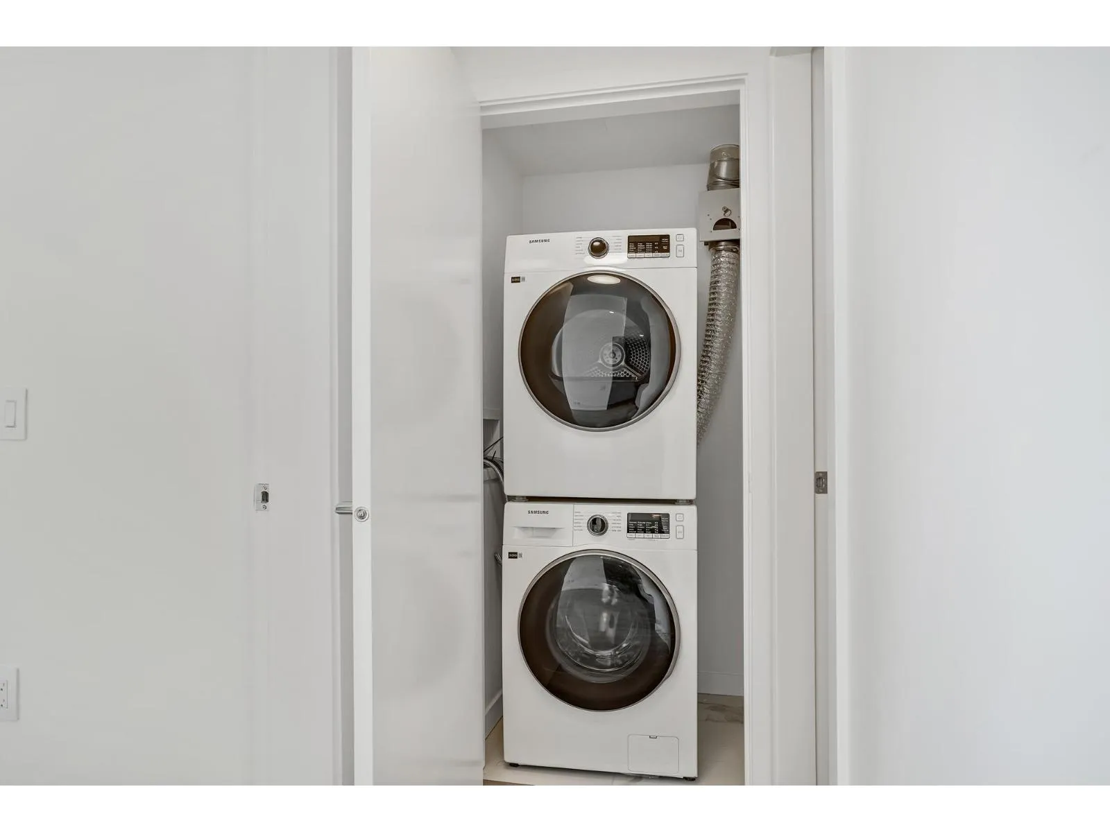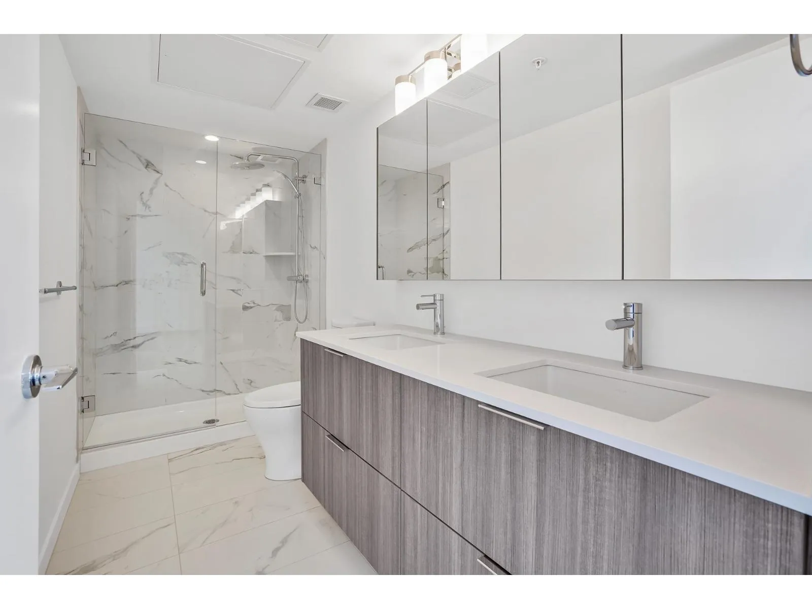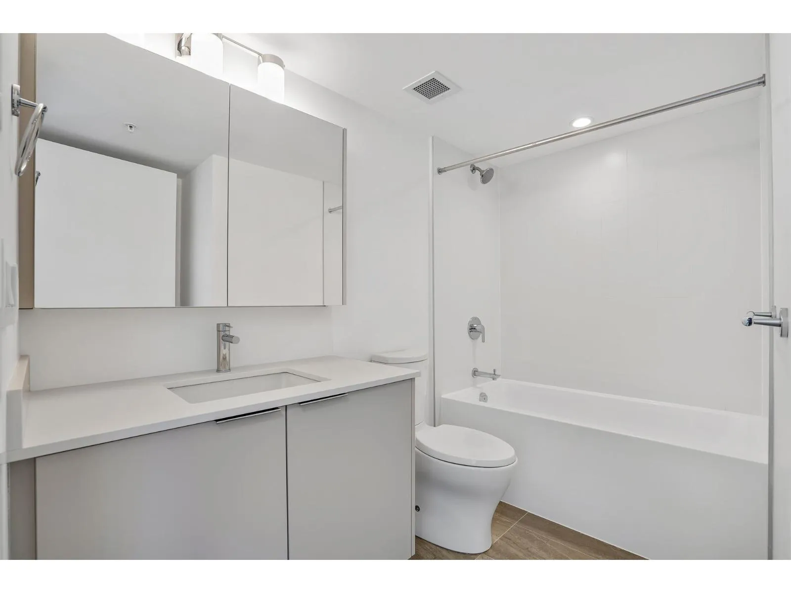 Penthouse perfection at MELROSE-luxury living in the heart of Surrey City Centre. This stunning 26-storey concrete tower offers 221 luxury residences with modern design and high-quality construction. This 2-bed, 2-bath home spans approx. 823 sqft, featuring floor-to-ceiling windows, 9-foot ceilings, and centralized A/C. The open kitchen boasts sleek two-tone cabinetry, quartz counters, and premium Italian Fulgor-Milano appliances with a gas cooktop. Residents enjoy 13,000+ sqft of amenities: rooftop lounge, BBQ kitchen, games room, children's play area, co-working space, sauna, gym, yoga, spin, Tai Chi studio, business centre, and concierge. Includes 2 parking stalls and storage locker. Steps to SkyTrain, parks, universities, and retail. (id:27476)