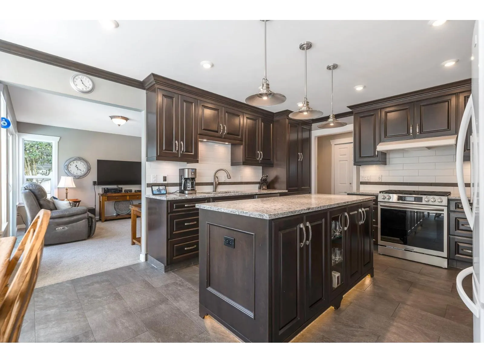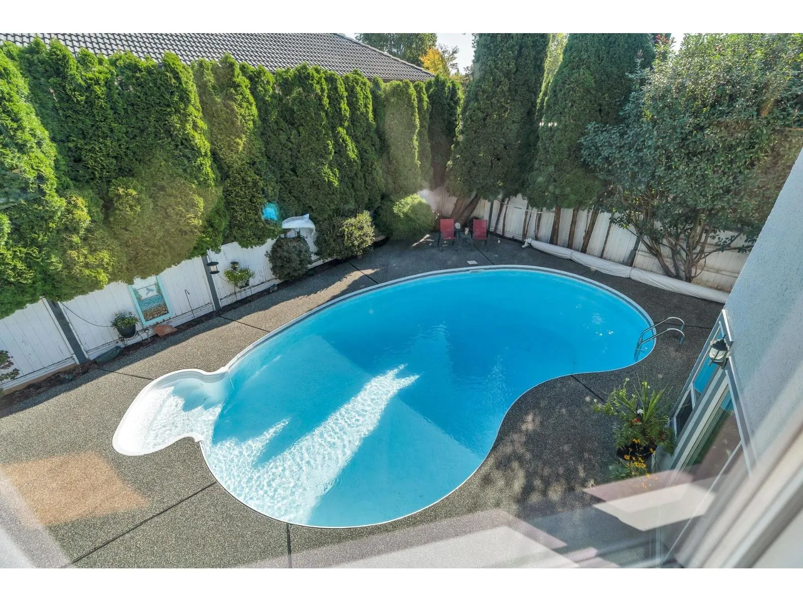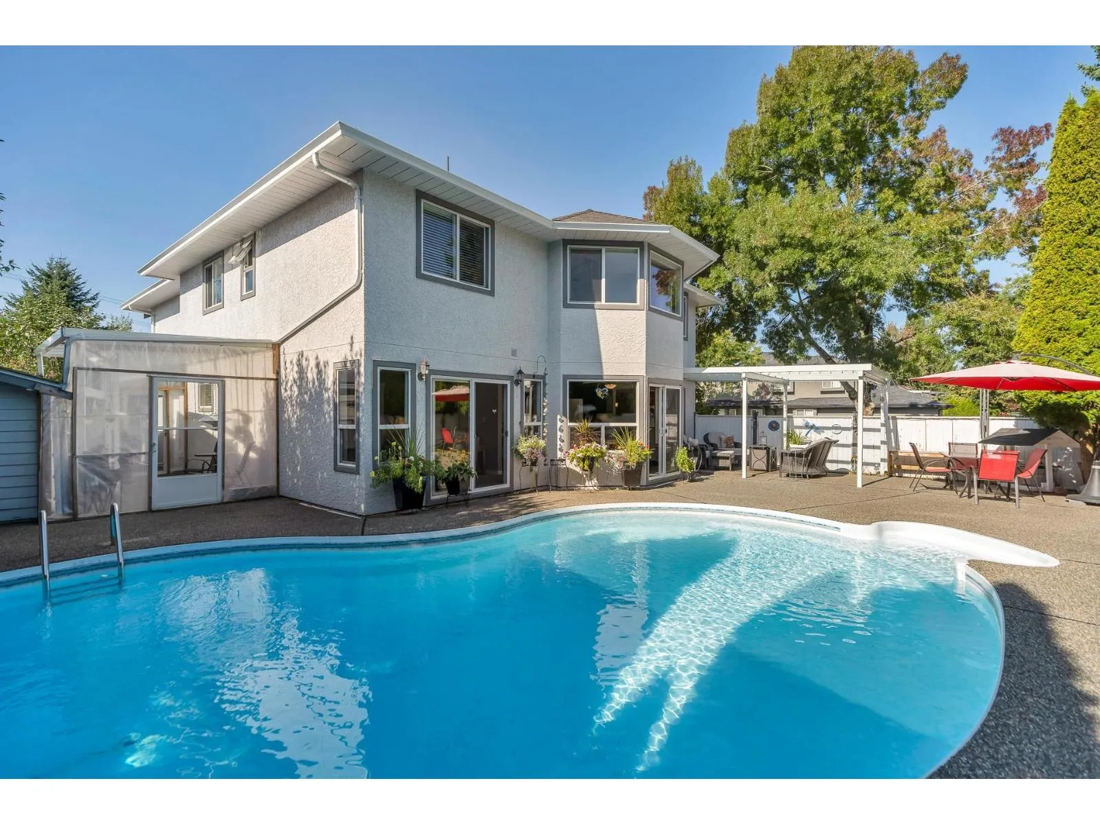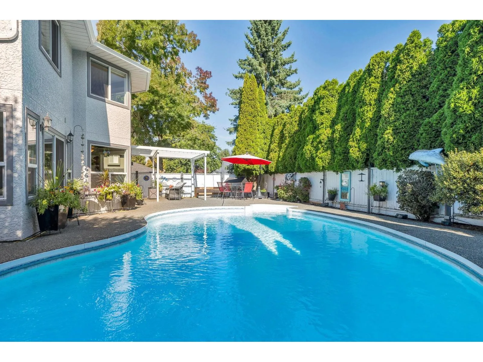 Beautifully updated 2,700 sq ft two-story home situated on a 7,100 sq ft corner lot in one of Cloverdale's most sought-after locations. Step into the bright and inviting living room featuring hardwood floors, soaring ceilings, and a cozy gas fireplace. Renovated kitchen with tile flooring showcasing custom cabinetry, quartz countertops, designer lighting & a premium gas range stove. Sliding glass door opens to your private backyard oasis, complete with a serene outdoor seating area, a large pool, and mature hedging for ultimate privacy. Upstairs, you'll find four generously sized bedrooms plus a large games room that can easily serve as a fifth bedroom, home office, or media room. Primary Bedroom with w/i closet & beautiful 4 pc ensuite. A beautiful family home in a fantastic neighborhood! (id:27476)