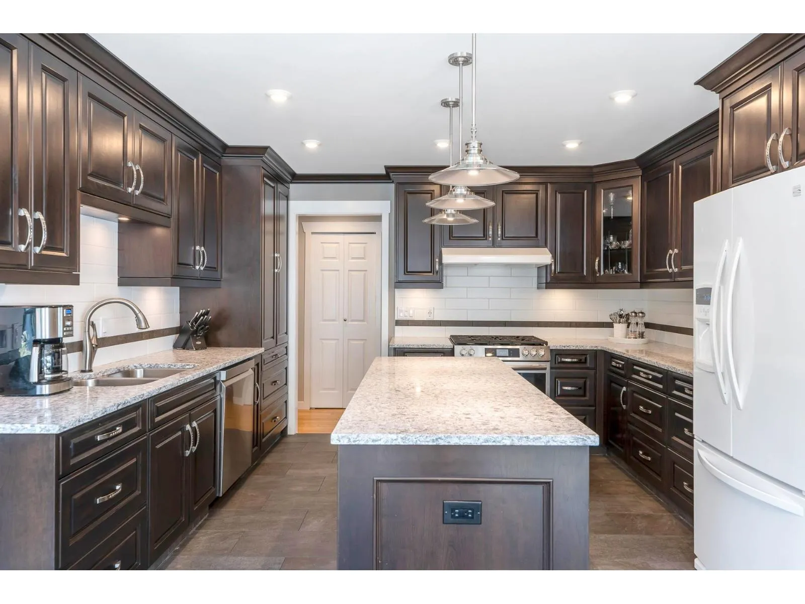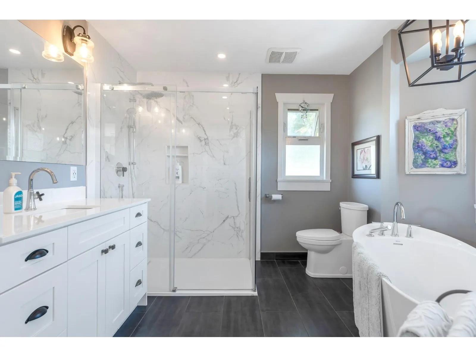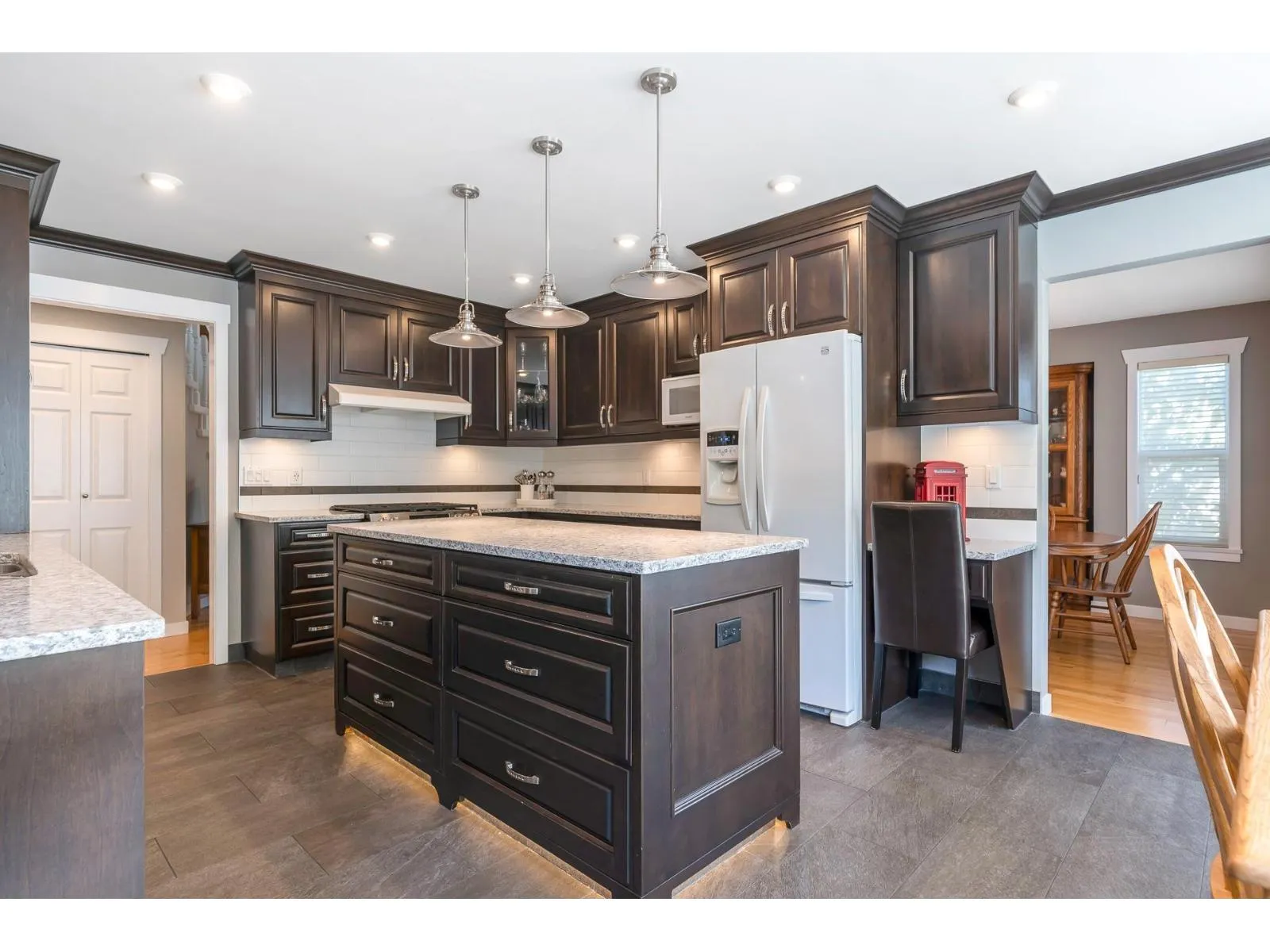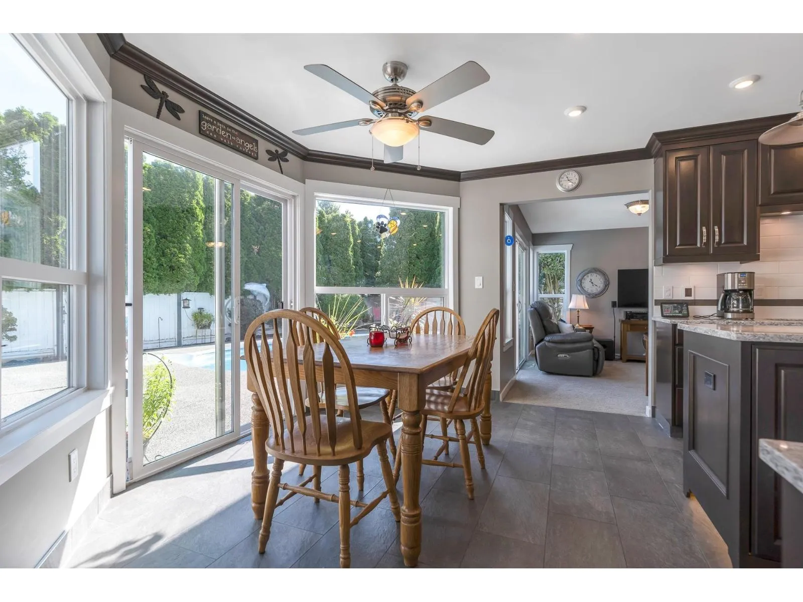 Beautifully updated 2,700 sq ft two-story home situated on a 7,100 sq ft corner lot in one of Cloverdale's most sought-after locations. Step into the bright and inviting living room featuring hardwood floors, soaring ceilings, and a cozy gas fireplace. Renovated kitchen with tile flooring showcasing custom cabinetry, quartz countertops, designer lighting & a premium gas range stove. Sliding glass door opens to your private backyard oasis, complete with a serene outdoor seating area, a large pool, and mature hedging for ultimate privacy. Upstairs, you'll find four generously sized bedrooms plus a large games room that can easily serve as a fifth bedroom, home office, or media room. Primary Bedroom with w/i closet & beautiful 4 pc ensuite. A beautiful family home in a fantastic neighborhood! (id:27476)